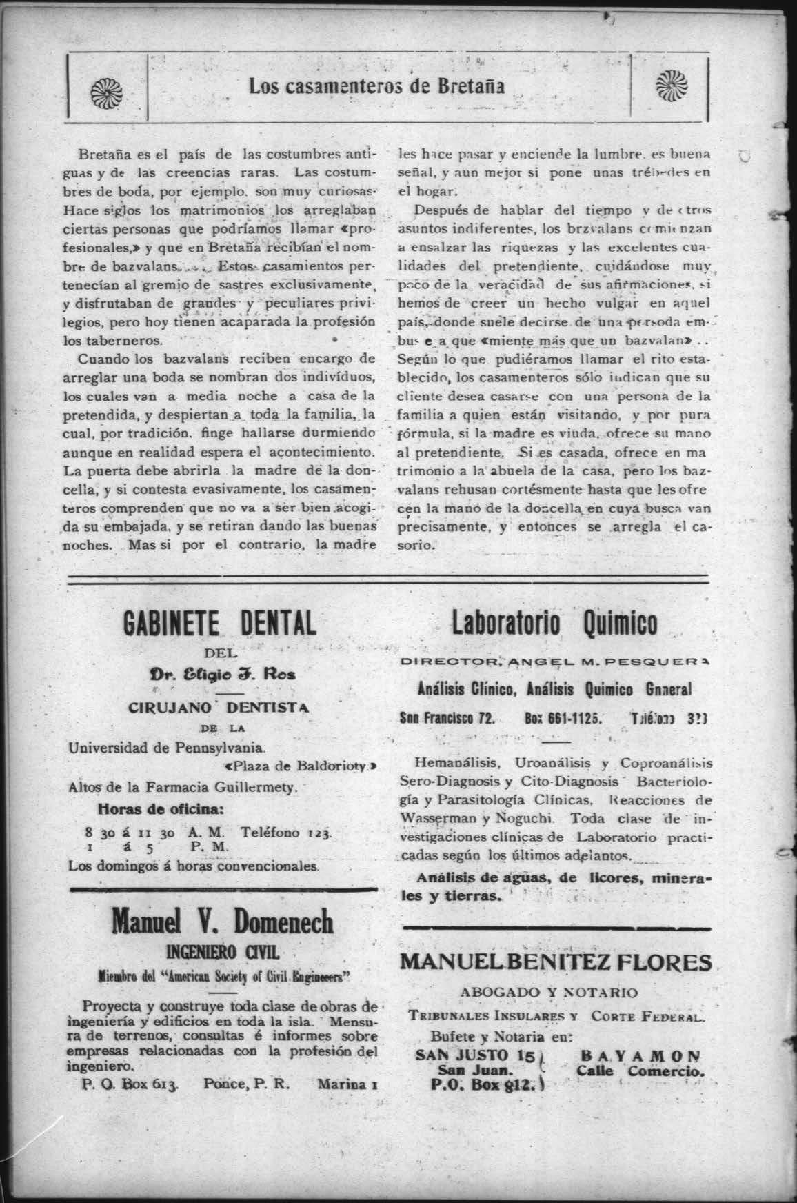 En nuestro número anterior y en una composición que publicáramos de nuestro asíduo y valiosísimo colaborador el doctor Coll y Toste, titulada <«La sabiduría del varon,» en el penúltimo verso de.la -última estrofa se fué un error de caja que indudablemente el buen sentido de los lectores habrá salvado.