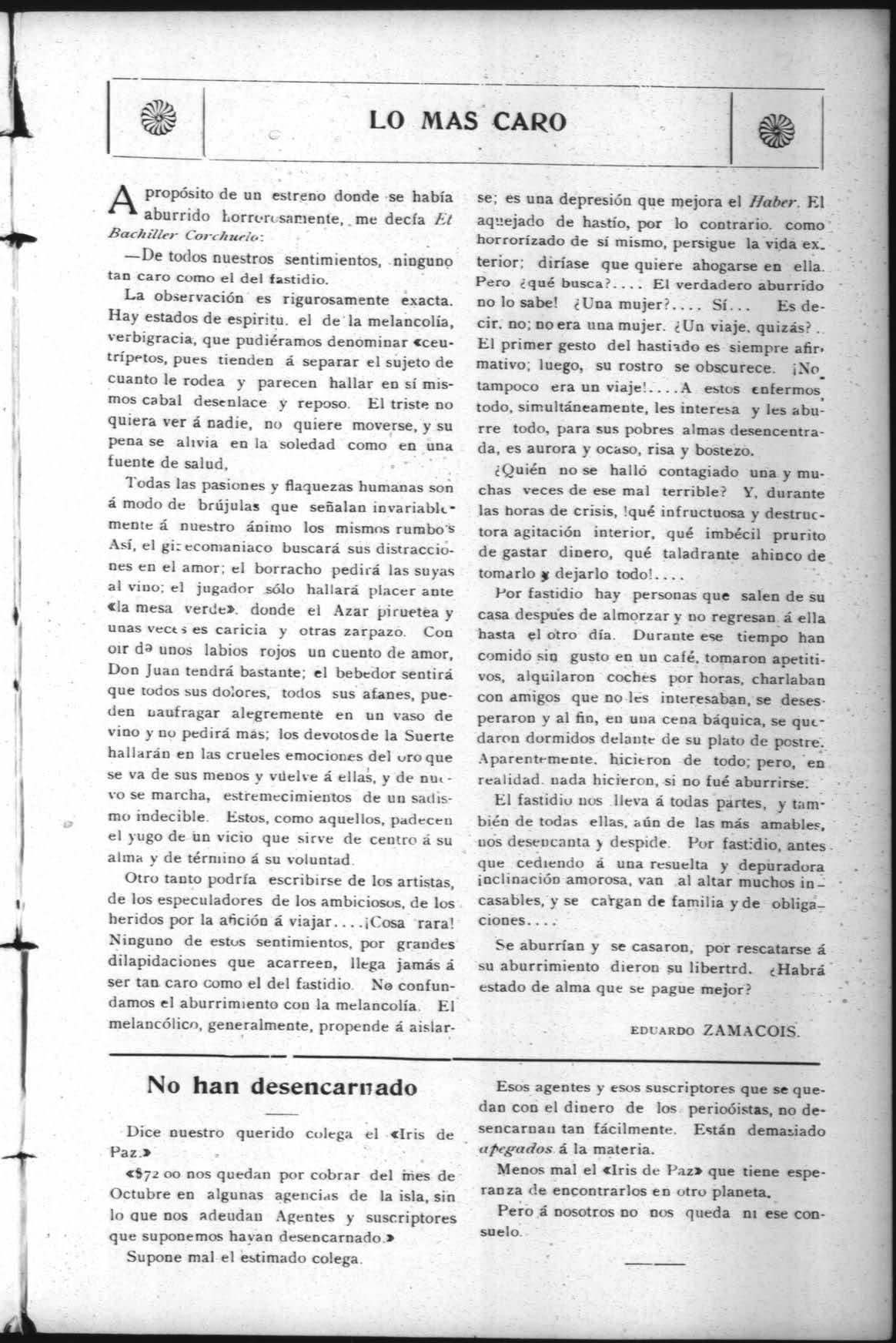 <$72 00 nos quedan por cobrar del mes de Octubre en algunas agencias de la isla, sin lo que nos adeudan Agentes y suscriptores que suponemos havan desencarnado.» Supone mal-el estimado colega.