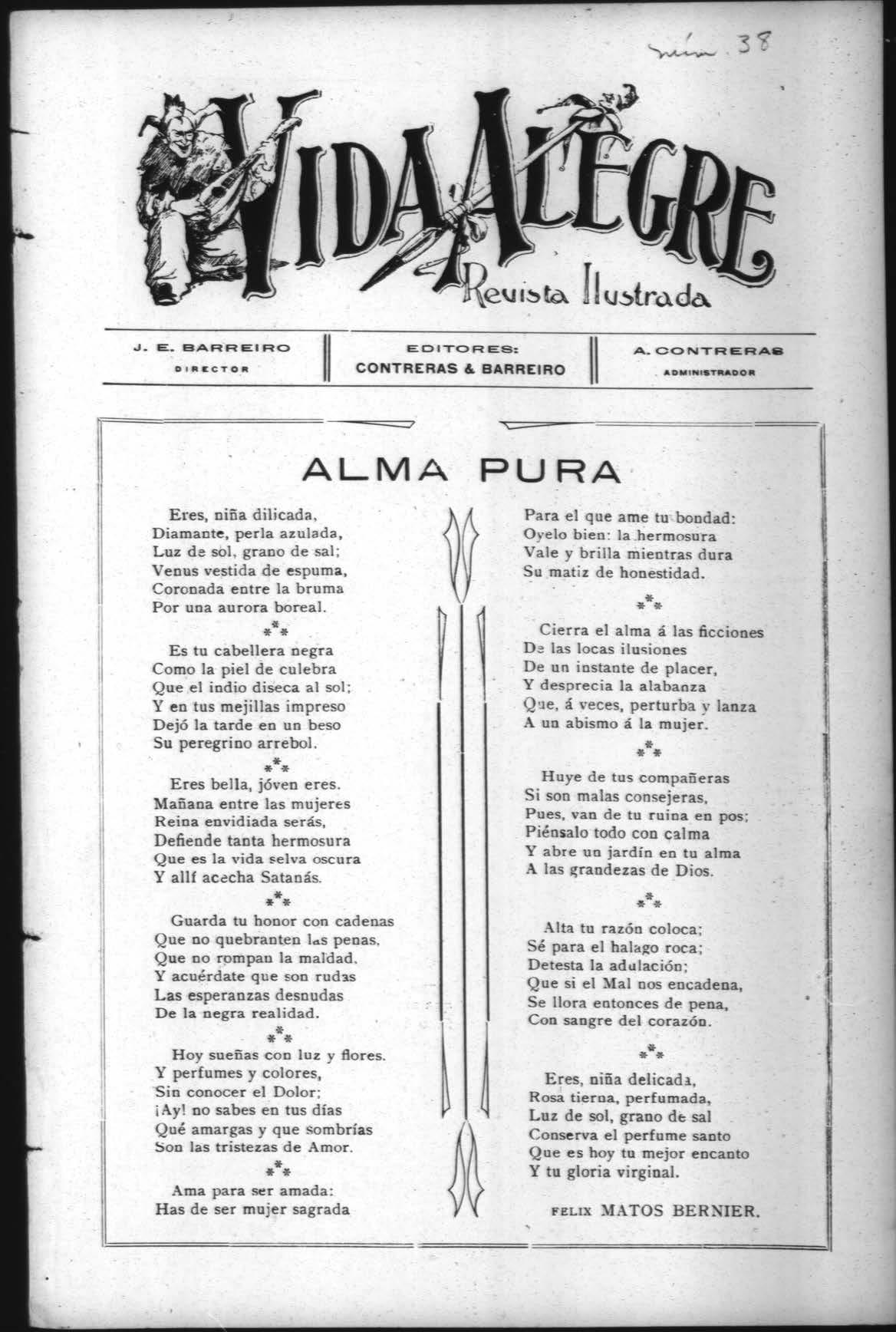 Para la simpática Srta. María Quintana. Tu mirar seductor y picaresco Hirióme el corazón, Y cruzó meteoro el infinito Do muévese mi amor.