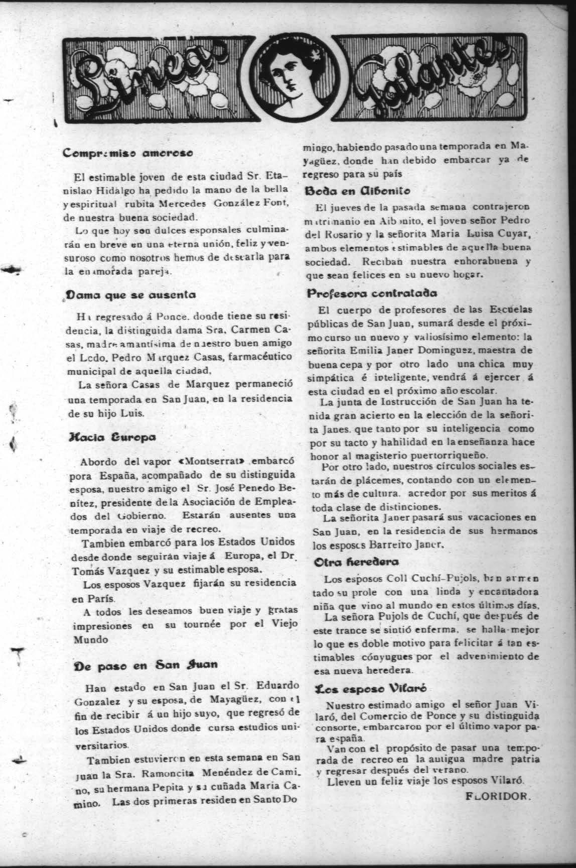 Apoyada en la borda de la mave, al estrechar su manc entre la mía me dijo adios enternecida ¡ suave: