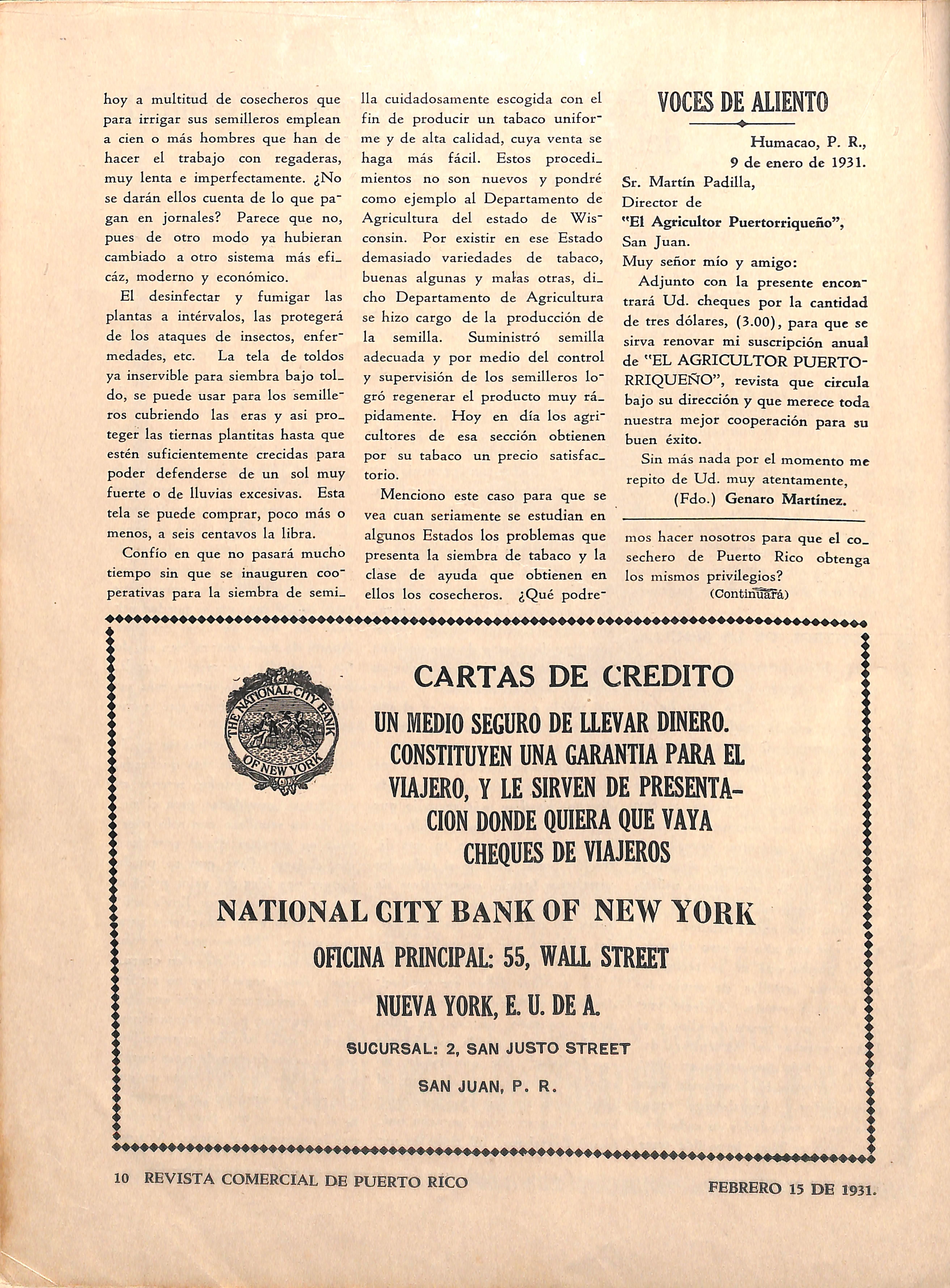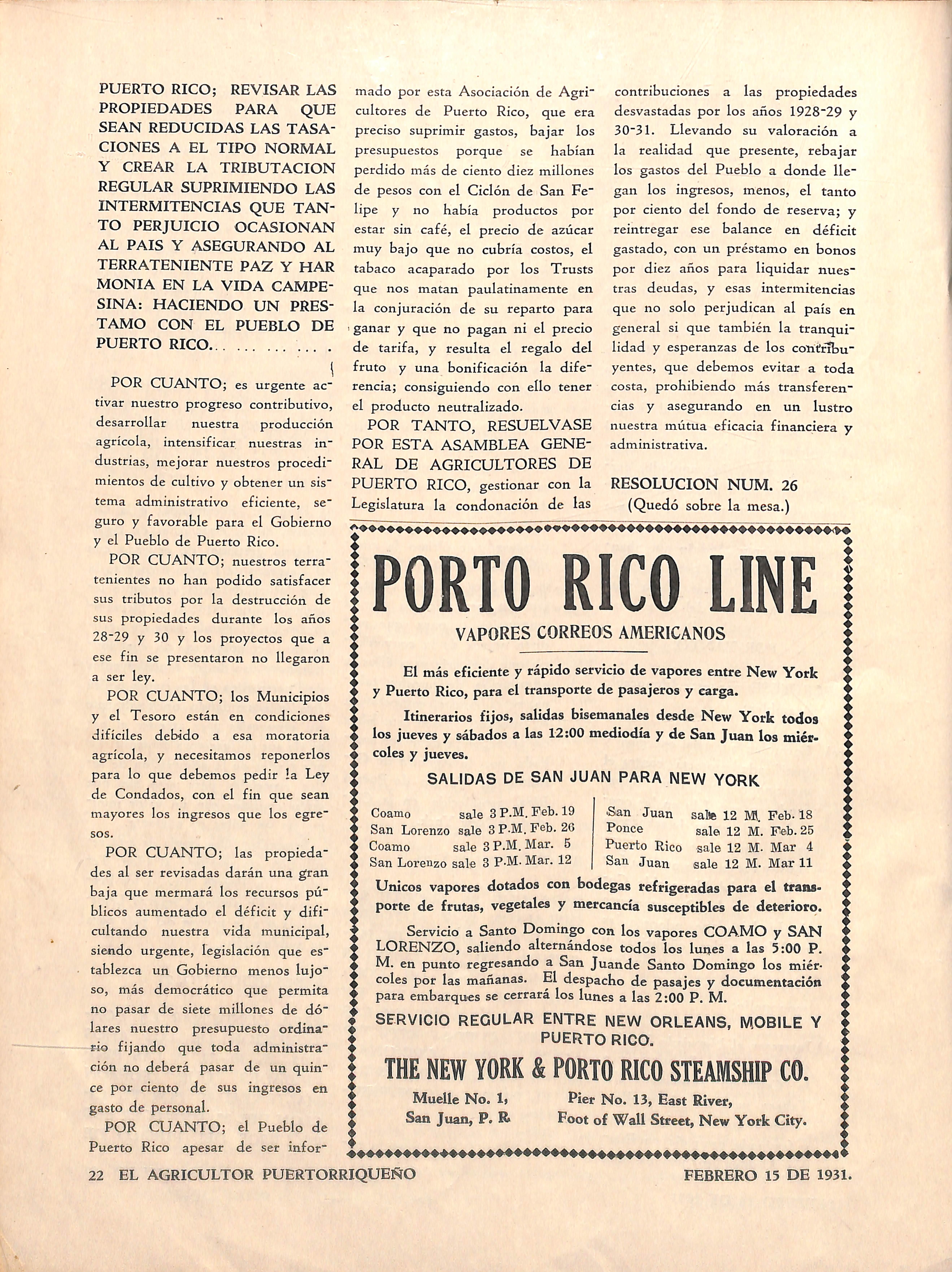 Organo de la Asociación de Agricultores de Puerto Rico. San Juan, P. R. P. O. Box 788. Edificio Ochoa, 4to. piso. Apartamento No. 424.
