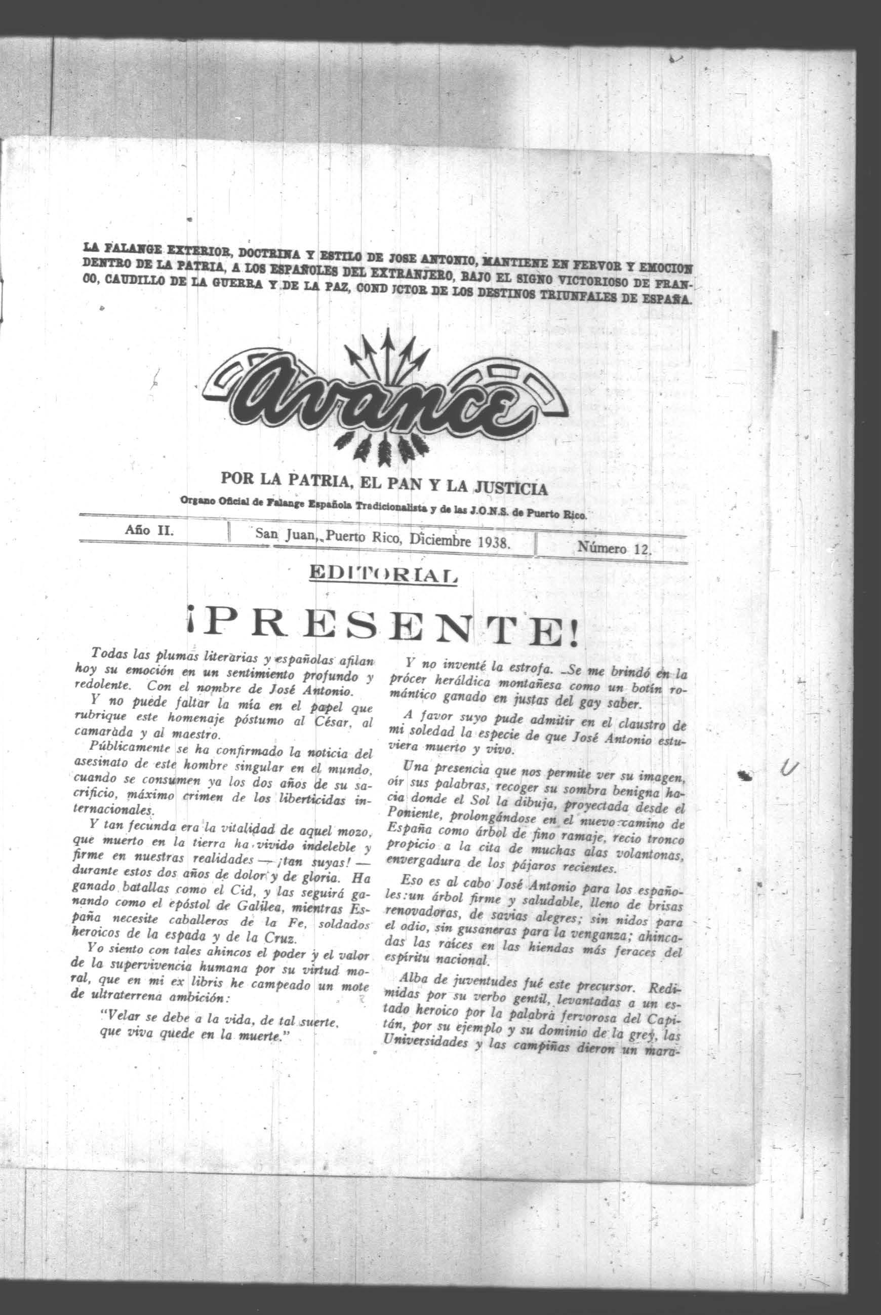 Españoles: Murió José Antonio,dicen los pregones. Vive José An-tonio, afirma la Falange. ¿Quées la muerte y qué es la vida?Vida esg la inmortalidad; la semi-lla que no se pierde, que un díatras otro se renueva con más vigor y lozanía. Esta es la vidade hoy, de José Antonio.