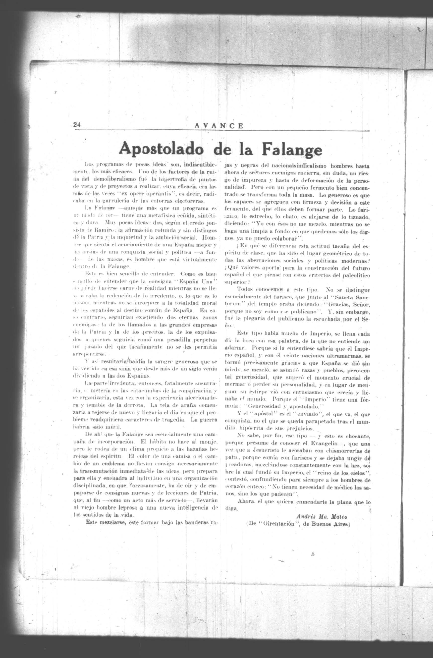 A postolado de la Falange, por Andrés Ma, Mateo, (De Prientación. de Buenos Aires).