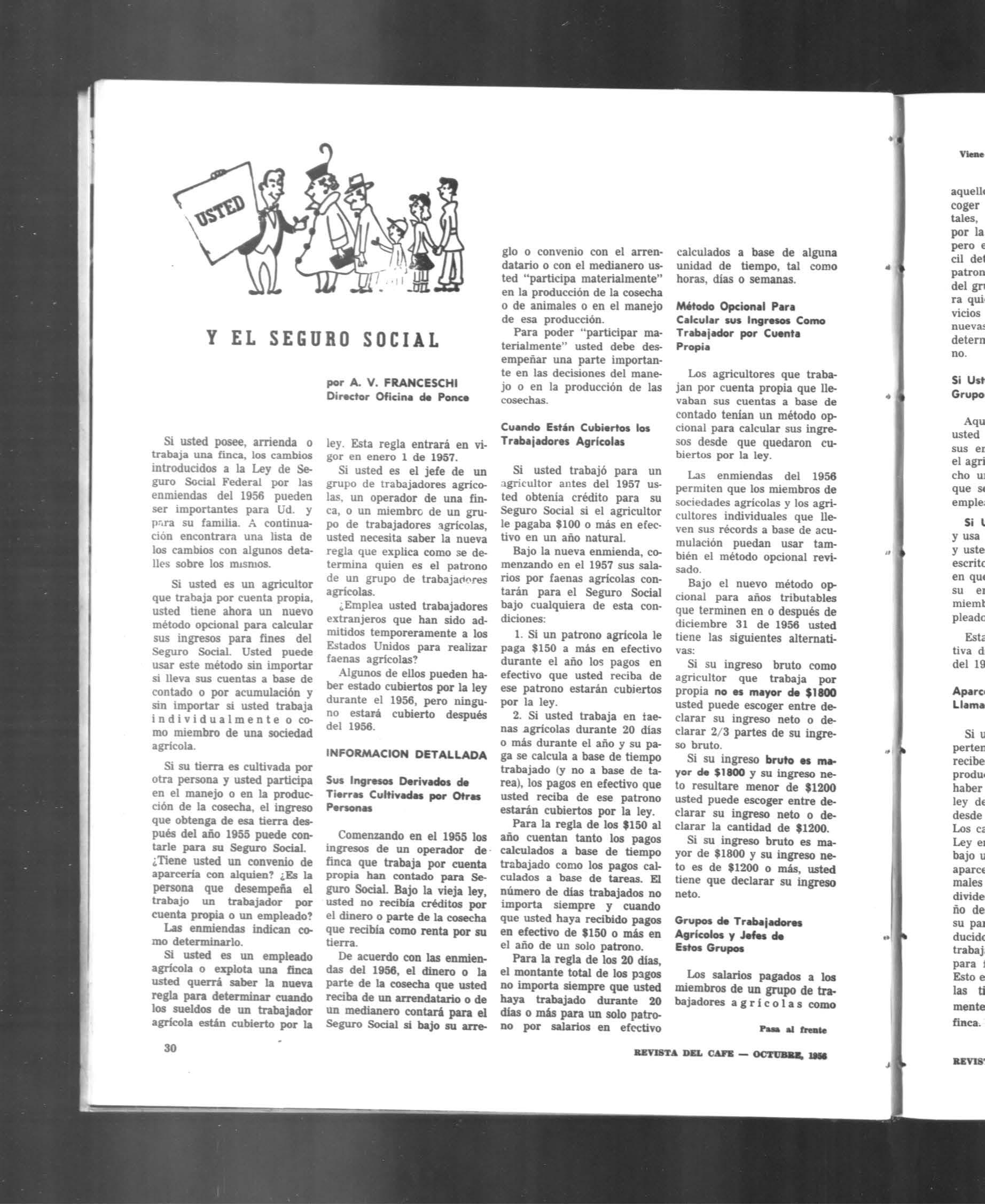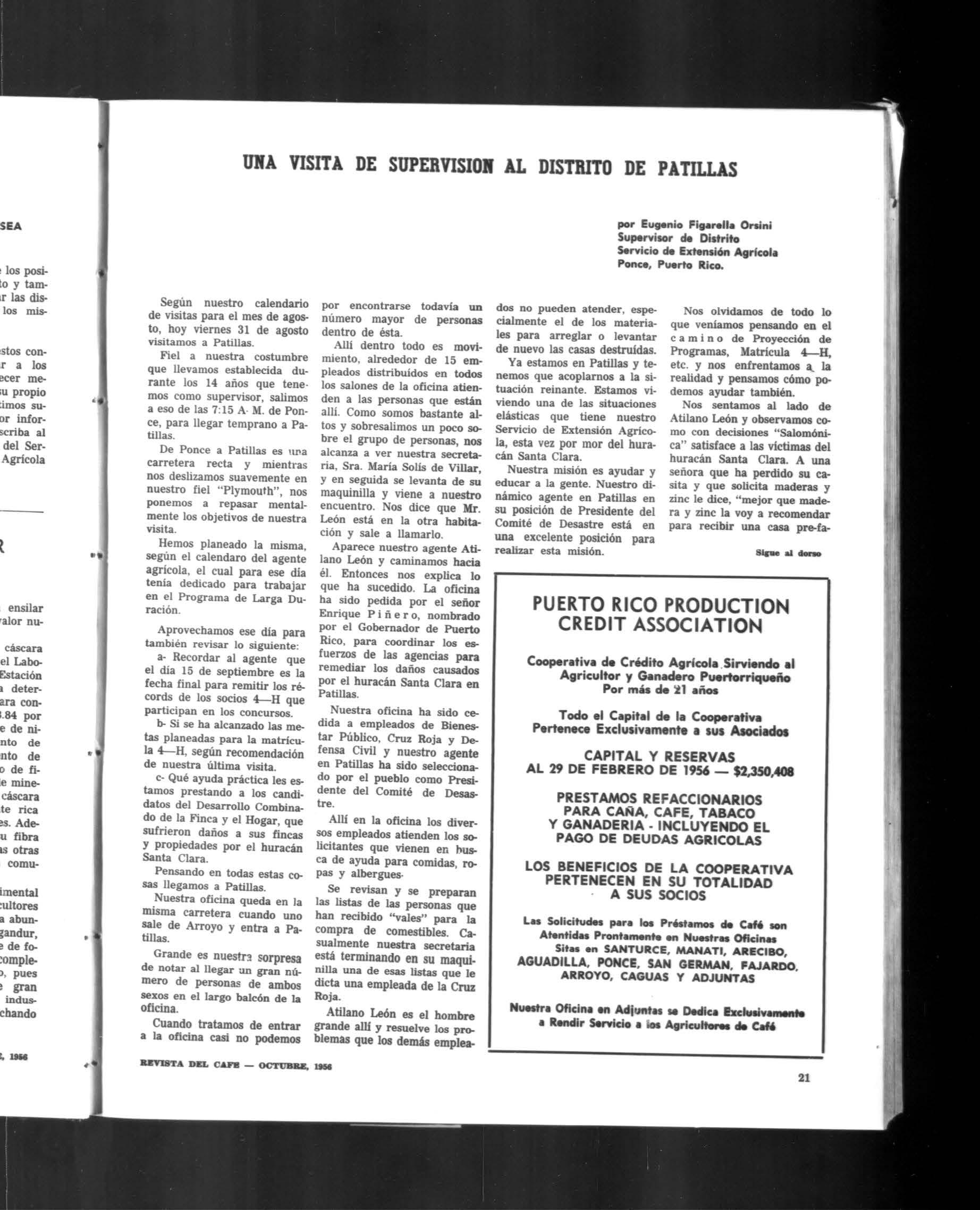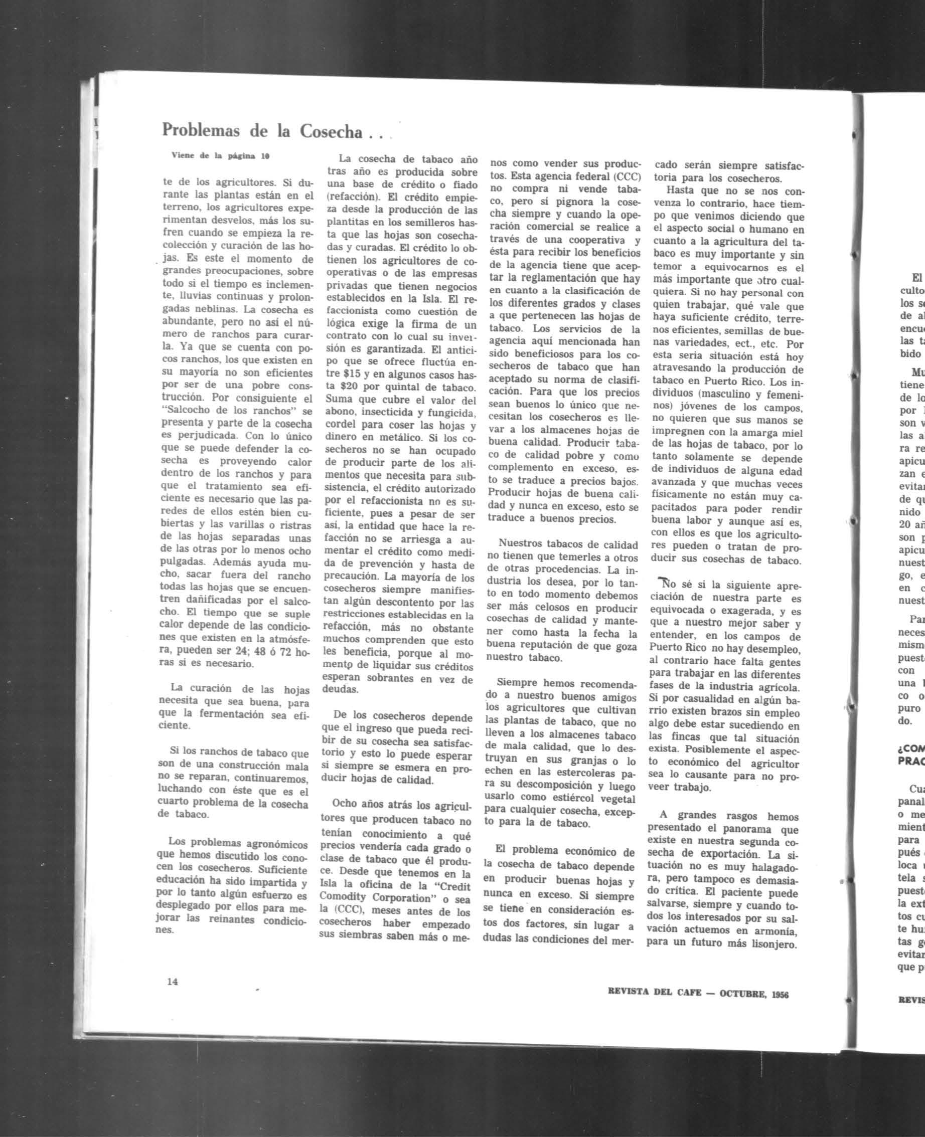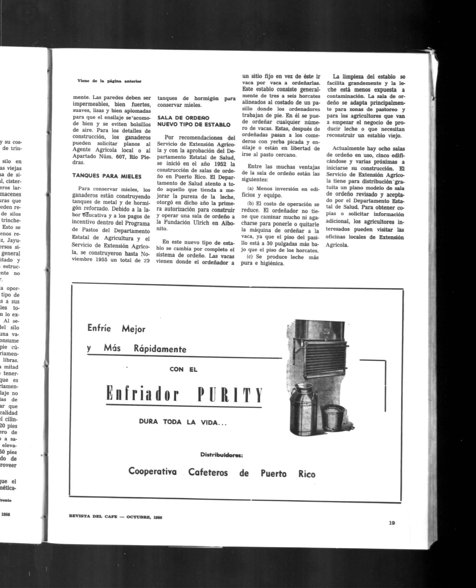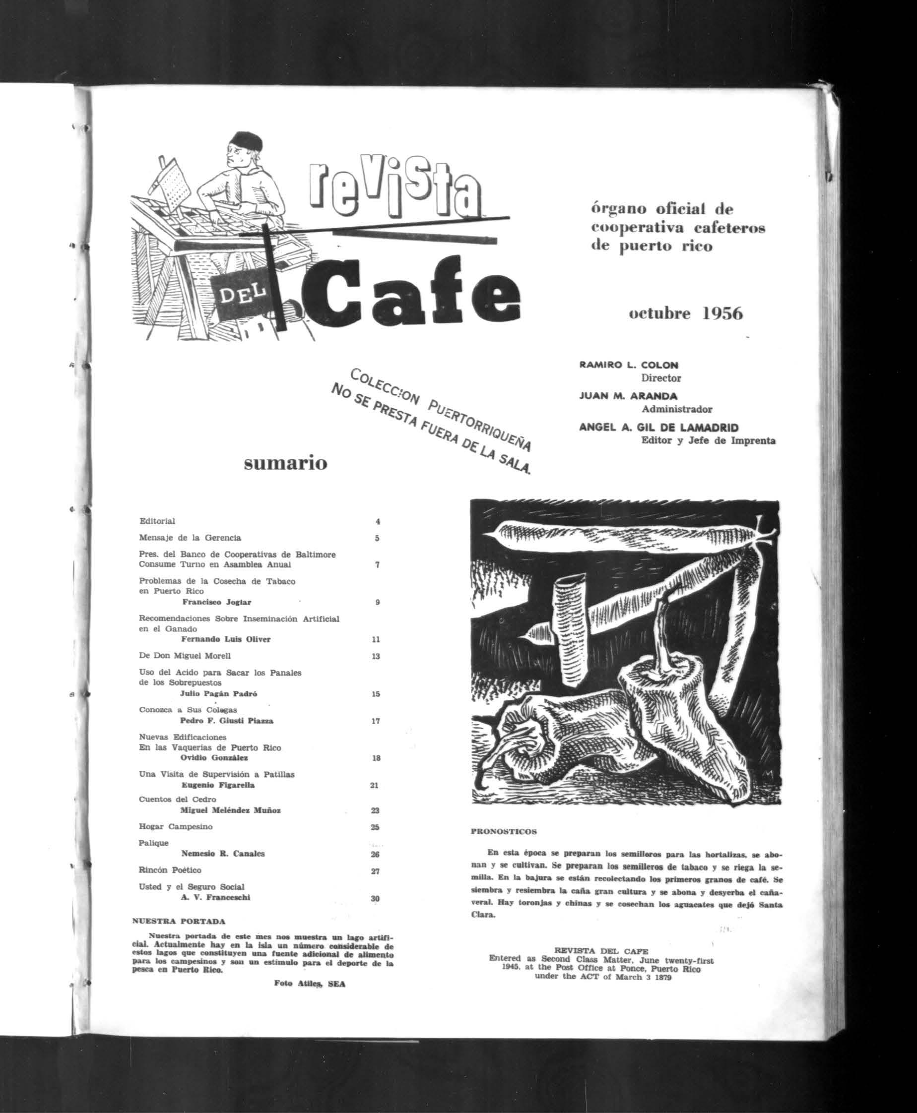 órgano oficial de ('ouperativa cafeteros de puerto rico octubre 1956