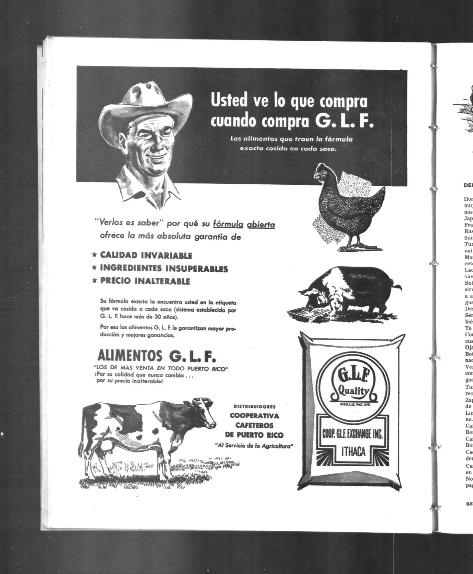 EZ sumario Editorial 4 Mensaje de la Gerencia 5 Condiciones en las cuales Crece el Café en Puerto Rico y en Hawaii Francisco Jordán Molero 7 Un Agricultor Progresista Mari> L. Conde Thillet 8 La Producción de la Goma UNICO Pasa de los dos Millones 9 Crianza de Cerdos Deficiencias Nutricionales A. Budet Dominguez 11 Conozca a Sus Colegas Pedro F. Giusti Piazza 13 E " Panorama Agricola 15 Como Cultivar la Calanaza Pedro Osuna 16 Se Celebra Primera Reunión Técnica en Vivienda y Planeamiento 17 Rincón Poético 18 Palique Nemesio K. Canales 19 Usted y el Seguro Social A. V. Franceschi 20 Sistemas de Agua para la Finca y el Hogar PRONOSTICOS Ovidio González 23 Ret -