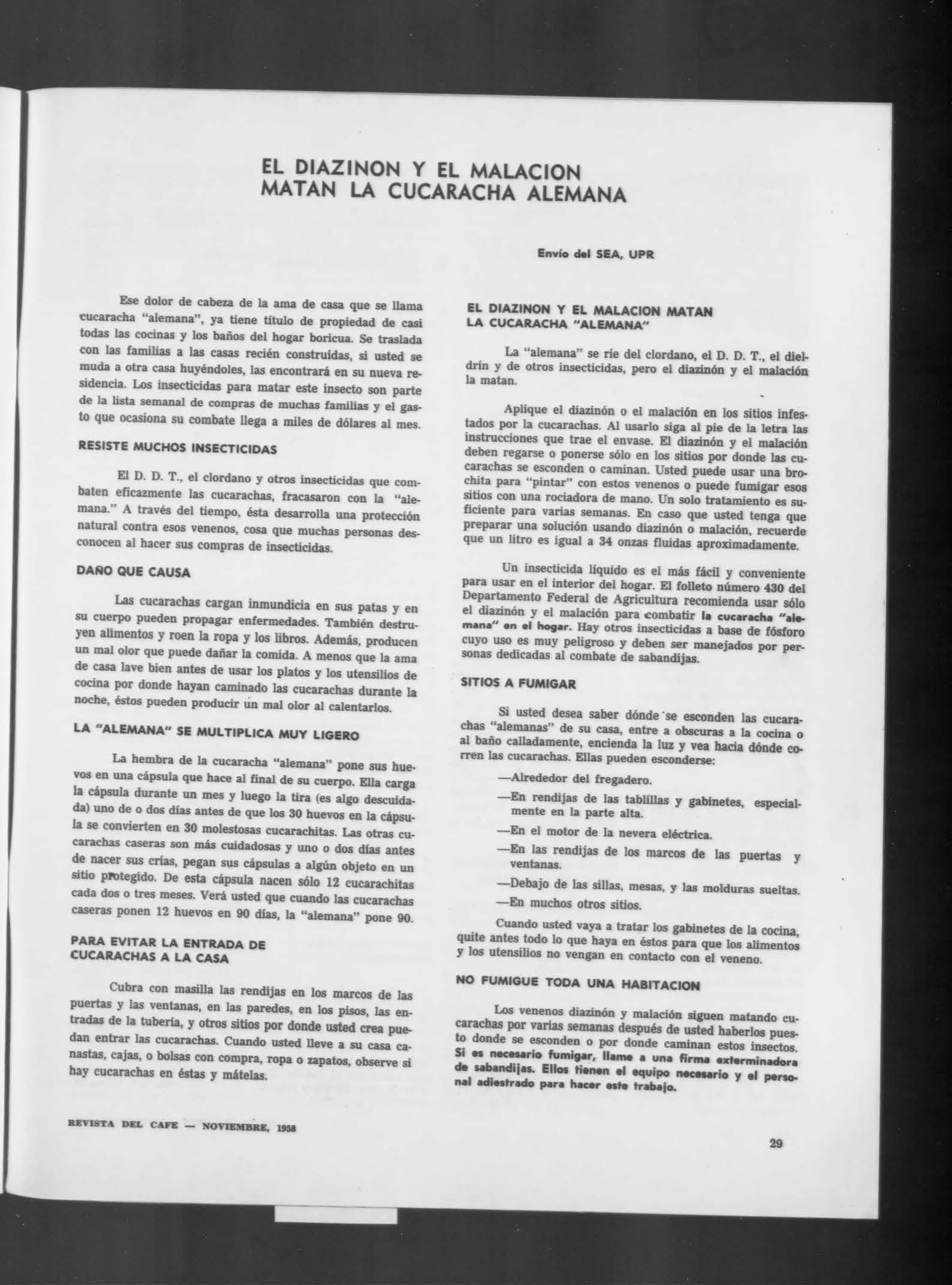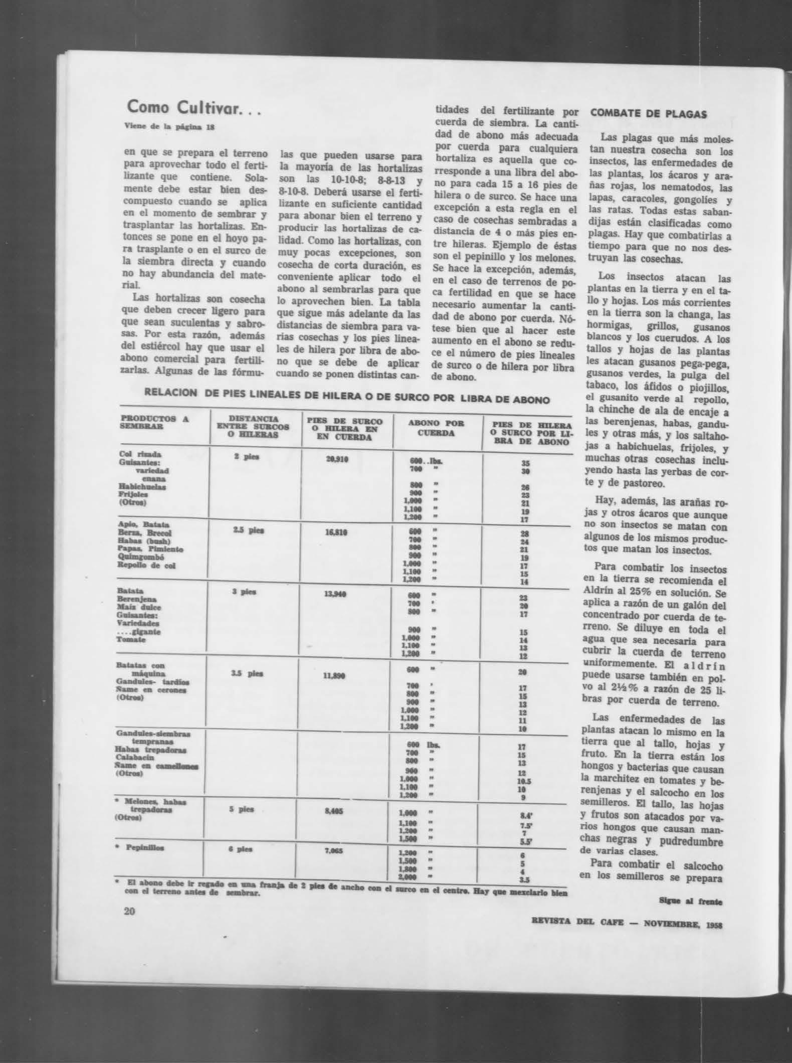 REVISTA DEL CAFE - NOVIEMBRE, 1958