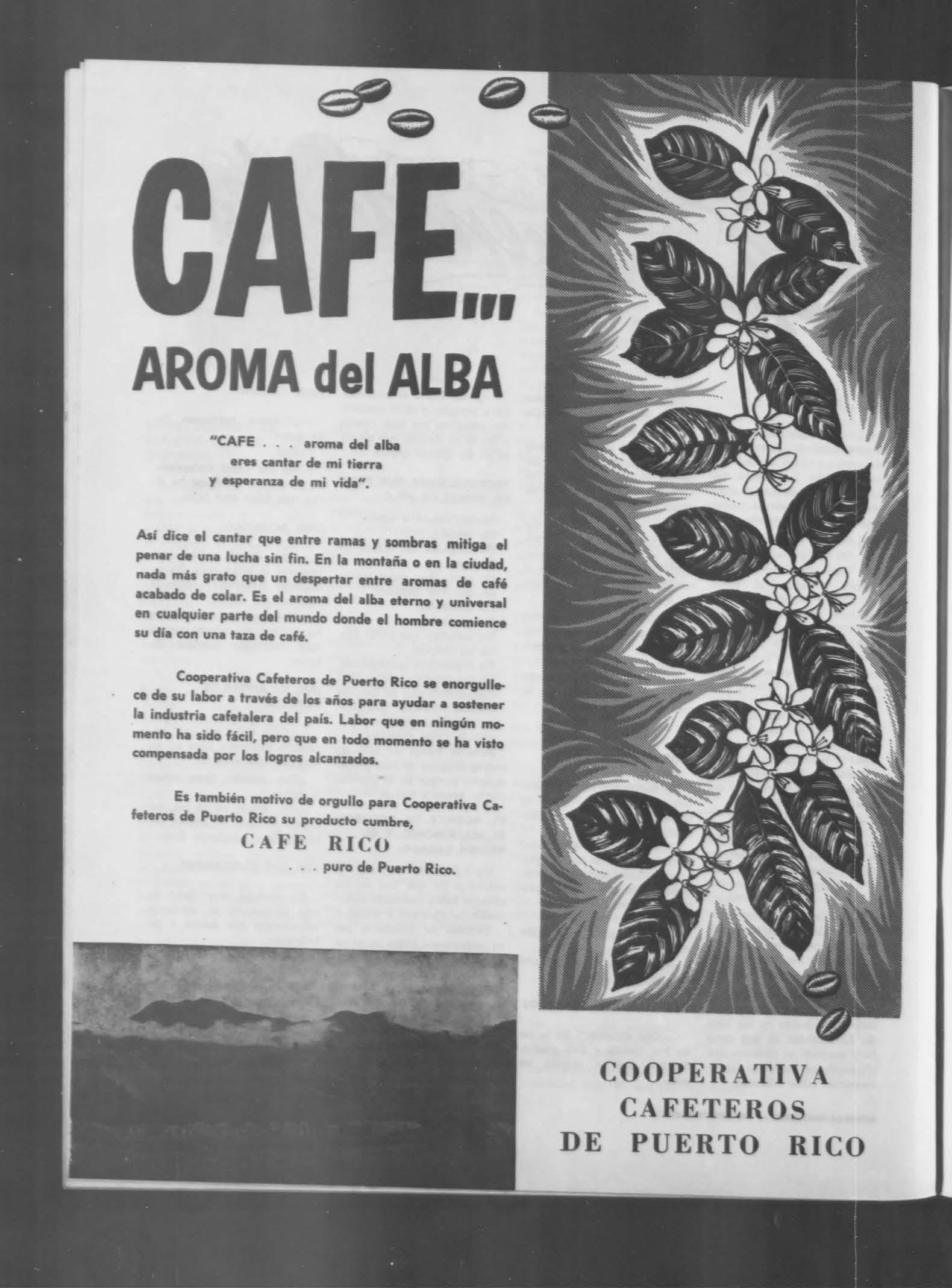 El mejor café del mundo es el de Puerto Rico. y el mejor café de Puerto Rico es CAFE RICO. Es cosechado, con esmero patriótico, por los mismos agricultores que lo tuestan, envasan y distribuyen, por medio de su Cooperativa: Cafeteros de Puerto Rico. CAFE RICO llega a su mesa fresco, aromático y sabroso como ninguno. Los agricultores de café de Puerto Rico se lo garantizan: CAFE RICO es café PURO de Puerto Rico.