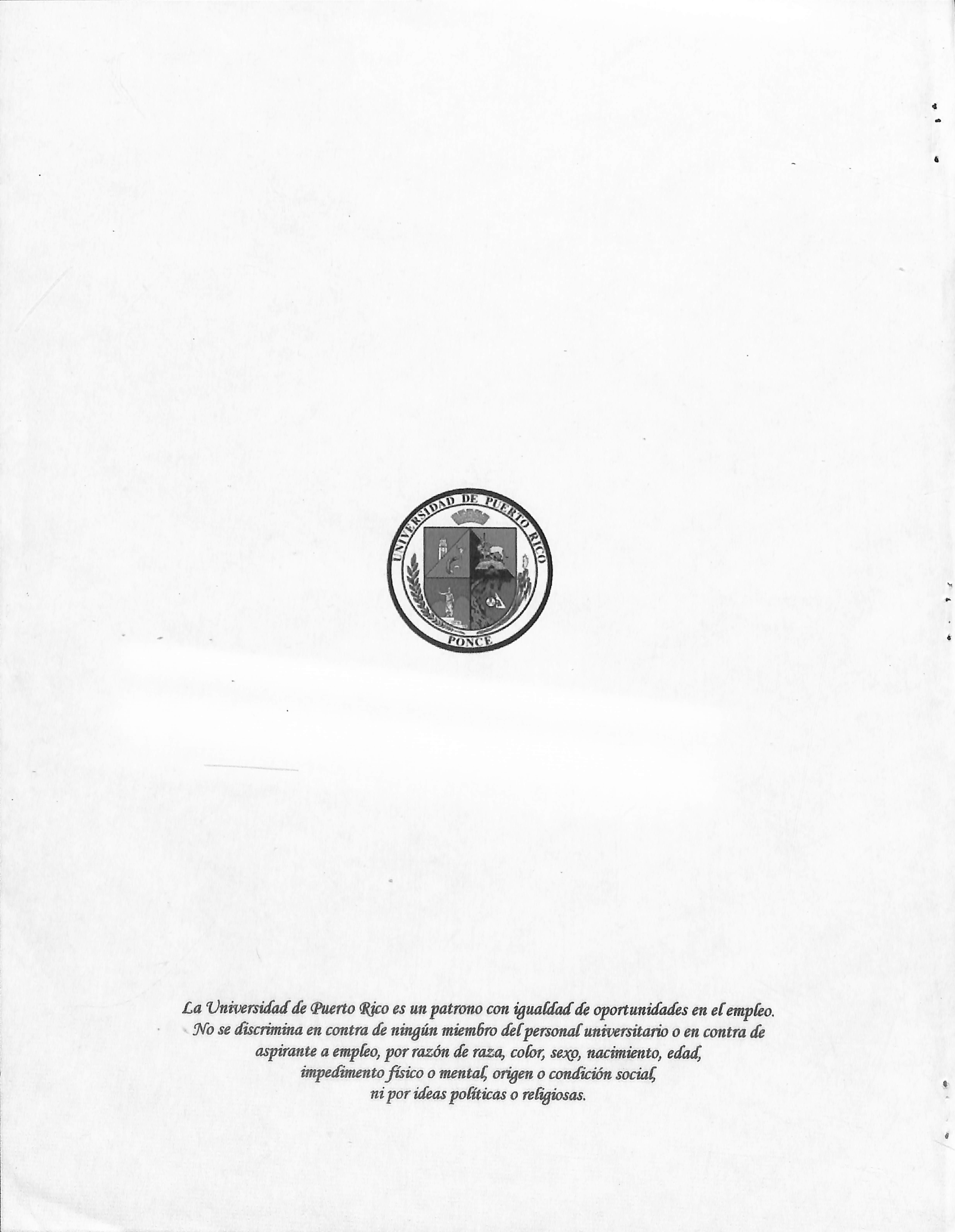 La Vniwrsúíadde(Puerto(Rjco es un patrono con igualdadde oportunidades en eCempleo. 9Í0se discrimina en contra de ningún miemSro deCpersomduniversitario o en contra de aspirante a empleo,porrazón de raza, color, sej(p, nacimiento, edad, impedimentofísico o mentaf origen o condición social niporideas políticas o religiosas.