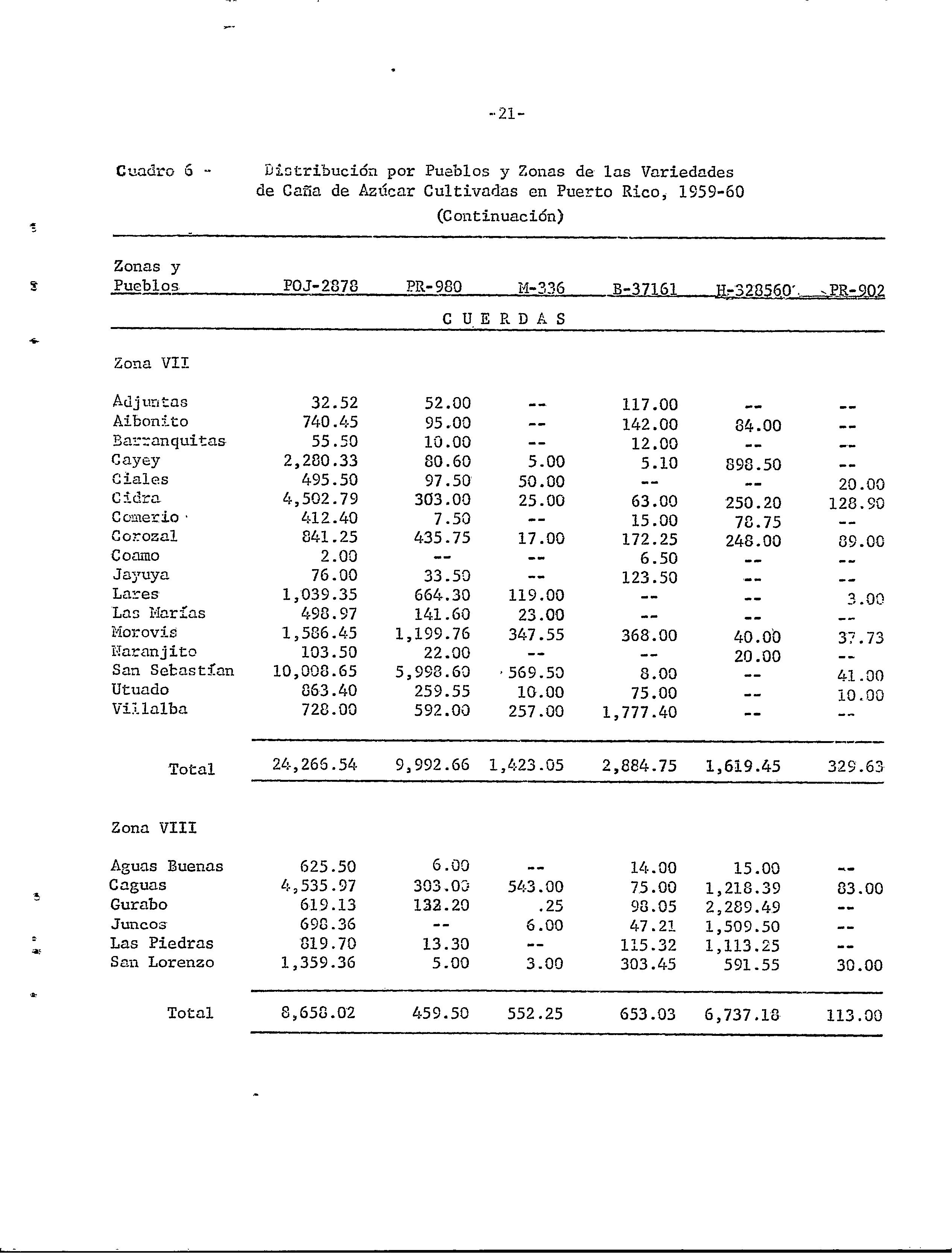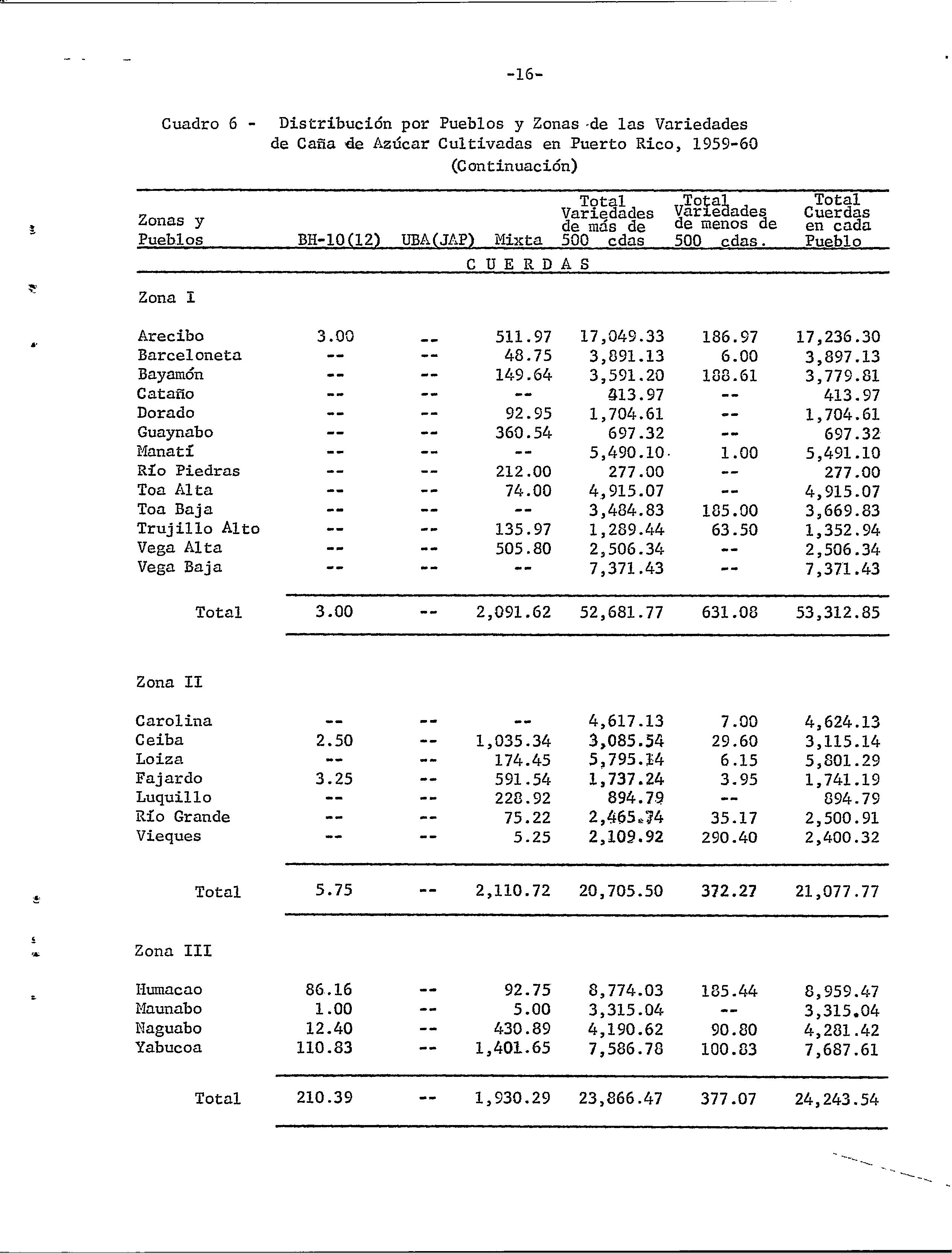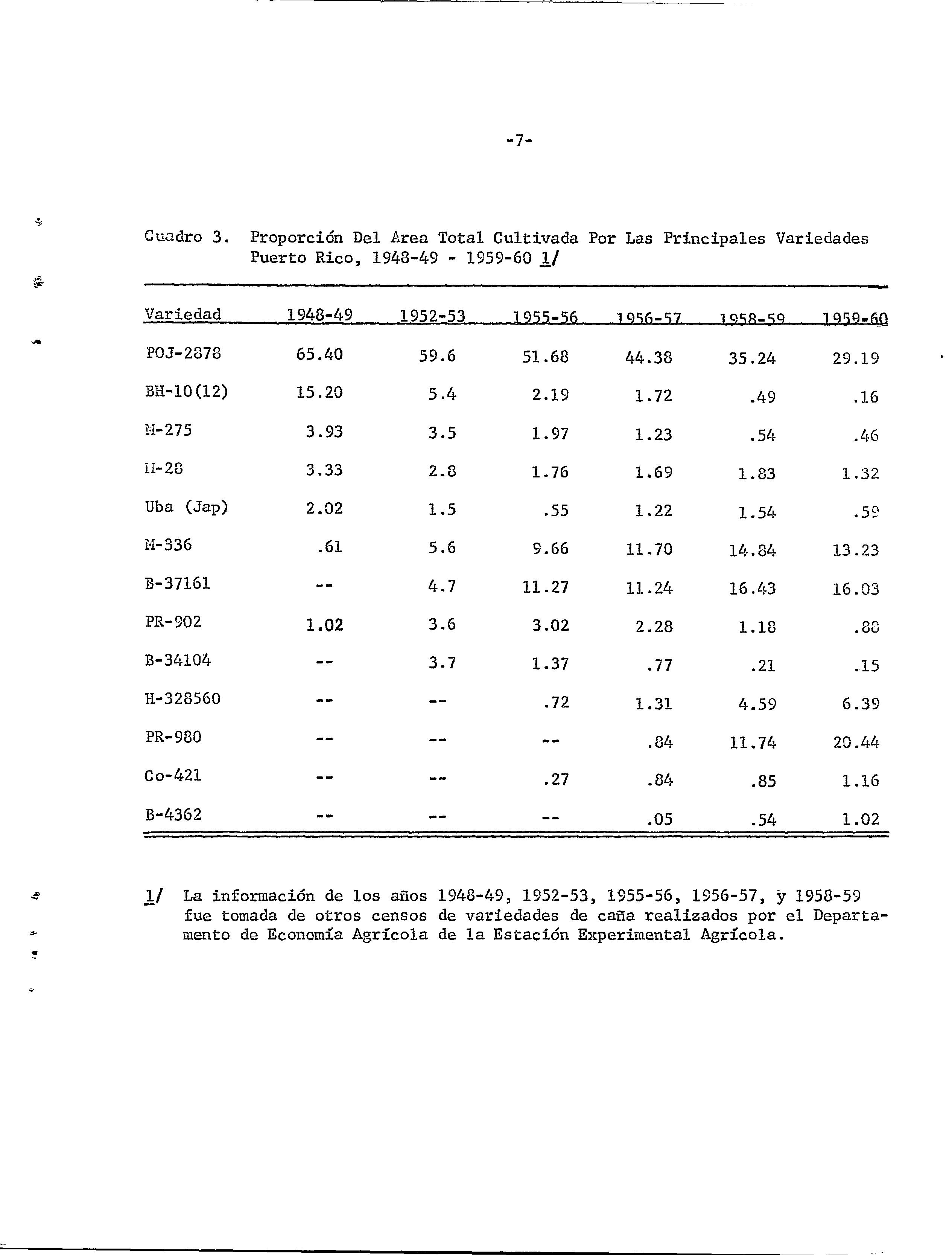 Censo de variedades de caña de azúcar cultivadas en Puerto Rico, 1959-60