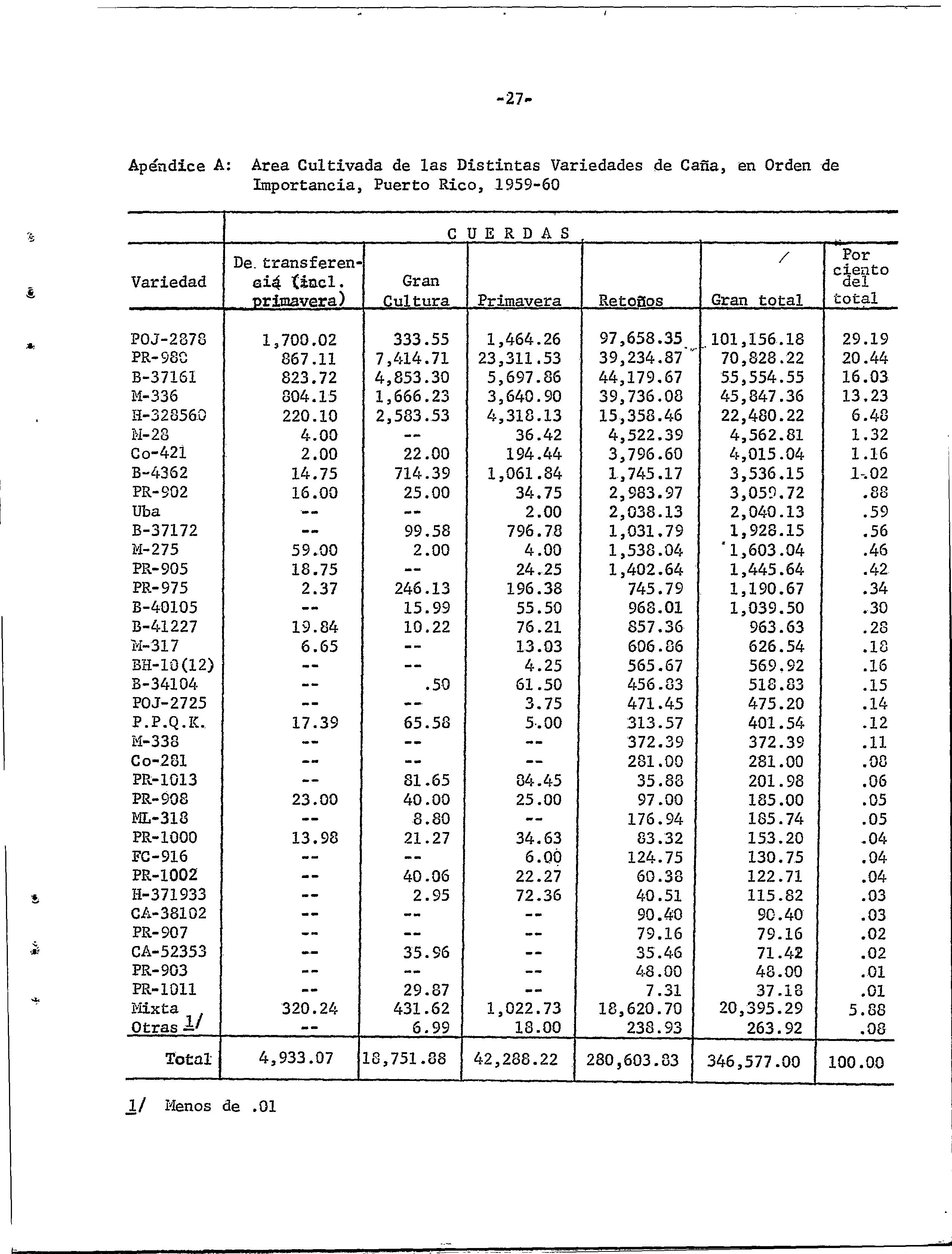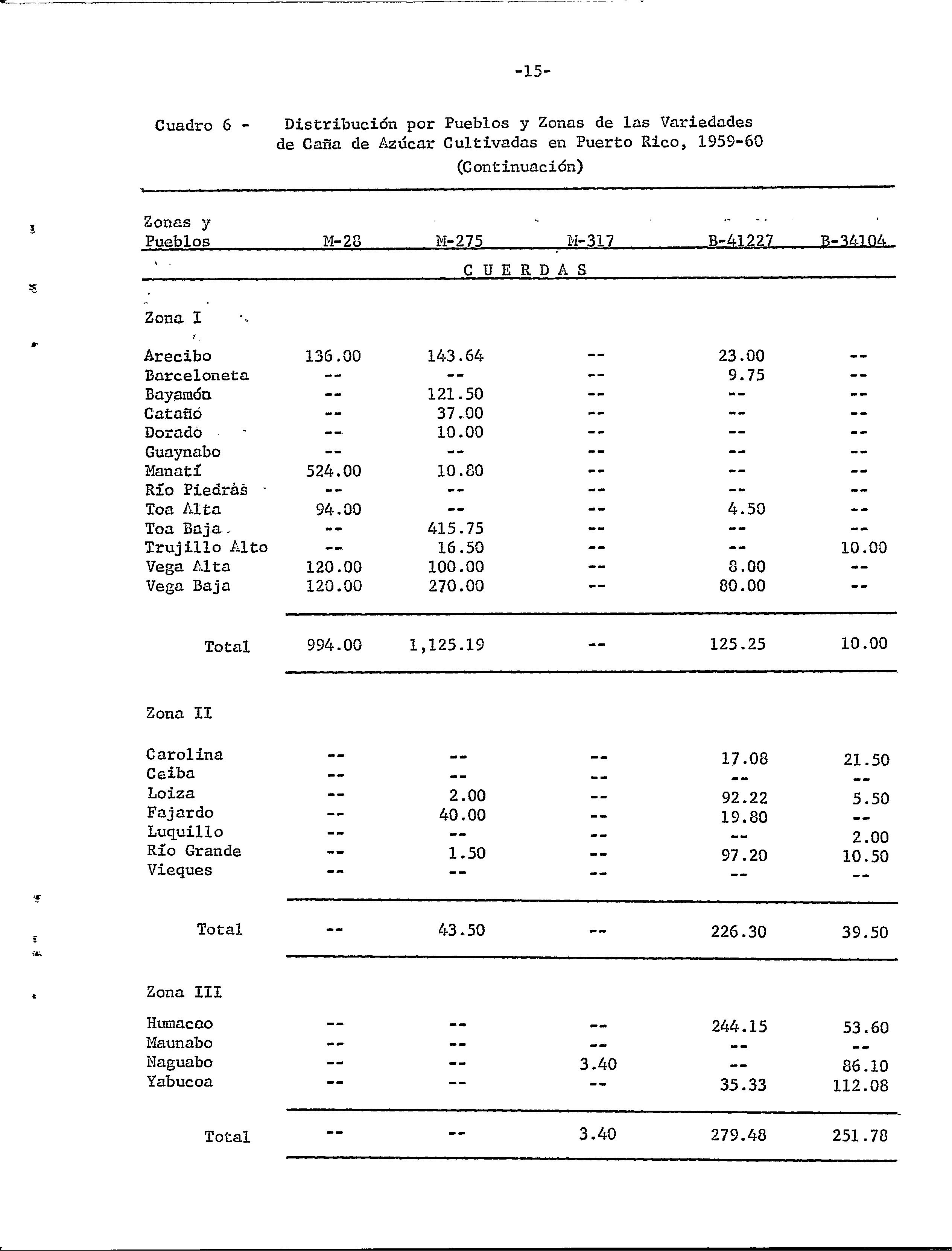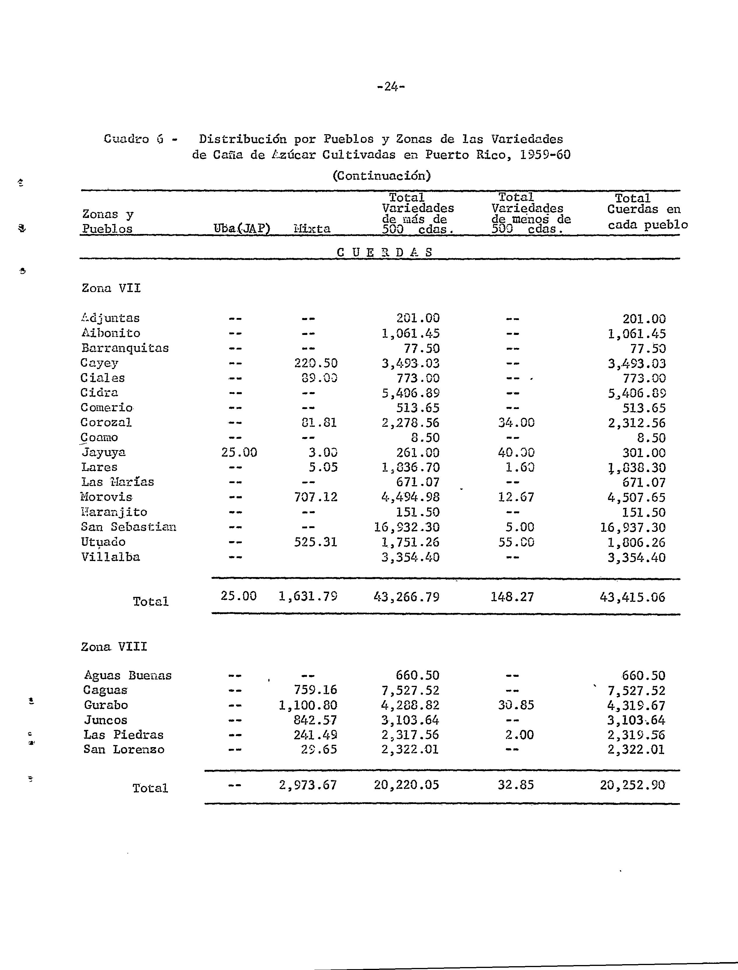Censo de variedades de caña de azúcar cultivadas en Puerto Rico, 1959-60
