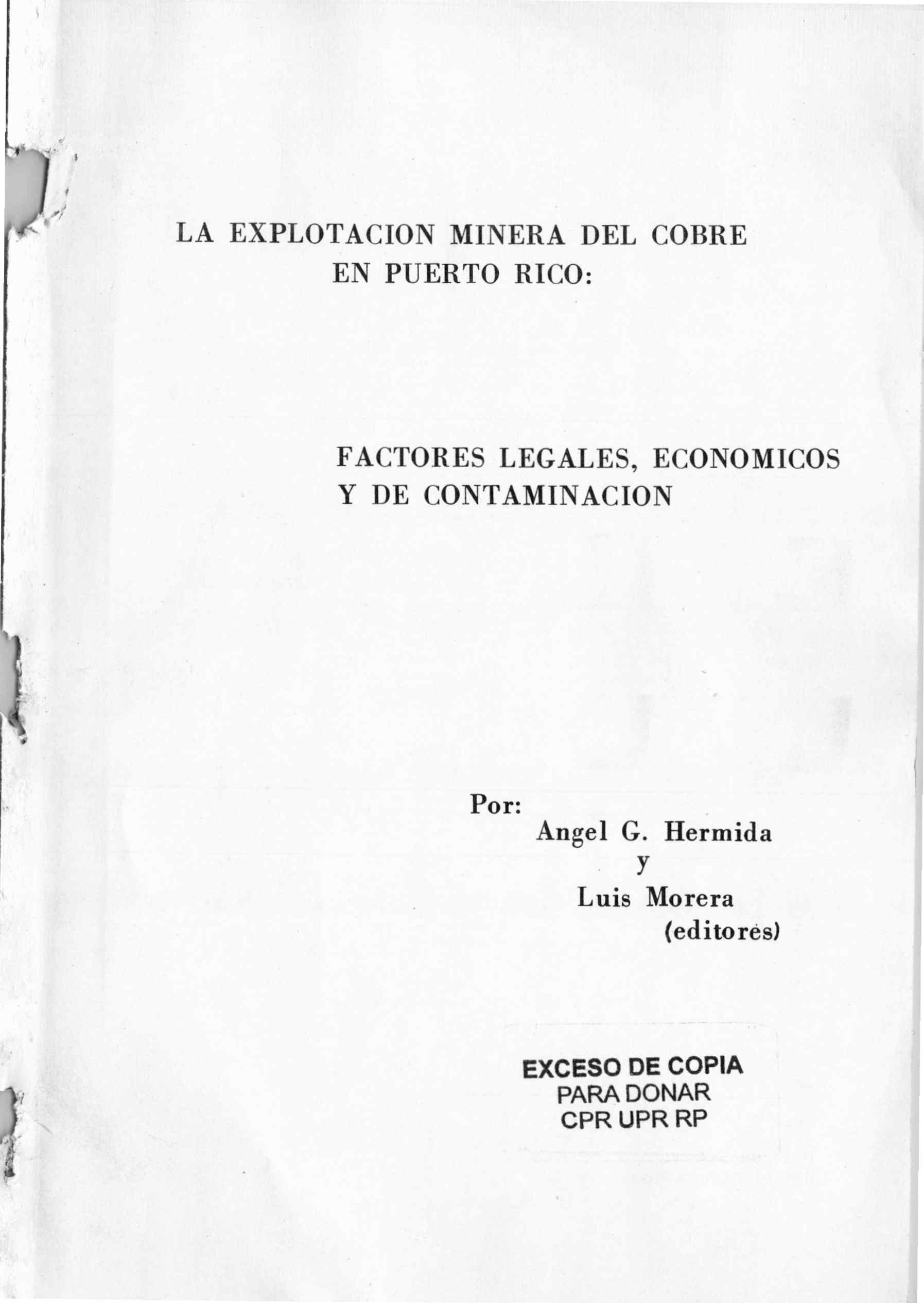 Explotación minera en Puerto Rico: factores legales, económicos y de contaminación (1969)