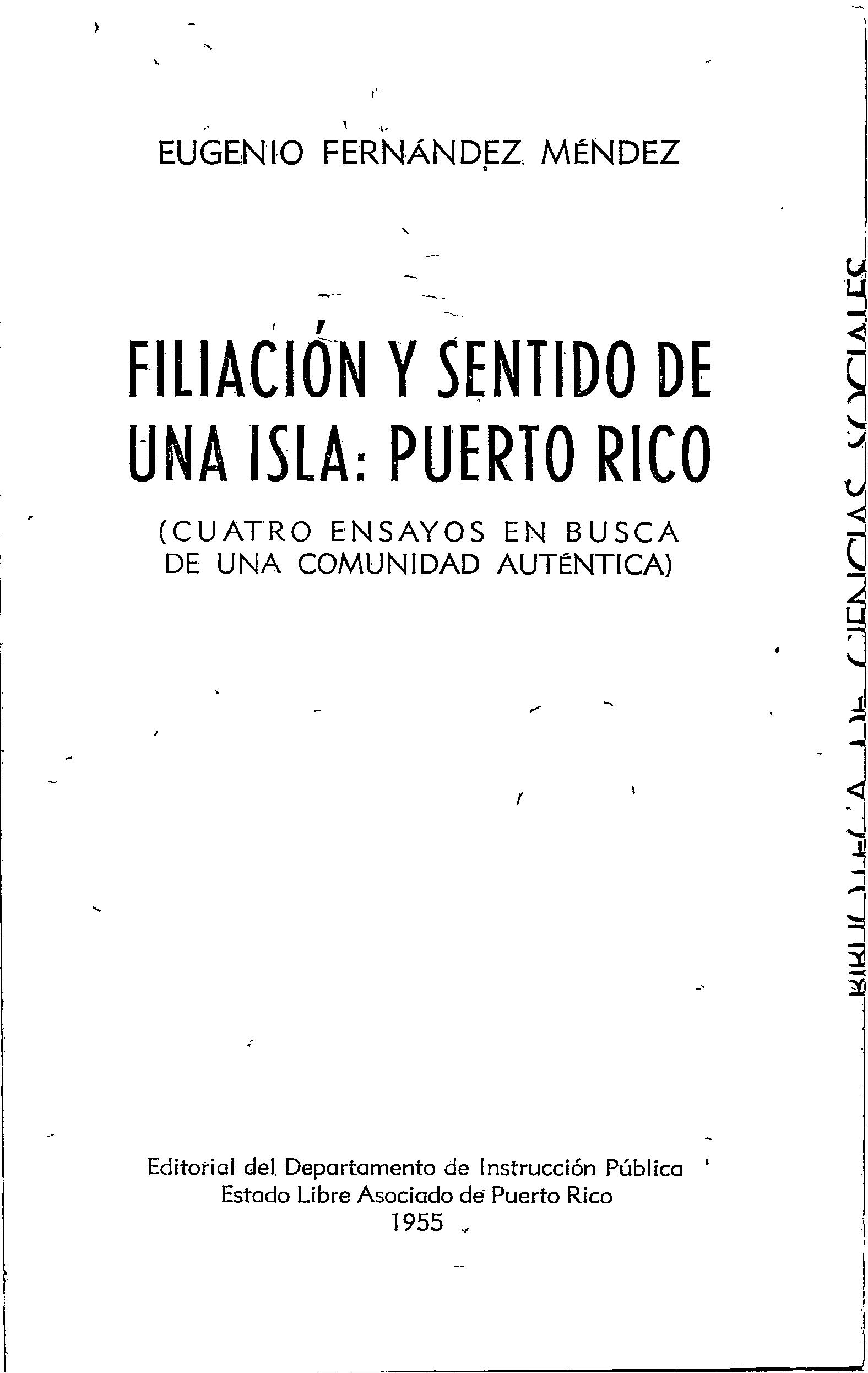Cuatro ensayos en busca de una comunidad auténtica por Eugenio Fernández Méndez. San Juan, P.R.: Editorial del Departamento de Instrucción Pública, 1955. Digitalizado vía colaboración con el Archivo Digital Nacional de Puerto Rico (https://adnpr.net).