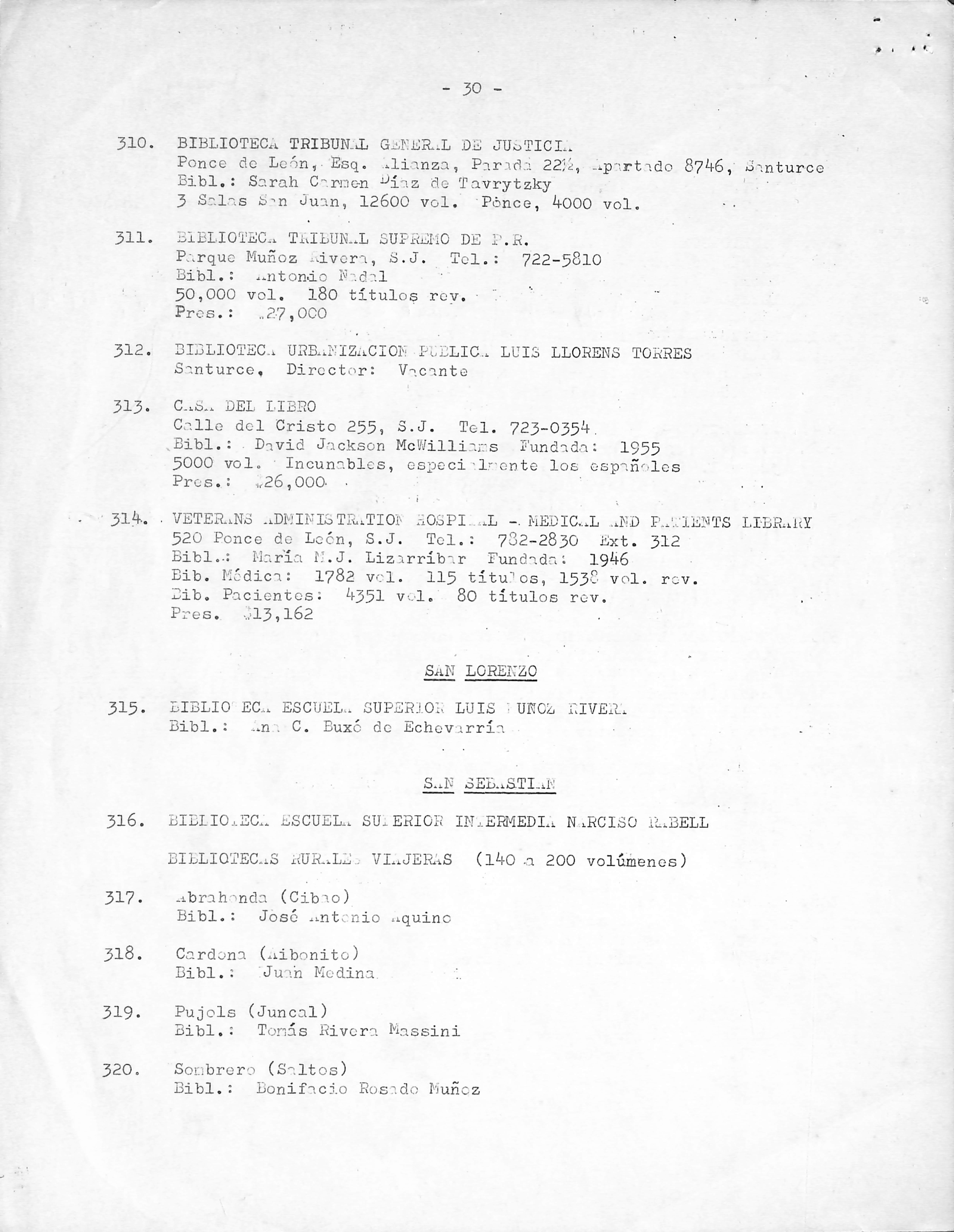 Bibl.: Mrs. Thomas WalKer ^ ^150 vol., ^0 rev. Ciro.: 50 vol. diarios Fondos: s!>5,625 Sueldos. $1,500 libros, $300 revistas.--