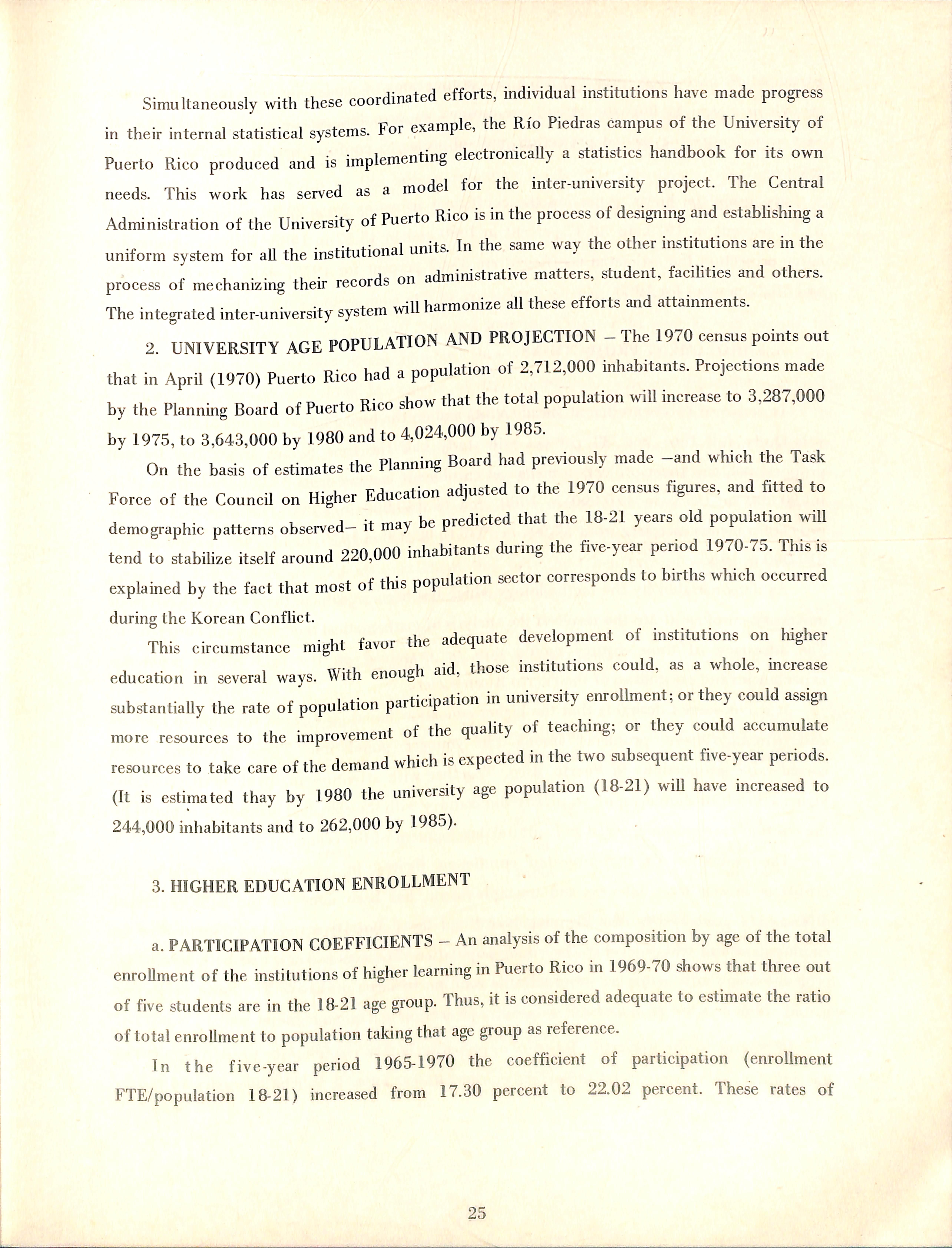 1. ATTAINMENTS IN THE PLANNING OF HIGHER EDUCATION IN PUERTO RICO