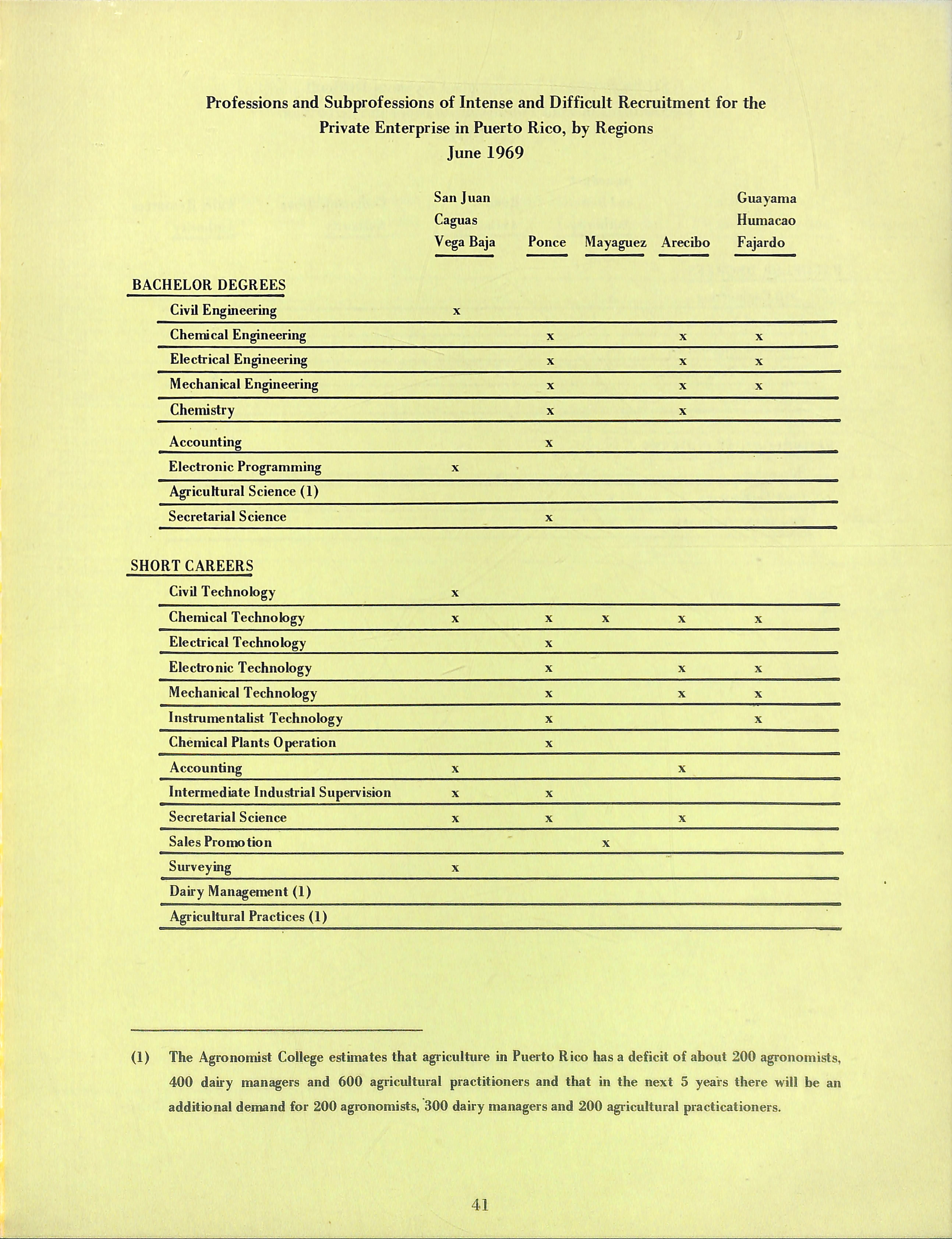 • The manpower studies demónstrate an urgent need of human resources with college education for various professional and semi-professional fíelds in the area of industrial technology and for the health services.