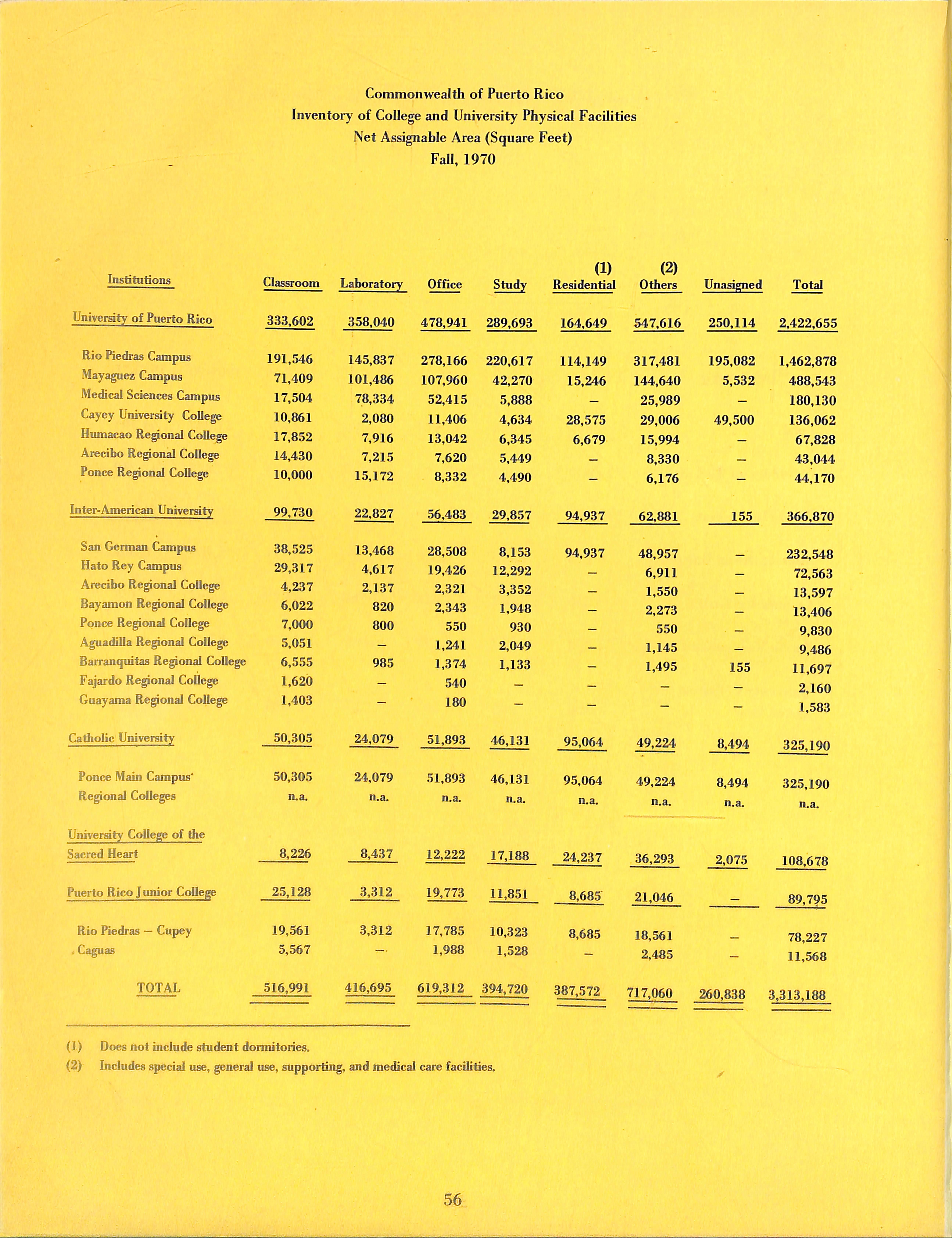 (d) Plans are under way for the construction of new facilitíes at a different site for the Hato Rey Campus of tlie Inter-American University. Iii Üiis case, as well as m those of the regional colleges of Inter-American University which occupy rented space only, Üie cost was calculated on the base of the total FIE enrollment.