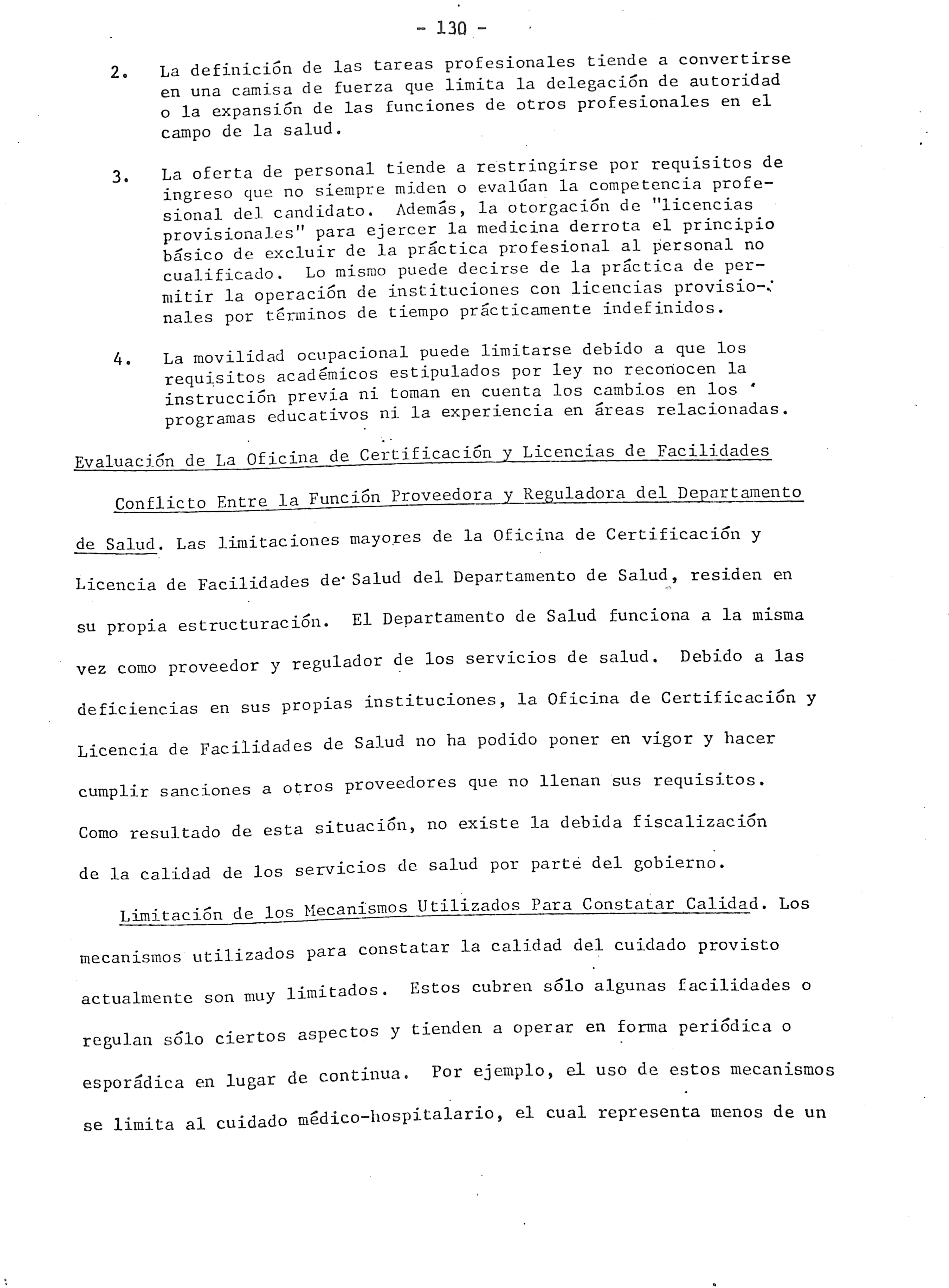 4.- "Hay un nunero de médicos (entre 200 y 300) sirviendo su segundo año de practica con licencias provisionales coro residentes en hospitales o en el servicio publico, principalmente en Centros de Salud. La mayoría de estos médicos son graduados de Escuelas