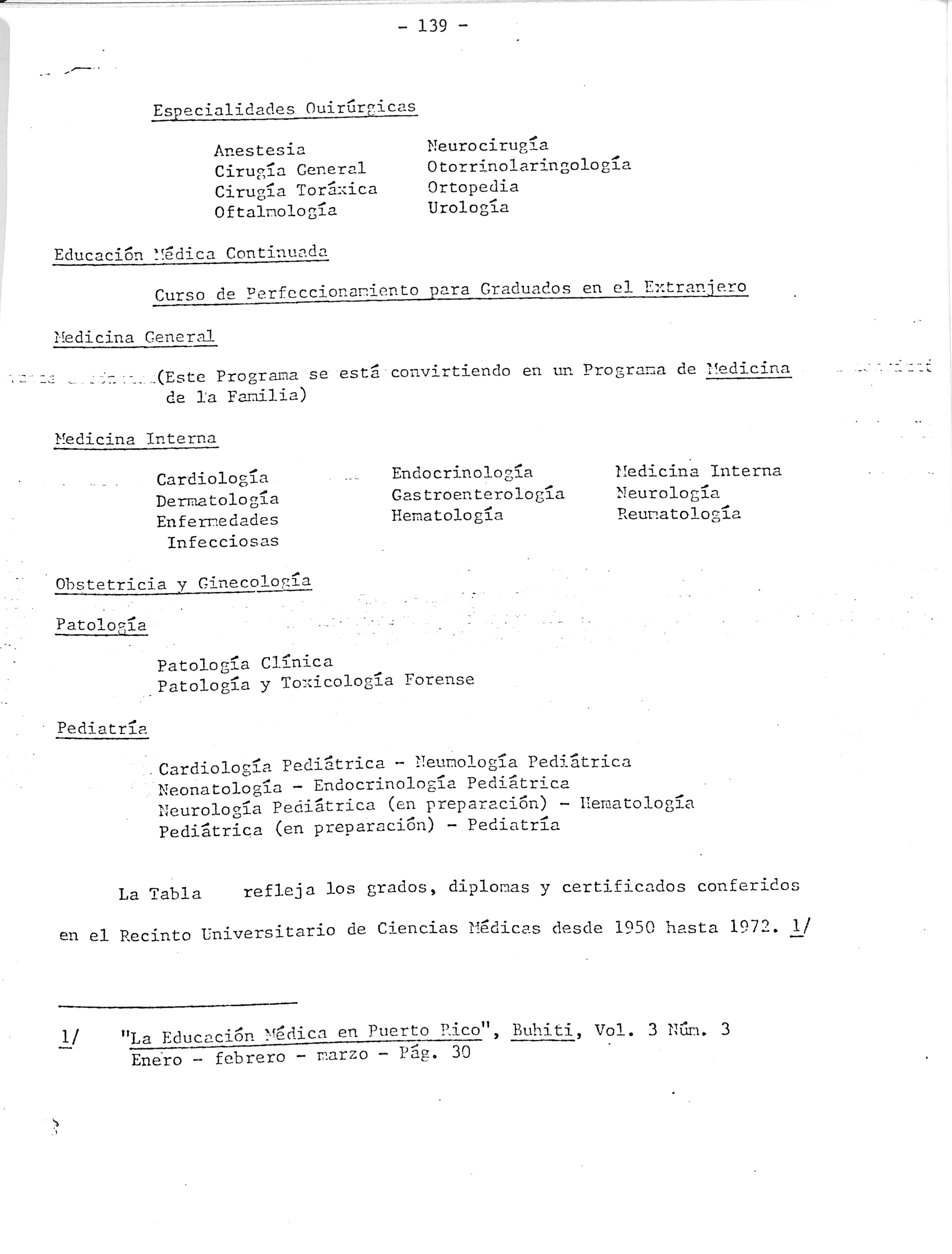 "Informe Sobre Educación !'edica" (Trabajo preparado para la Comisión Sobre el Seguro de Salud Universal), 1973 - Pags. 29-30.
