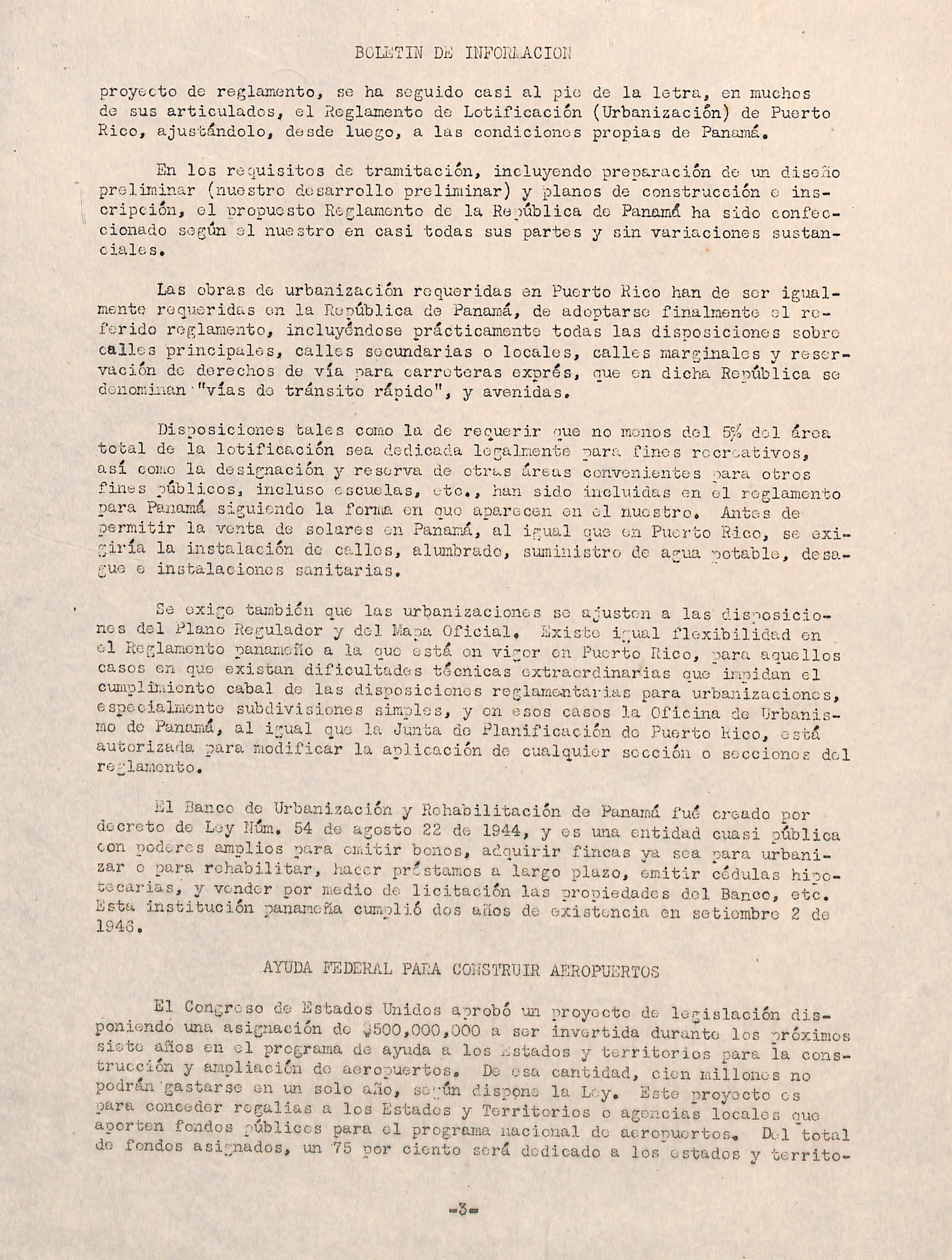 El Congreso de Estados Unidos aprobó un proyecto de ley en 1946 para que se incluya on el proyecto de deficiencias la cantidad de v55,000,000 para la obra do planificación avanzada do_ proyectos de obras públicas de la post-guorra en los Estado.s y Himicipios. Los fondos estarán disooniblos para su distribución a travos del Hegociado do Facilidades do la Comunidad de la Agencia Federal do Obras Públicas. i^)