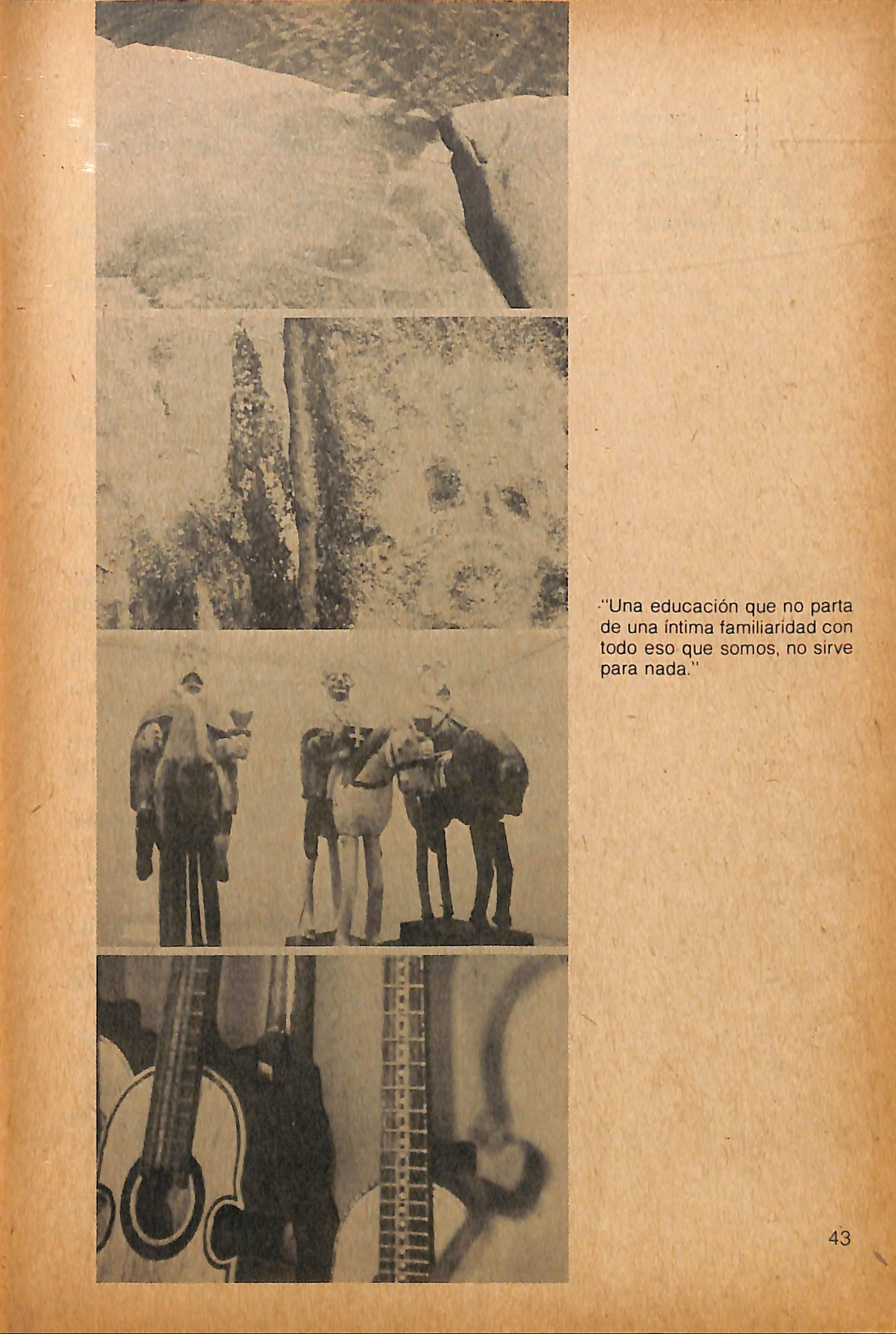 ■ dirigido a ese universalismo. El ser puerto- , ' r rriqueño —tierra, historia, sangre, paisaje, I gesto, riqueza y limitaciones—es el principio ético-existencial base de toda educación. Música, arte plástico, literatura, folklore, ¡i}, ' ' historia—tanto como ciencia, industria, téc' ' nica y democracia— constituyen la cultura , í del pueblo de Puerto Rico. La ha hecho el pueblo de Puerto Rico. Una educación que no parte desde esa cultura y que no trabaje con ella, es irrelevante, académica en el peor sentido del vocablo. Rafael Hernández ' ' . y Pedro Flores, los hermanos Figueroa y Roberto Clemente, el Centro Nuclear y la Torre Universitaria, son símbolos de ese patriotismo, como lo son Oller y Campeche, Moren Campos y Muñoz Rivera, Mostos y Barbosa, la Iglesia de Hormigueros y Porta Coeli —los símbolos comunes de nuestra gesta. Una educación que no parta de una íntima familiaridad con todo eso que somos, no sirve de nada. El análisis y la crítica de la cultura superior tienen que partir de esa íntima familiaridad. Hay que radicar la ^^2 educación en el proyecto y en el rastro his-