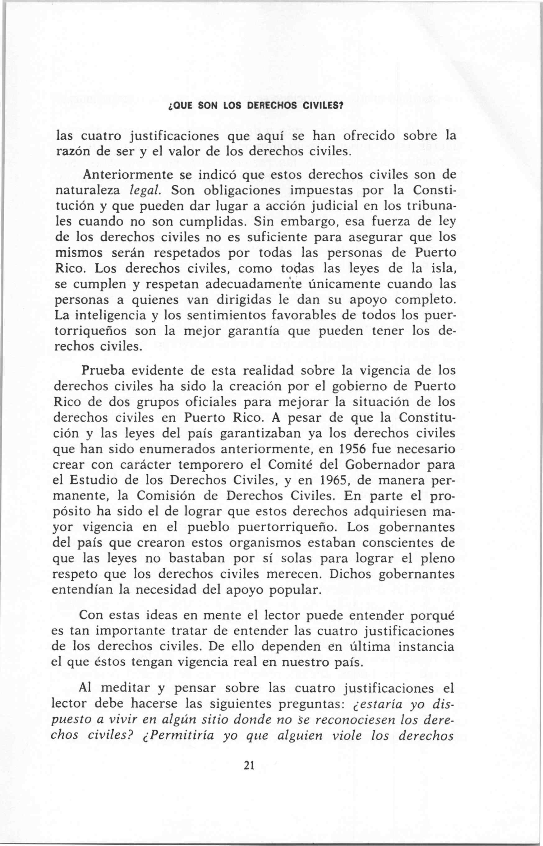 Los derechos civiles reconocidos en el sistema de vida de los puertorriqueños (1968)