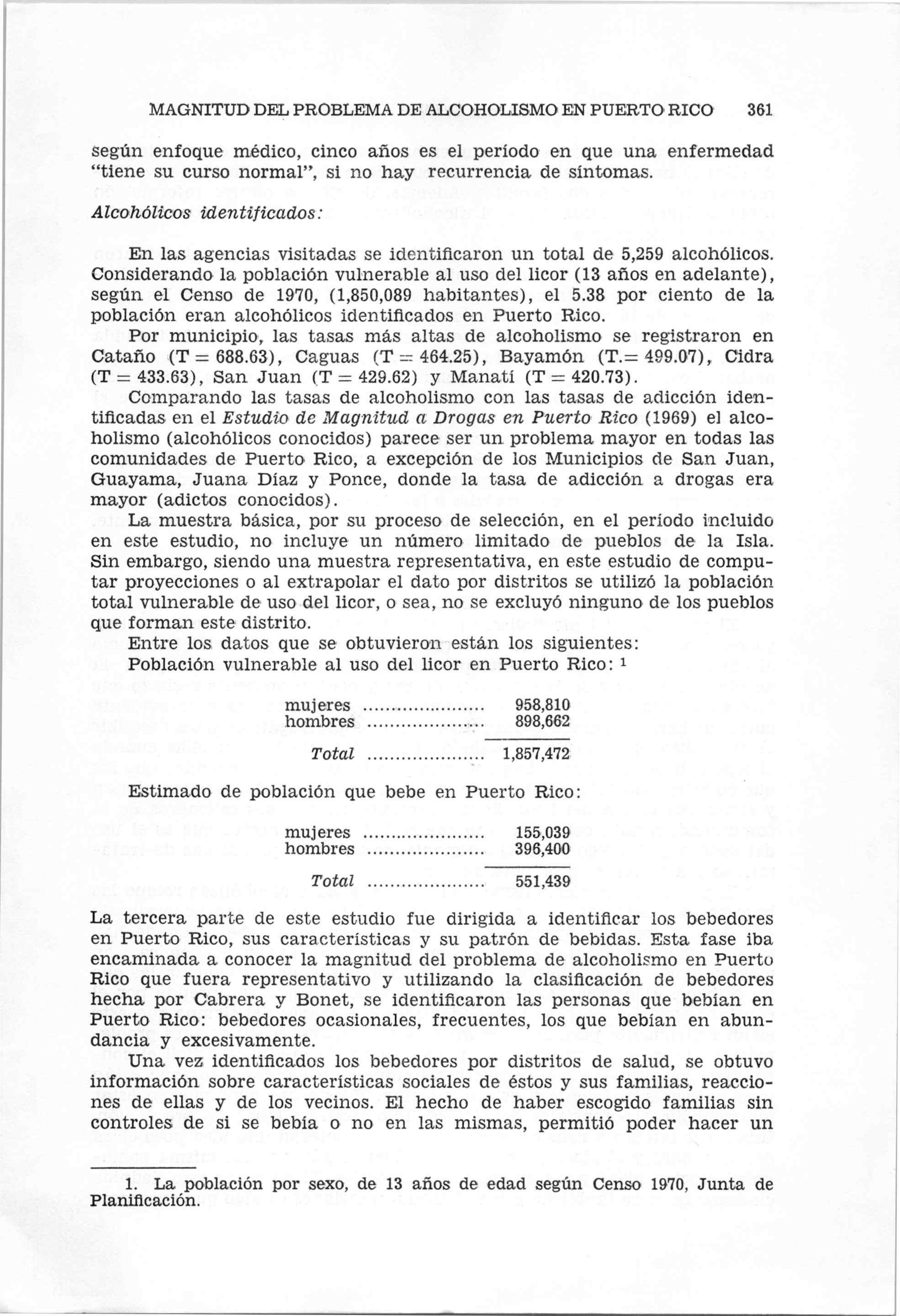 Magnitud del Problema de Alcoholismo en PR (1976)