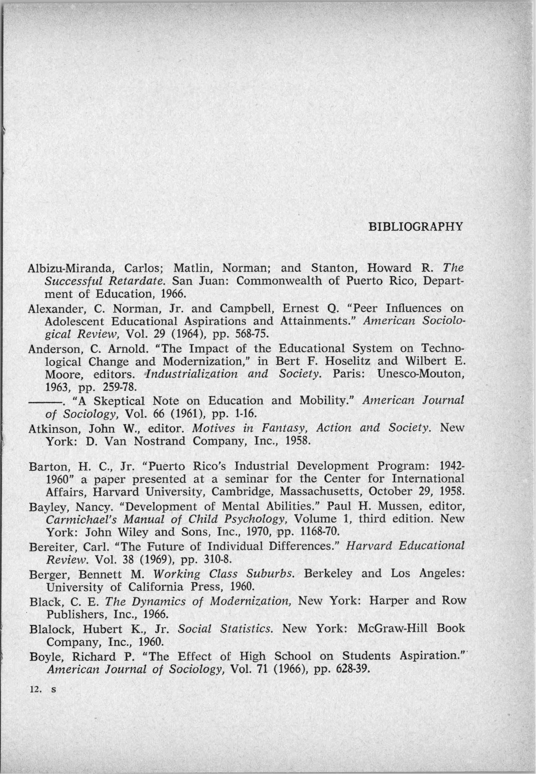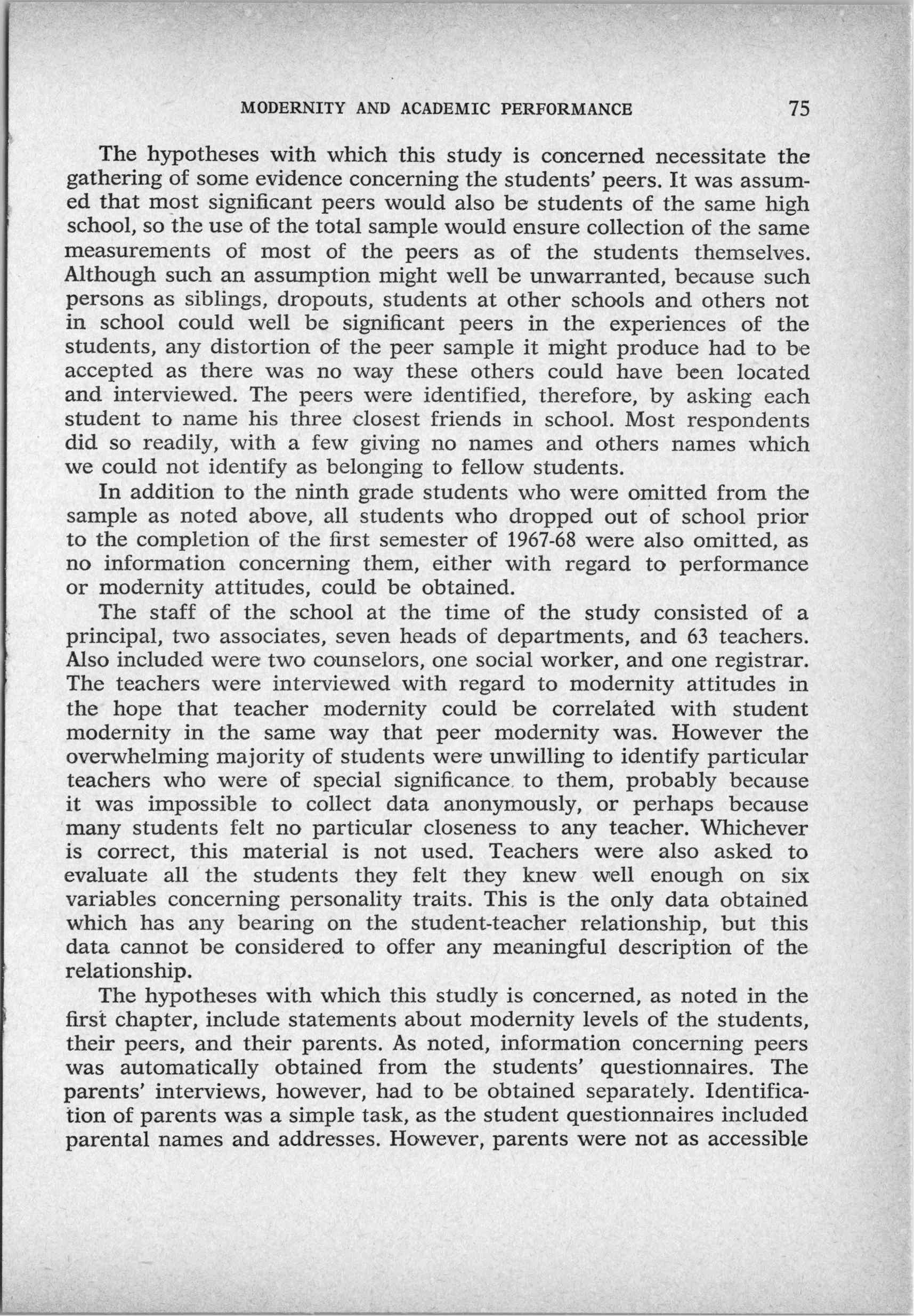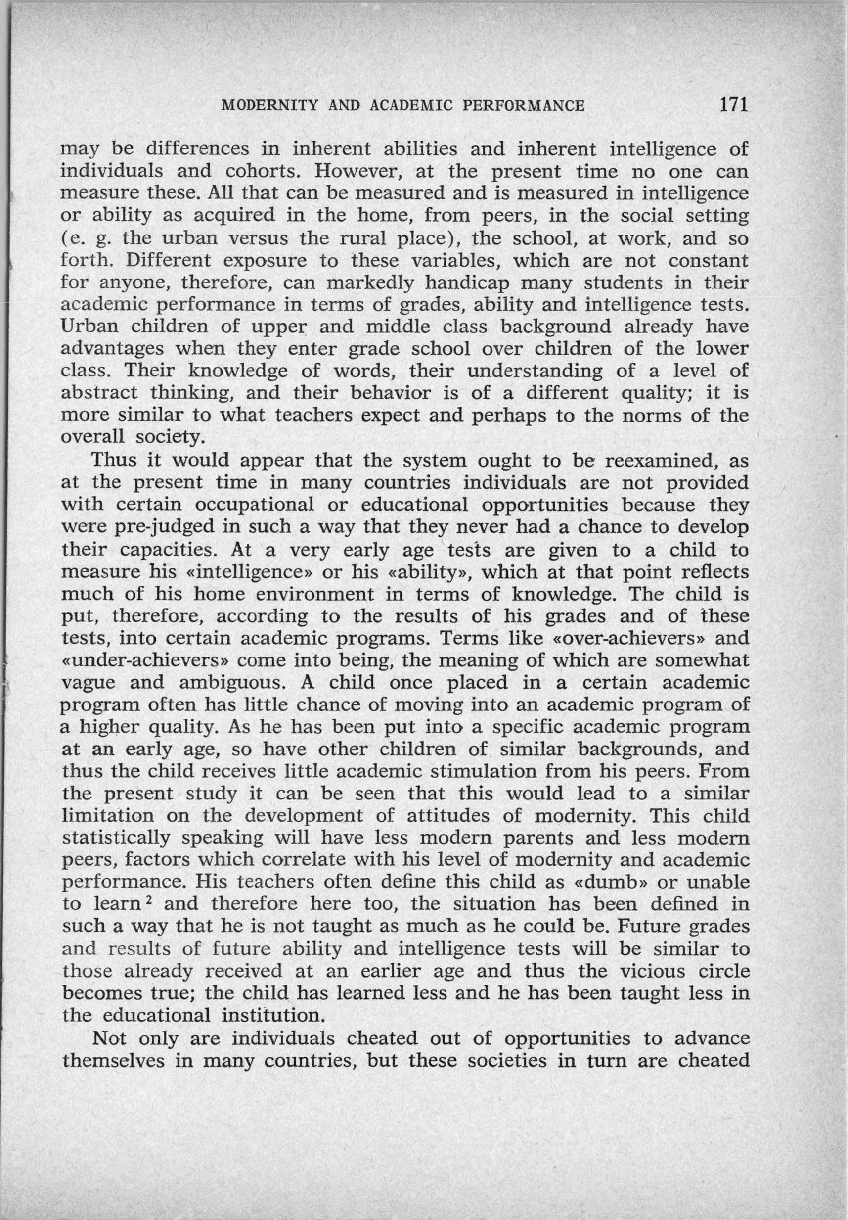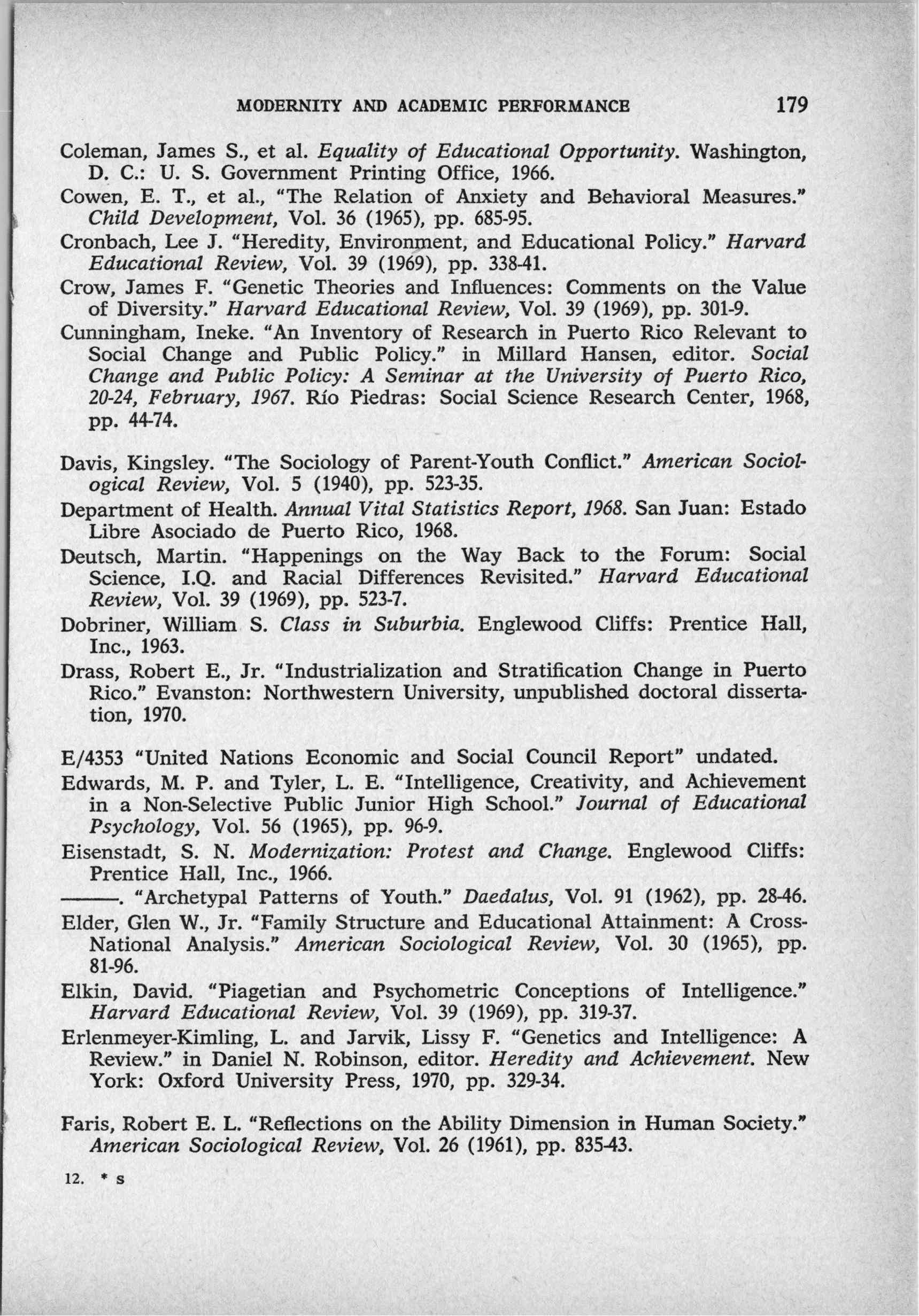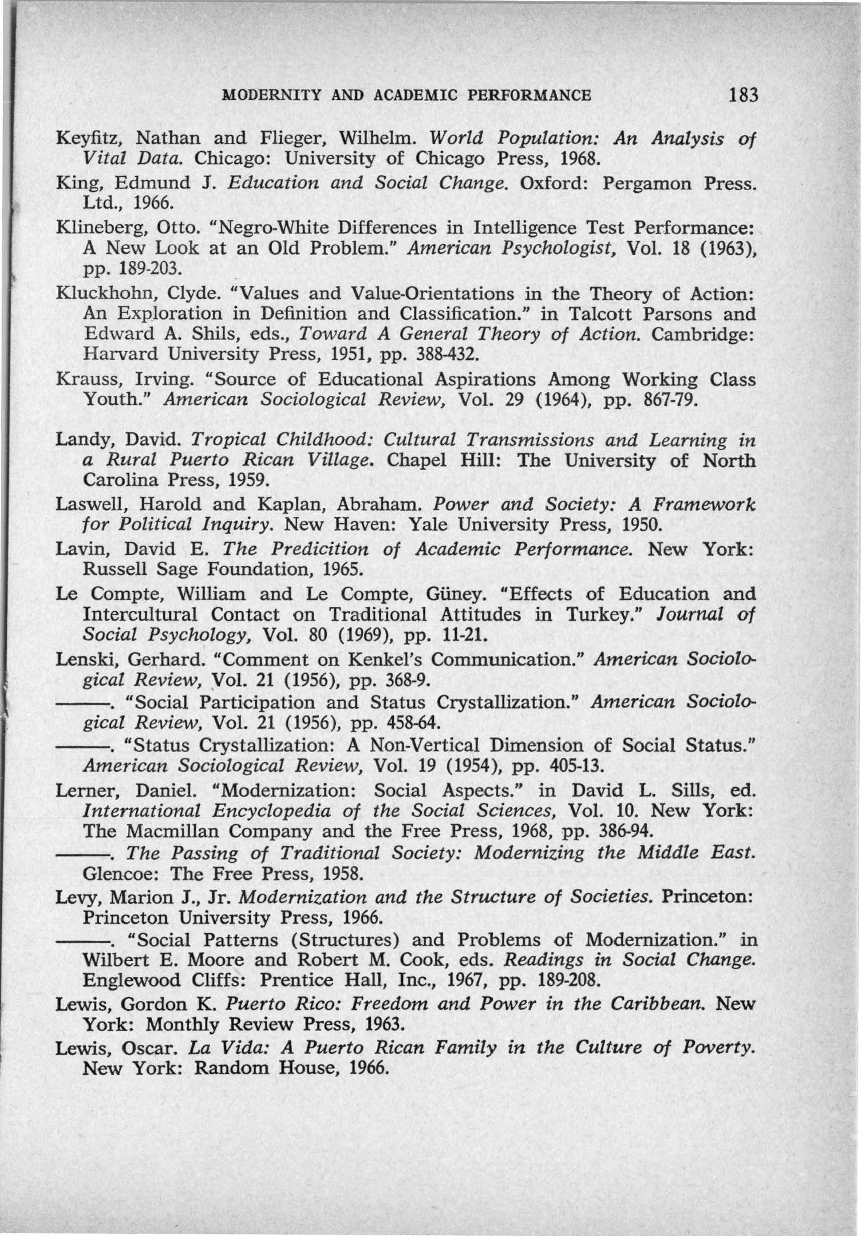 Modernity and Academic Performance: A Study of Students in a Puerto Rican High School (1972)