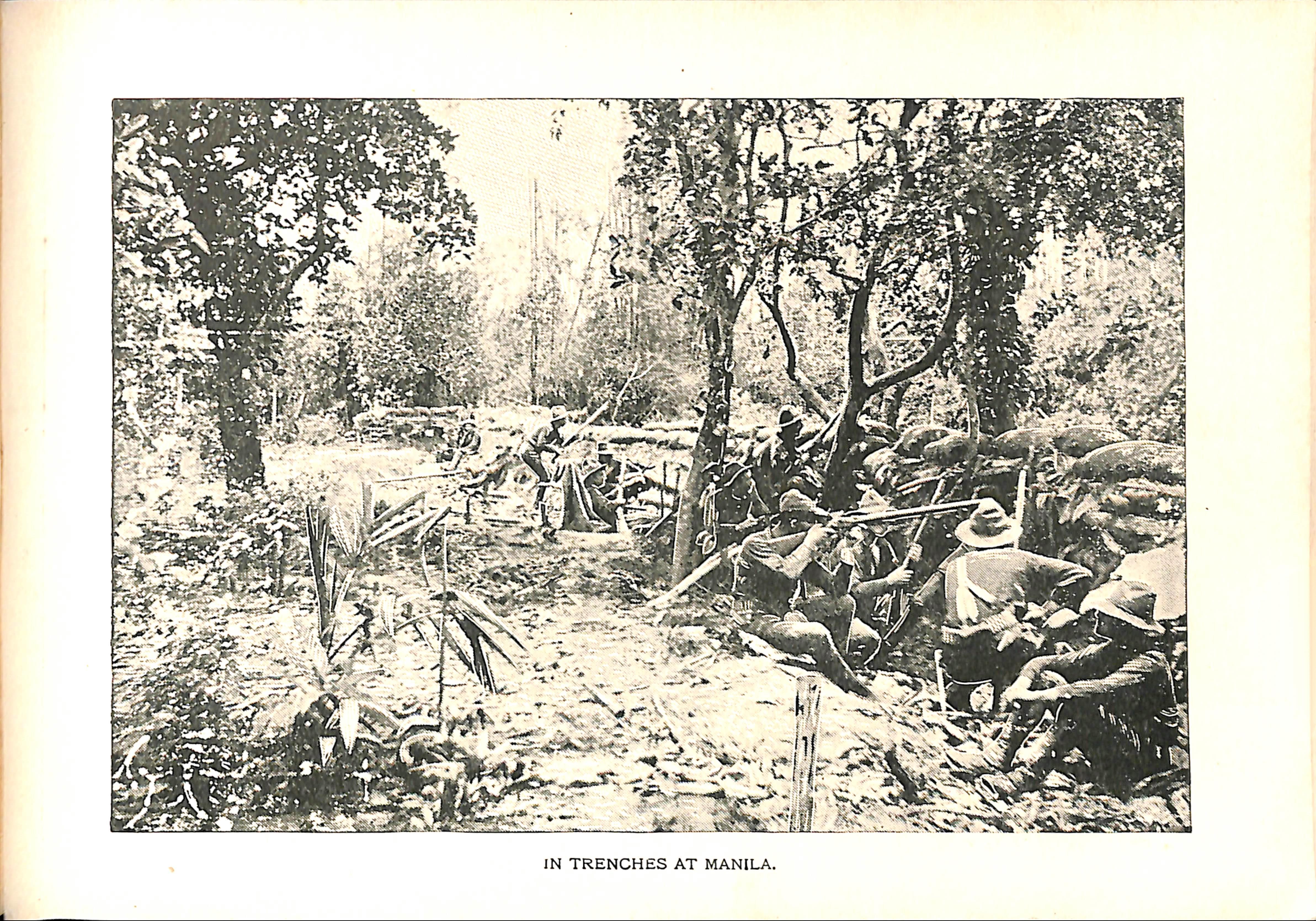 This inc:eníous floatinj^ wharf wns built by the Amerícan engineers shortly after the disembarkation of ihe American Army. Although It looks frail and ii*^stable it is \•^ realitv quite strong, and from the time of its construction has proved of great valué to both the army during the war a id to the place since iiie Spanish evacuation.