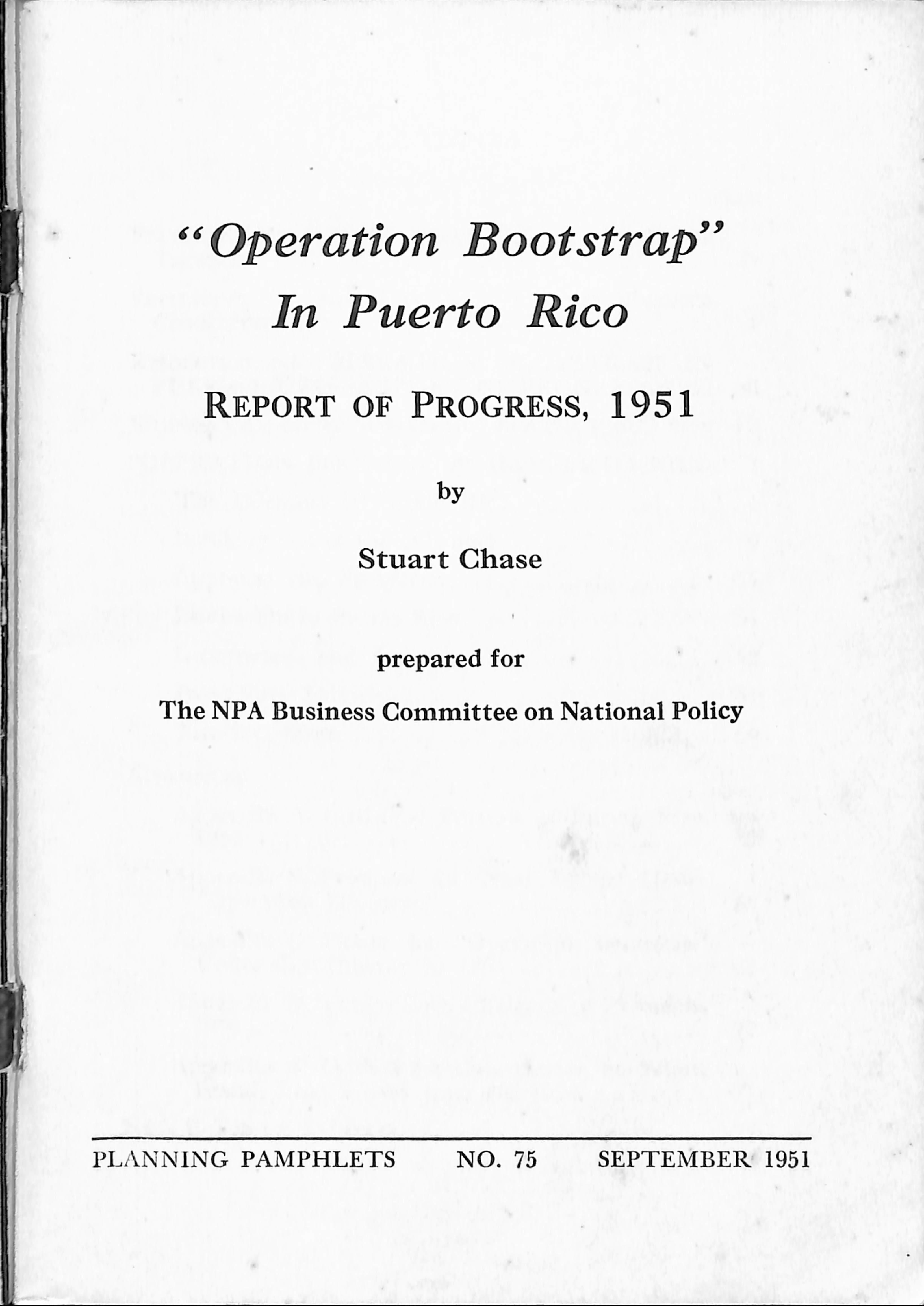 The NPA Business Committee on National Poliqf has considered "Operation Bootstrap" in Puerto Rico—Report of Progress, 1951, by Stuart Chase. Without necessarily passing on the details of Mr. Chase's report, the Committee finds this a competent presentation of crucial questions in connection with national and international economic development programs.