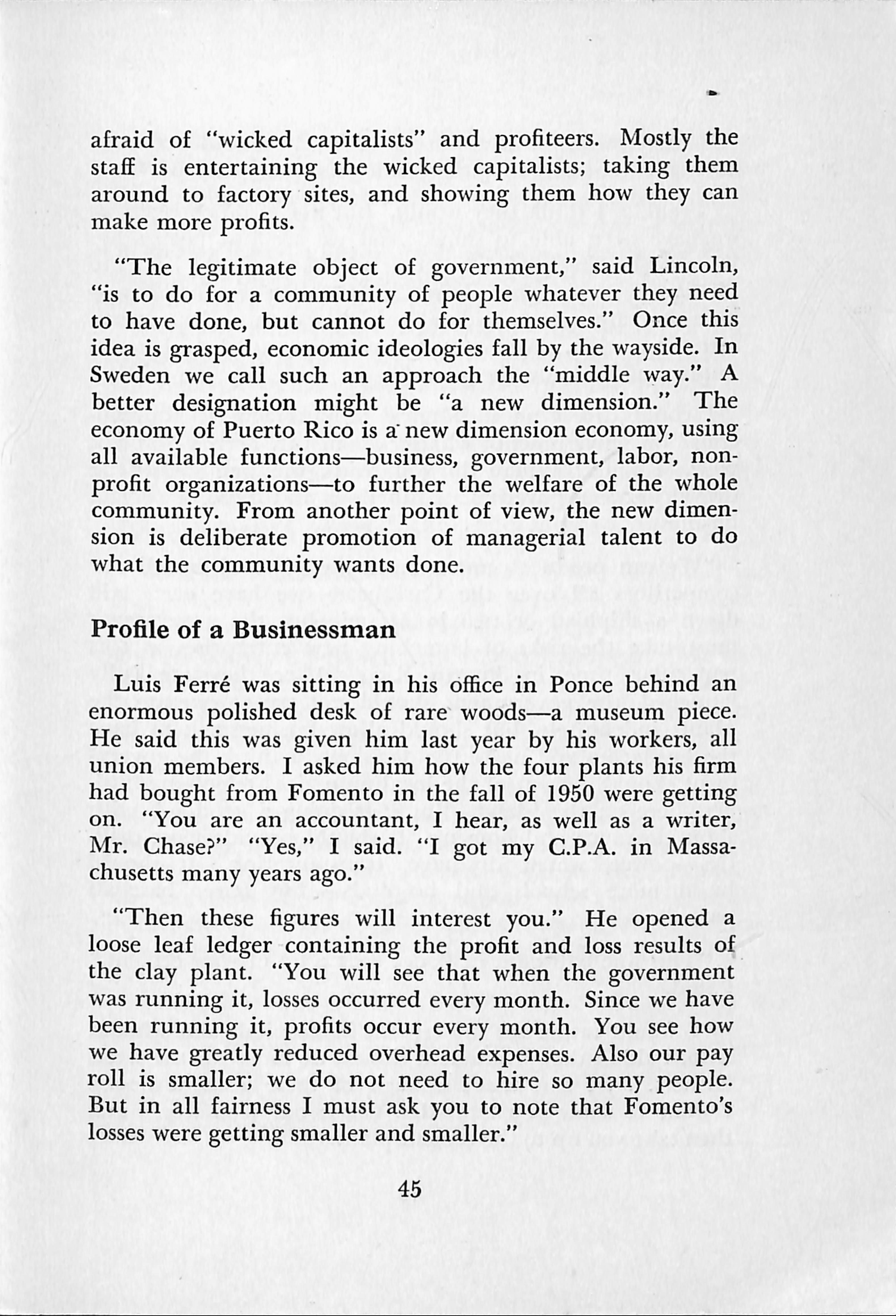 The Business Committee believes that industrialization of many underdeveloped areas throughout the ■world is of concern to Americans. Mr. Chase reviews Puerto Rico's efEorts to solve some of its difficulties growing out of underindustrialization and points to lessons which he believes tvill be valuable to government and business leaders in both lo;w-income and highincome societies.