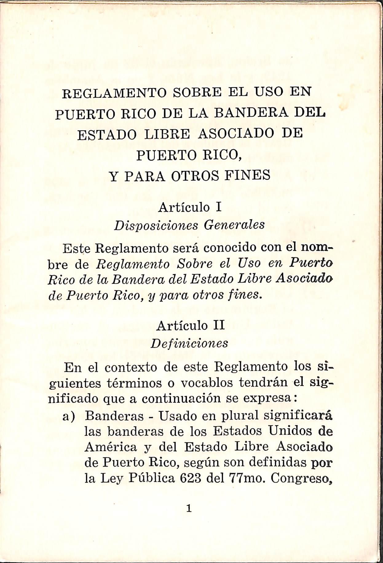 b) Bandera - Al usarse en singular signi ficará la Bandera del Estado Libre Aso ciado de Puerto Rico.