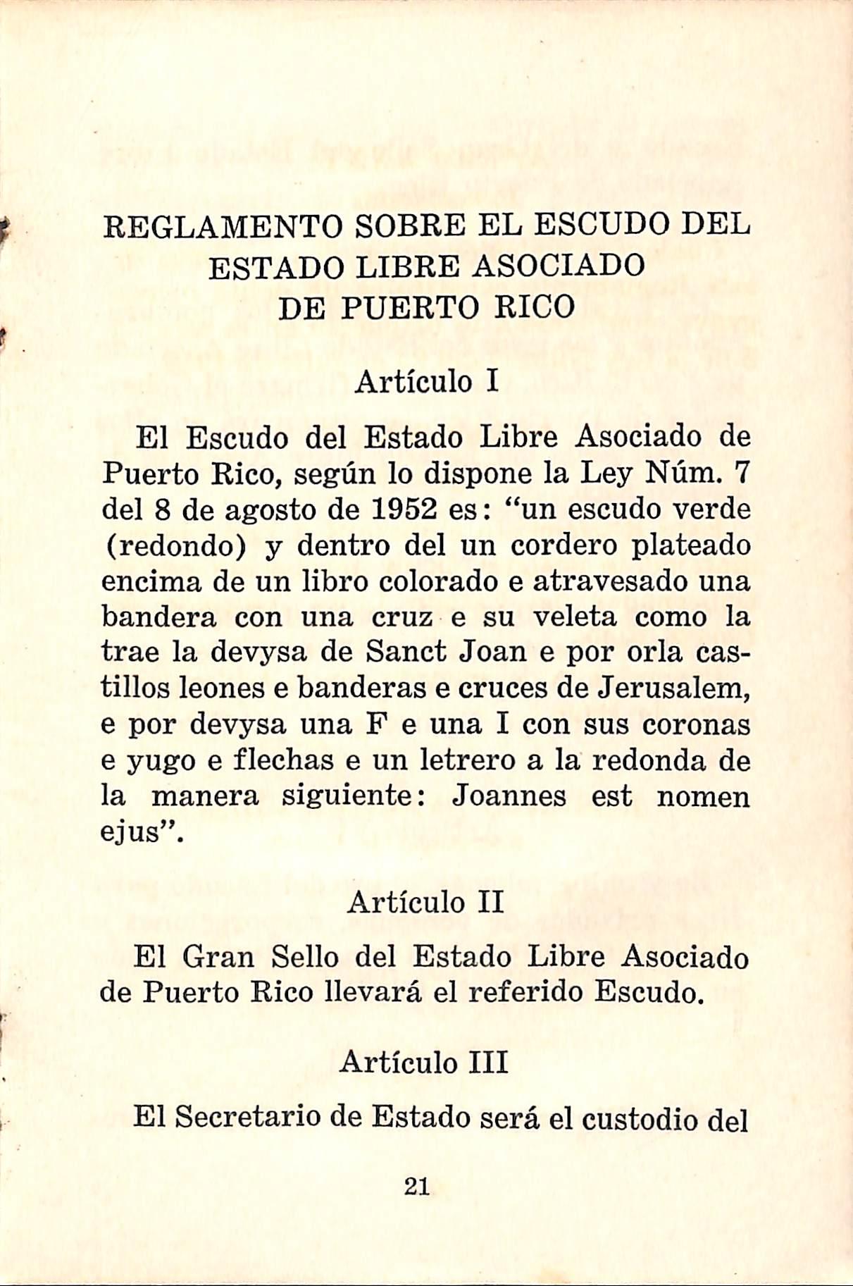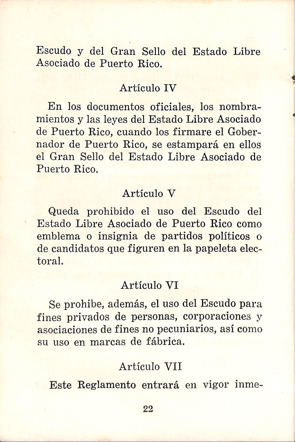 Escudo y del Gran Sello del Estado Libre Asociado de Puerto Rico.