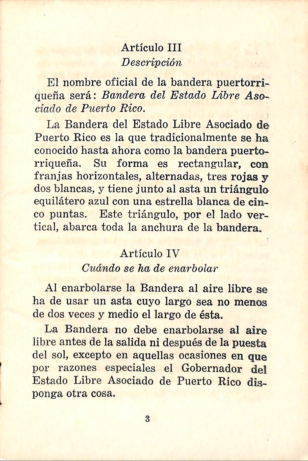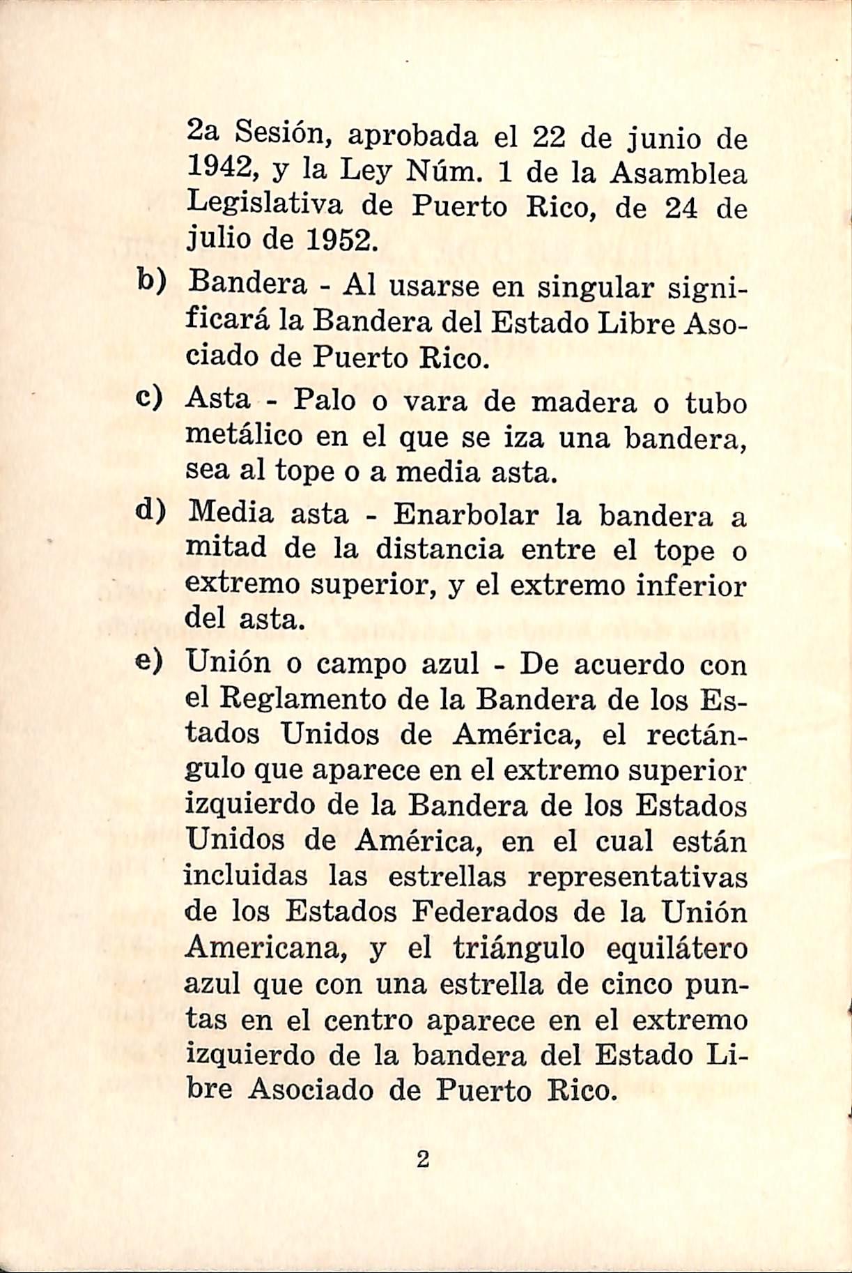b) Bandera - Al usarse en singular signi ficará la Bandera del Estado Libre Aso ciado de Puerto Rico.