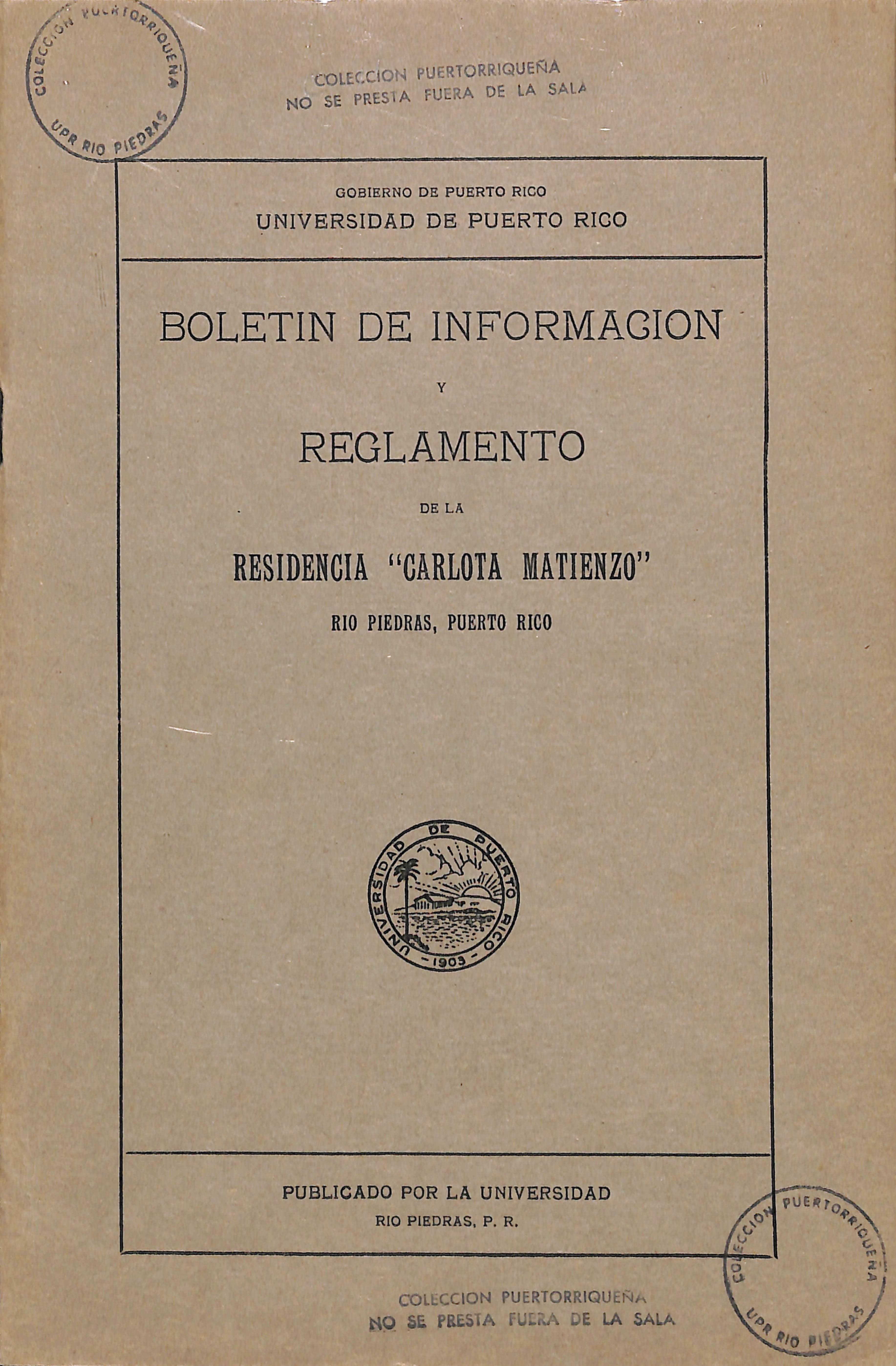 La Universidad de Puerto Rico por medio de este edificio de residencia ofrece a las jóvenes estudiantes un ambiente sano donde mejor puedan desarrollarse moral, física e inteleetualmente al mismo tiempo y donde puedan vivir una vida realmente estudiantil y disfratar de ella en todos sus aspectos. Se les proporcionarán los me dios de participar en distintas actividades que les servirán de prác tica para lo que puedítn hacer en el futuro. La Universidad obser vará y dará crédito a las colegiales por las iniciativas que se tomen y por la originalidad que demuestren en todas las actividades en que tomen parte durante su permanencia en el edificio.