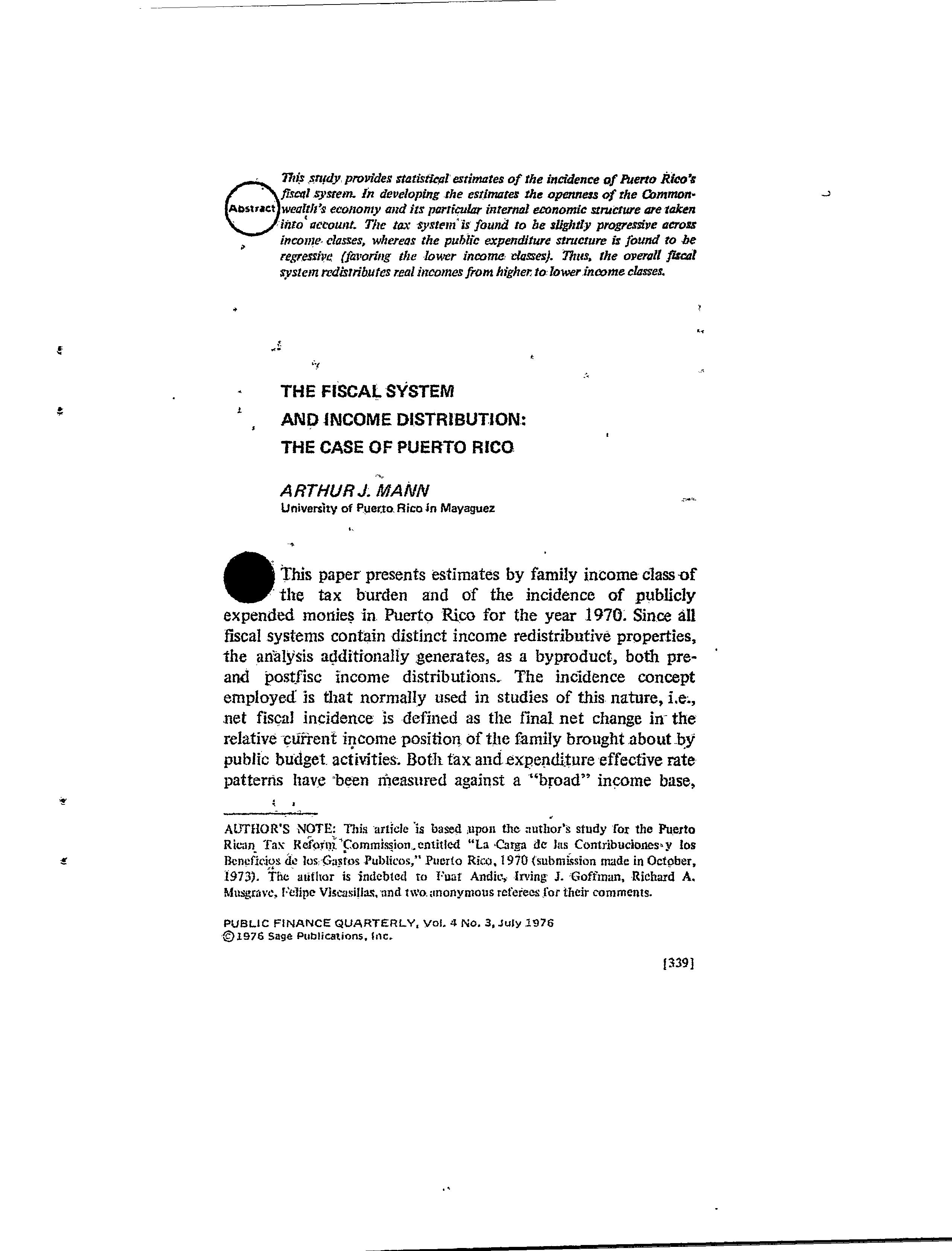 (1) Public Expenditure Patterns in the Dominican Republic and PR, 1930-1970/ Arthur J. Mann (2) The Fiscal System and Income Distribution: The Case of Puerto Rico/ Arthur J. Mann (3) Utility Functions, Public Goods and Income Distribution/ Arthur J. Mann y Donald Perlis. Digitalizado vía colaboración con el Archivo Digital de Puerto Rico (https://adnpr.net).