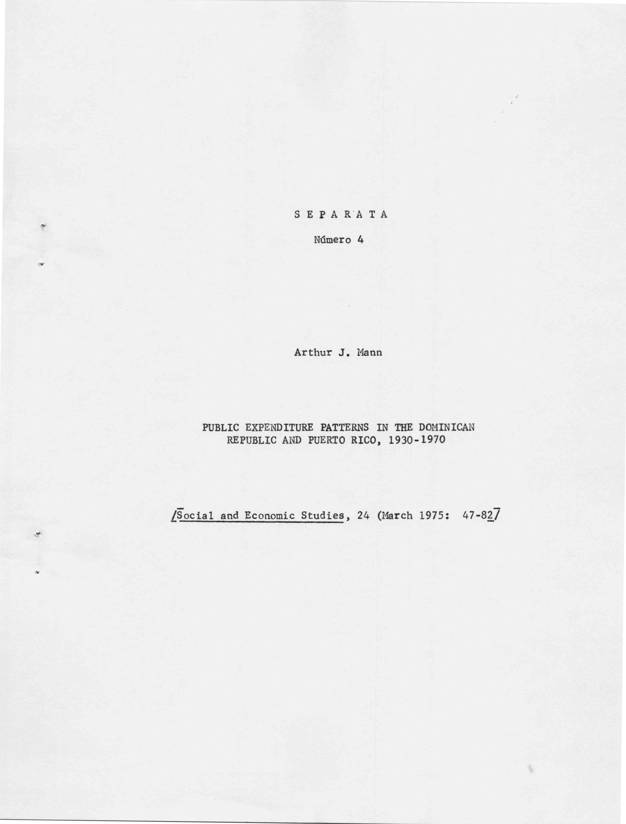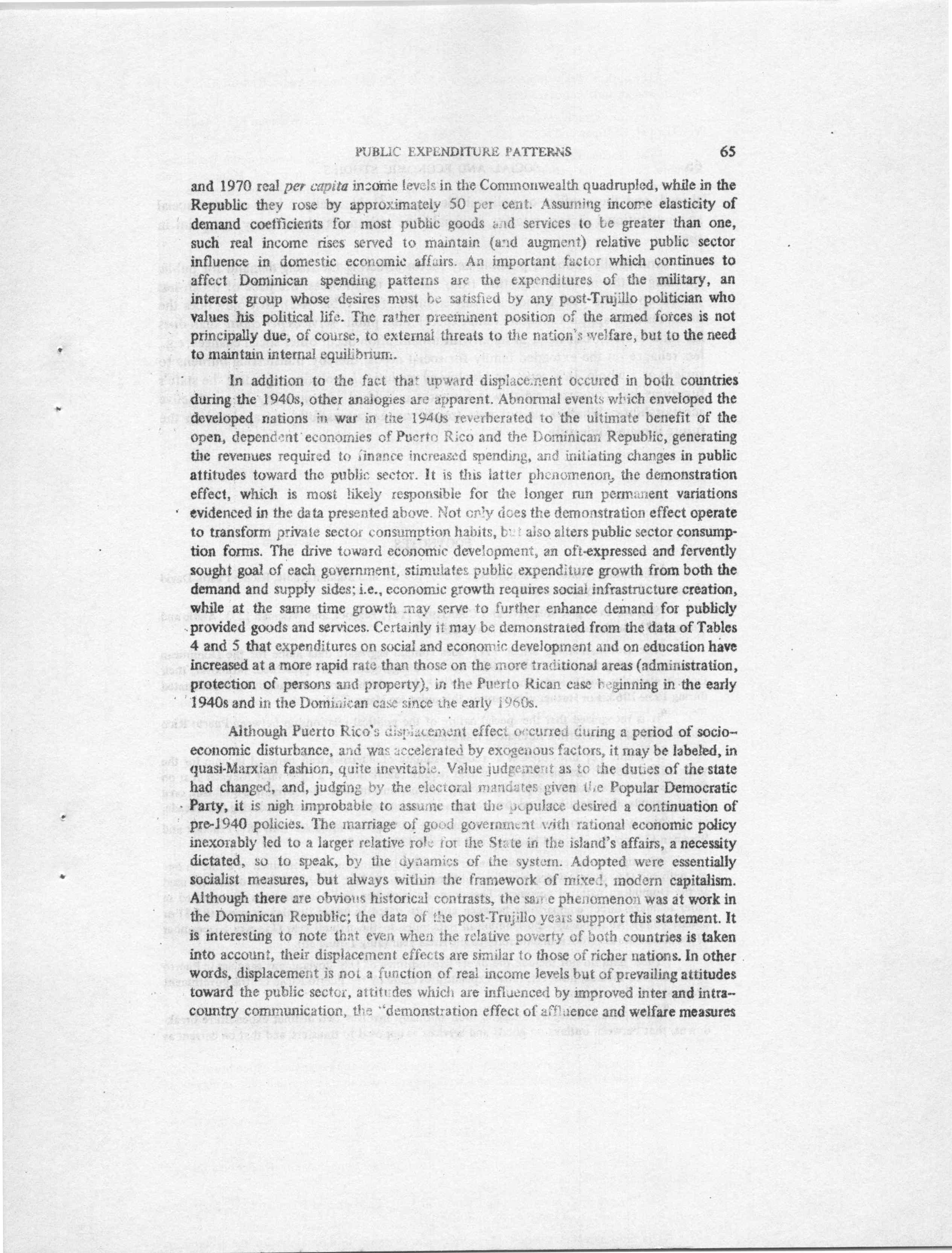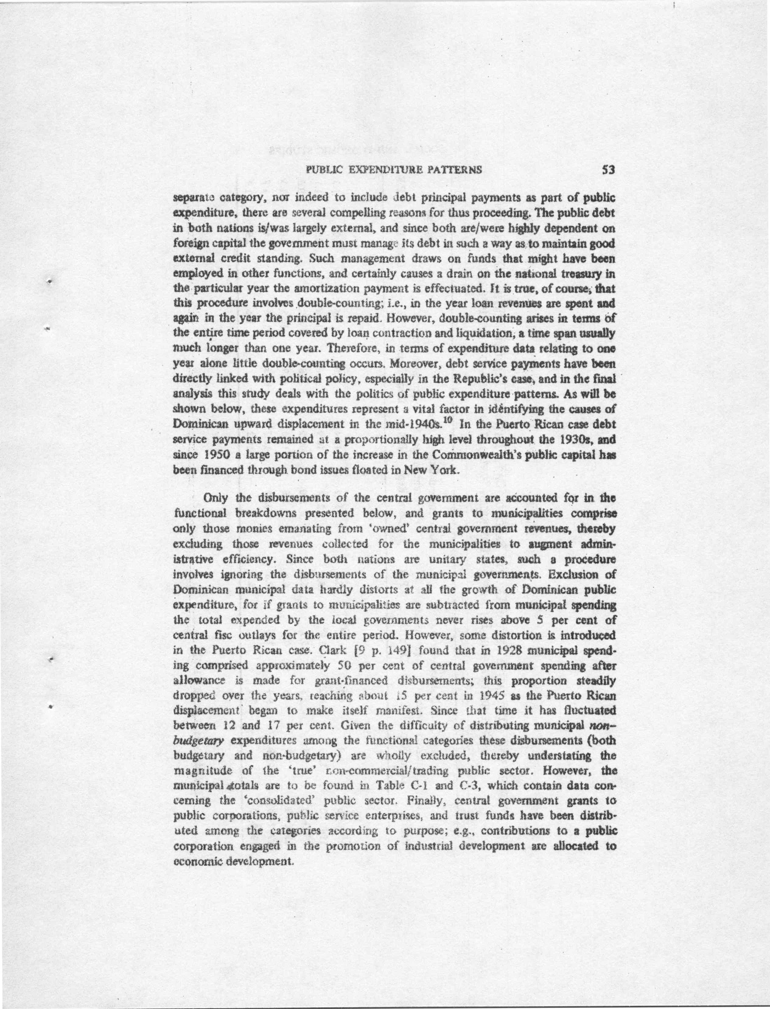 Public Expenditure Patterns in the Dominican Republic and Puerto Rico, 1930-1970
