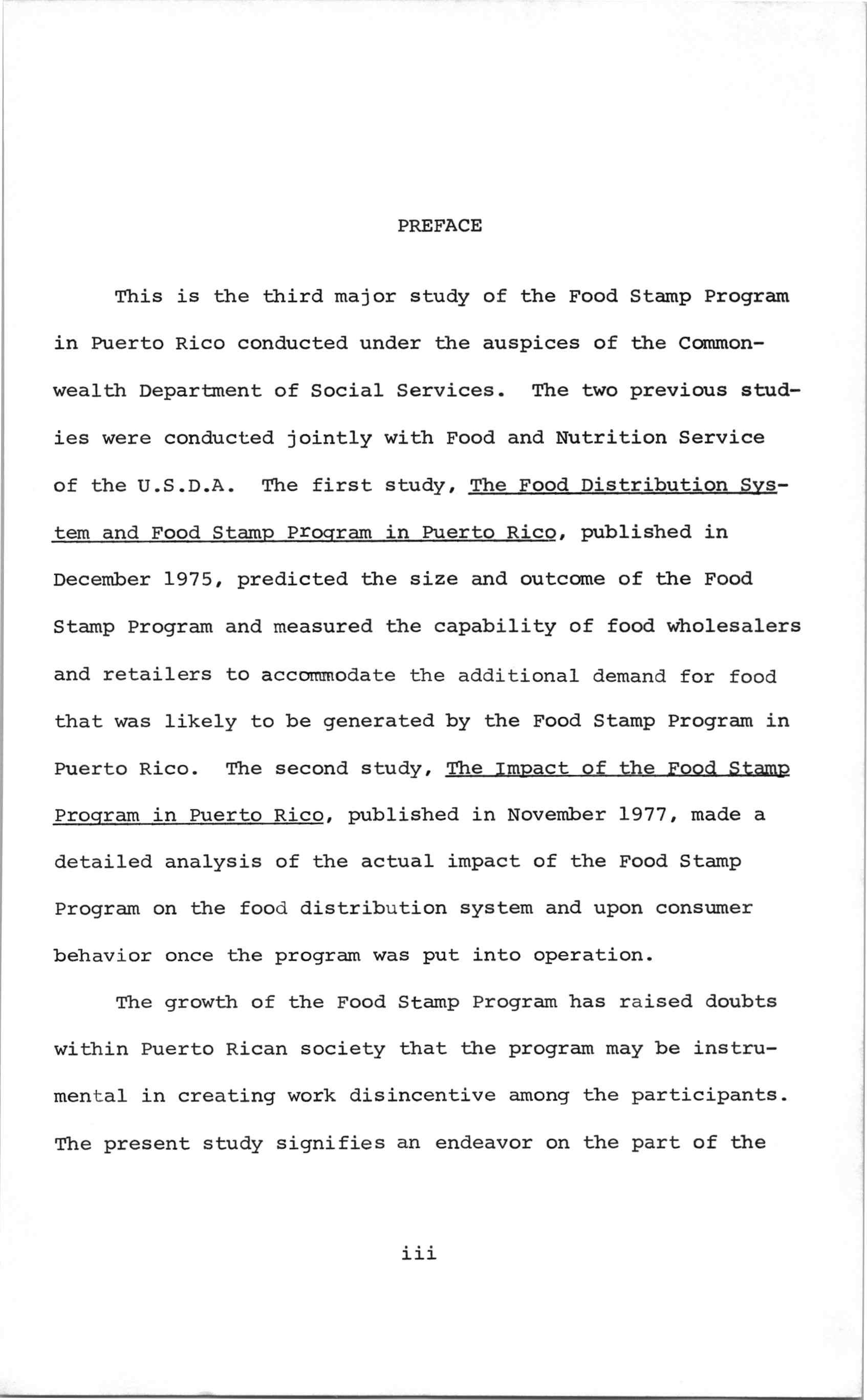 Proyect Director Parimal Choudhury. A Joint Reserch Project: US Department of Agriculture Food and Nutrition Service and the Commonwealth of Puerto Rico, Department of Social Service. Digitalizado vía colaboración con el Archivo Digital de Puerto Rico (https://adnpr.net).