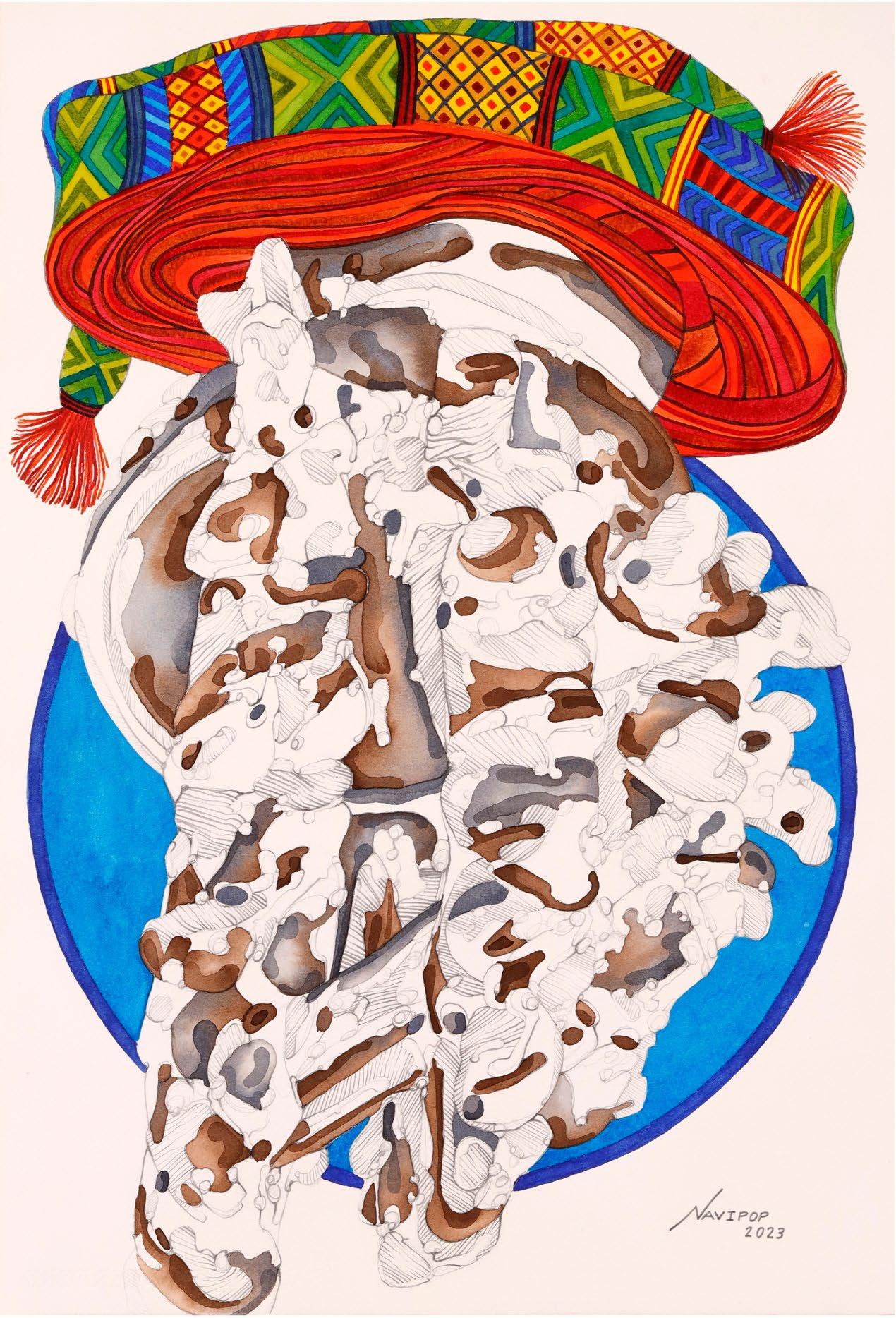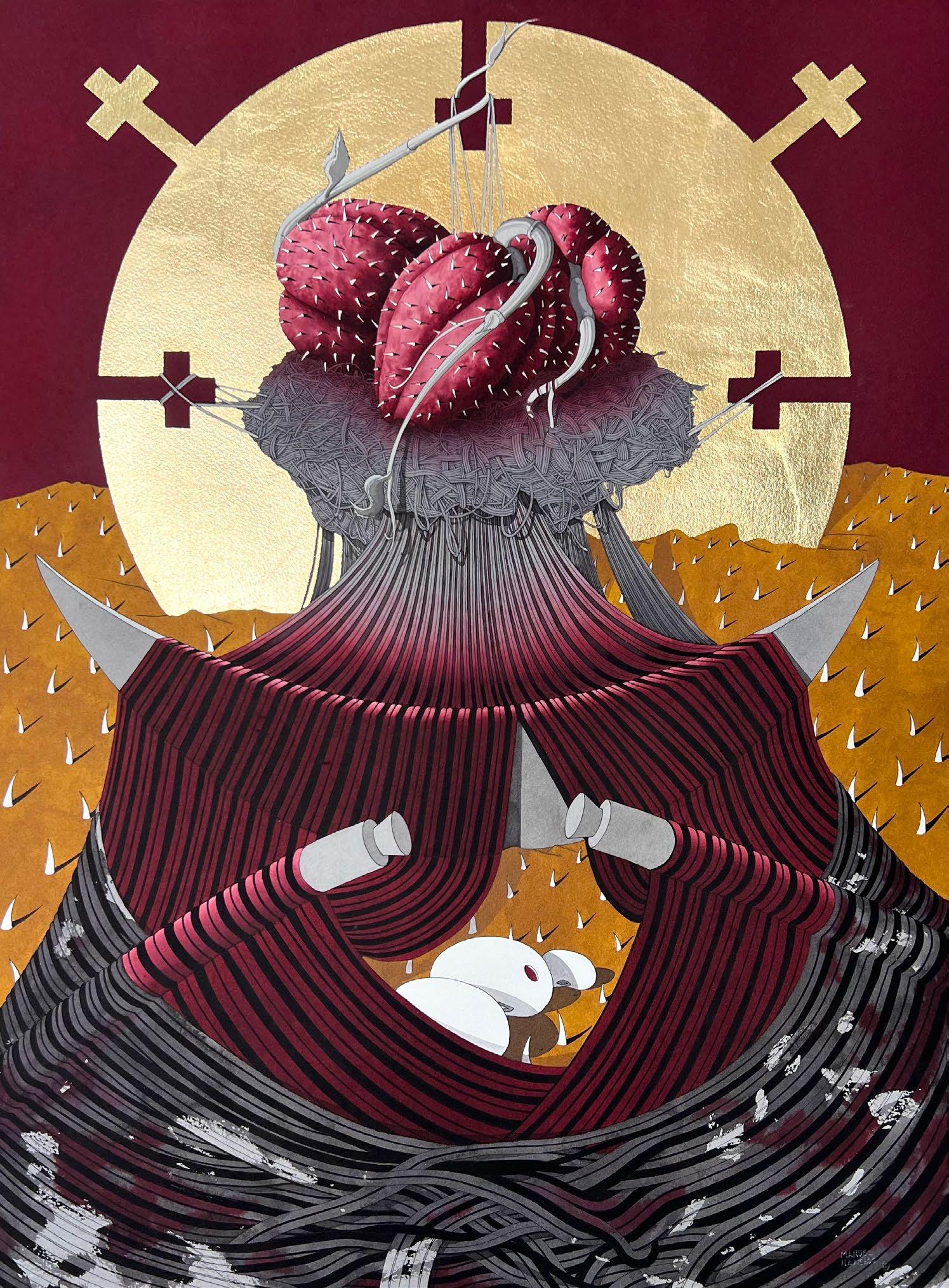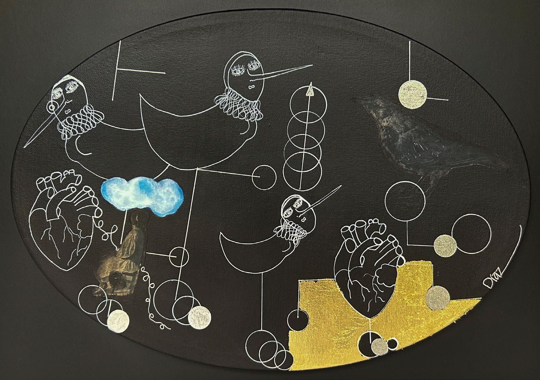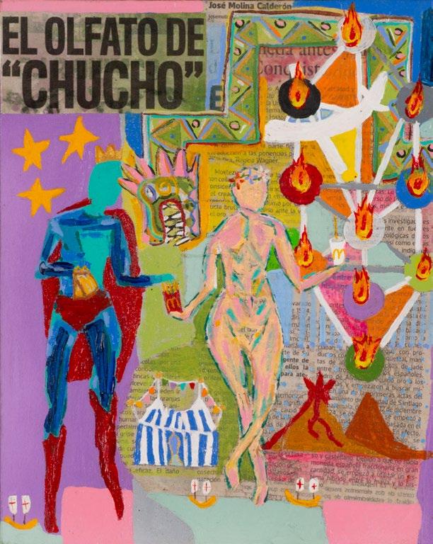 Pintura acrílica, collage digital a partir de dibujos a mano