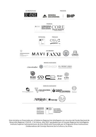 Esta iniciativa es financiada por el Gobierno Regional de Antofagasta con recursos del Fondo Nacional de Desarrollo Regional, F.N.D.R., 2 % Cultura, Año 2017 aprobados por el Consejo Regional de Antofagasta. Instituto Superior Latinoamericano de Arte (ISLA) está financiado por el Programa Otras Instituciones Colaboradoras del Consejo Nacional de la Cultura y las Artes.