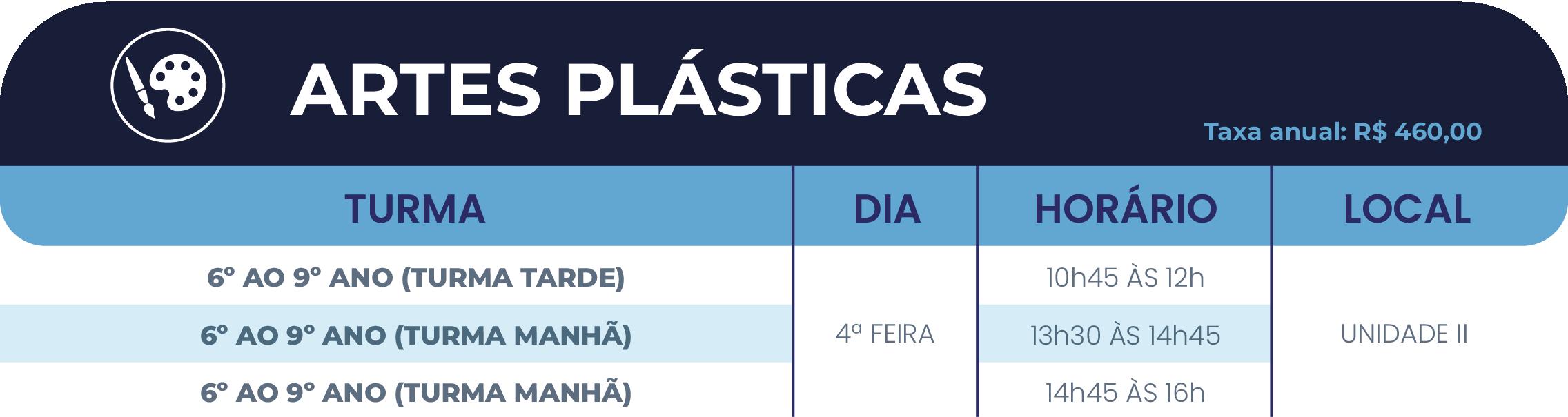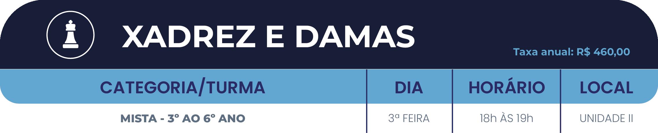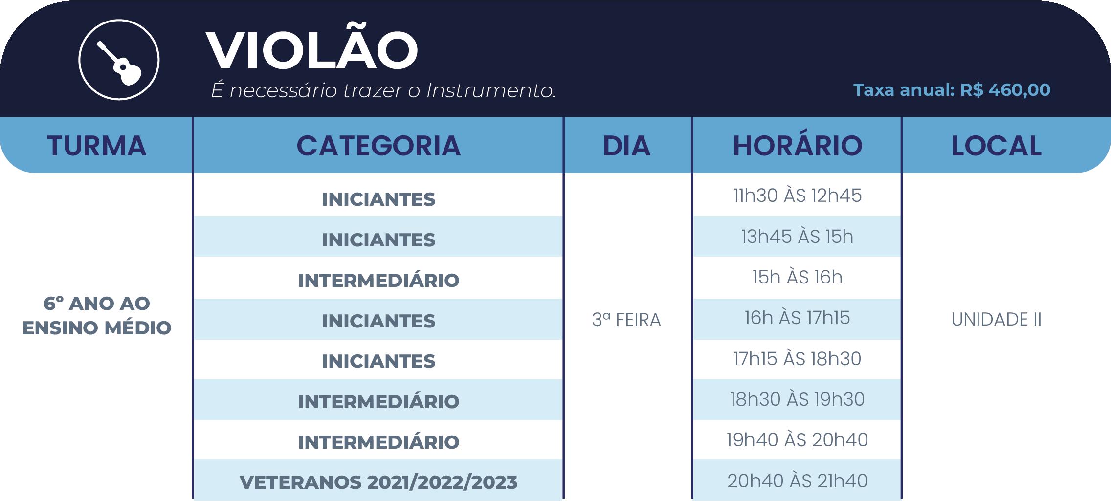 • 2º ano do Ensino Fundamental ao Ensino Médio: até 05(cinco) atividades, sendo, no máximo, 02(duas) esportivas (se uma delas for a natação) e 03(três) nas demais áreas de atuação (cultural e/ou inovação).