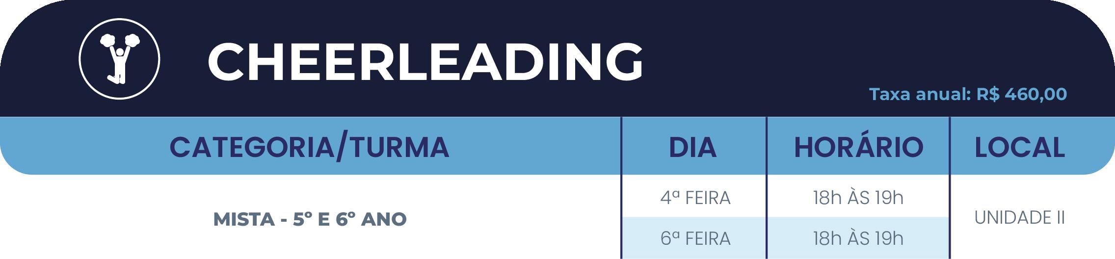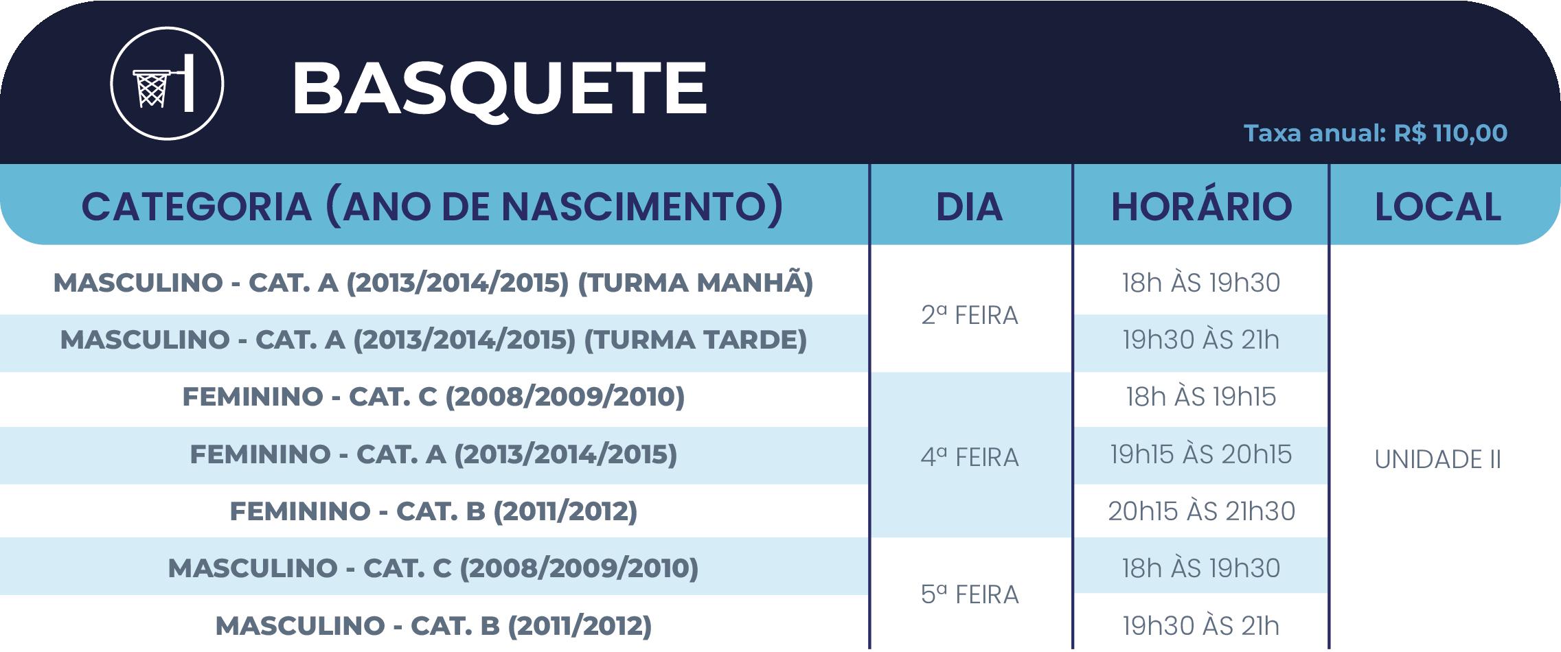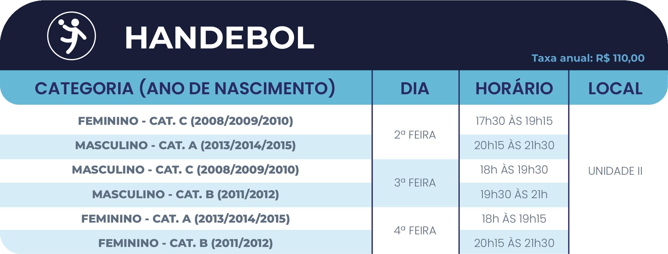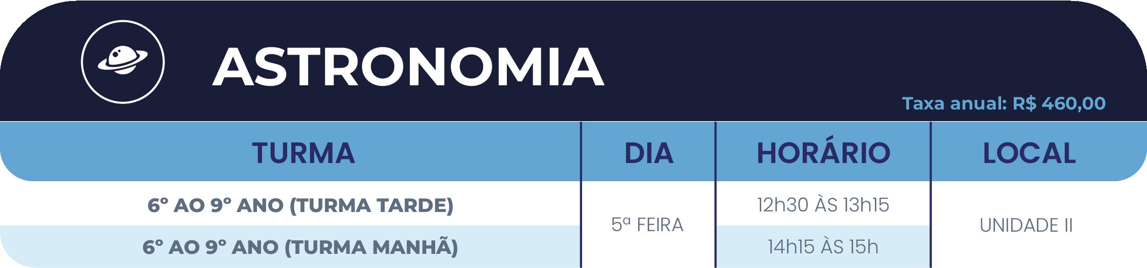 • 2º ano do Ensino Fundamental ao Ensino Médio: até 05(cinco) atividades, sendo, no máximo, 02(duas) esportivas (se uma delas for a natação) e 03(três) nas demais áreas de atuação (cultural e/ou inovação).