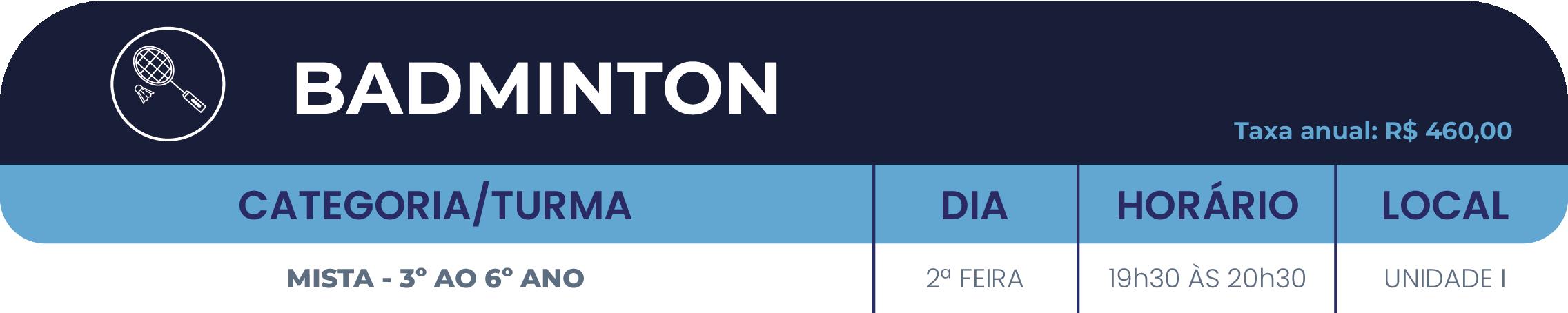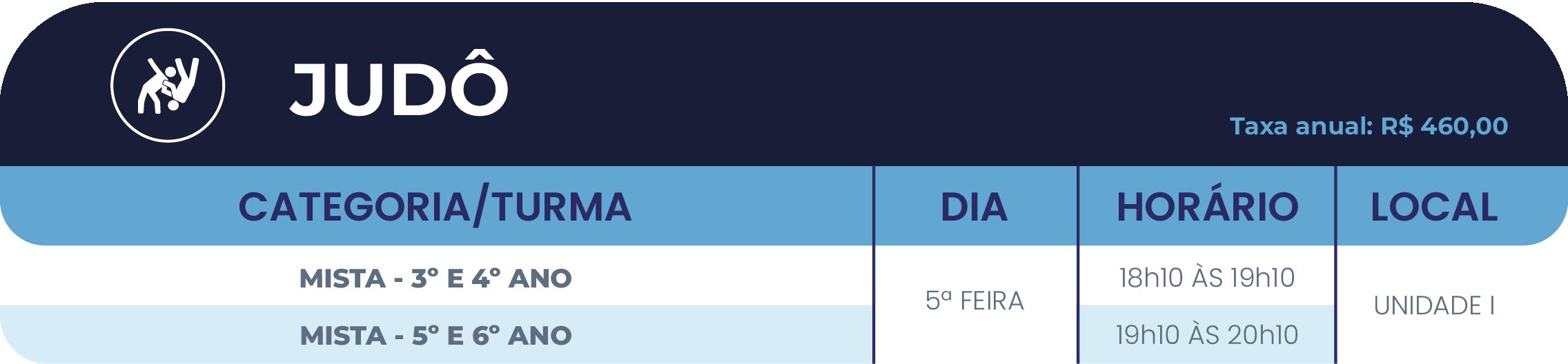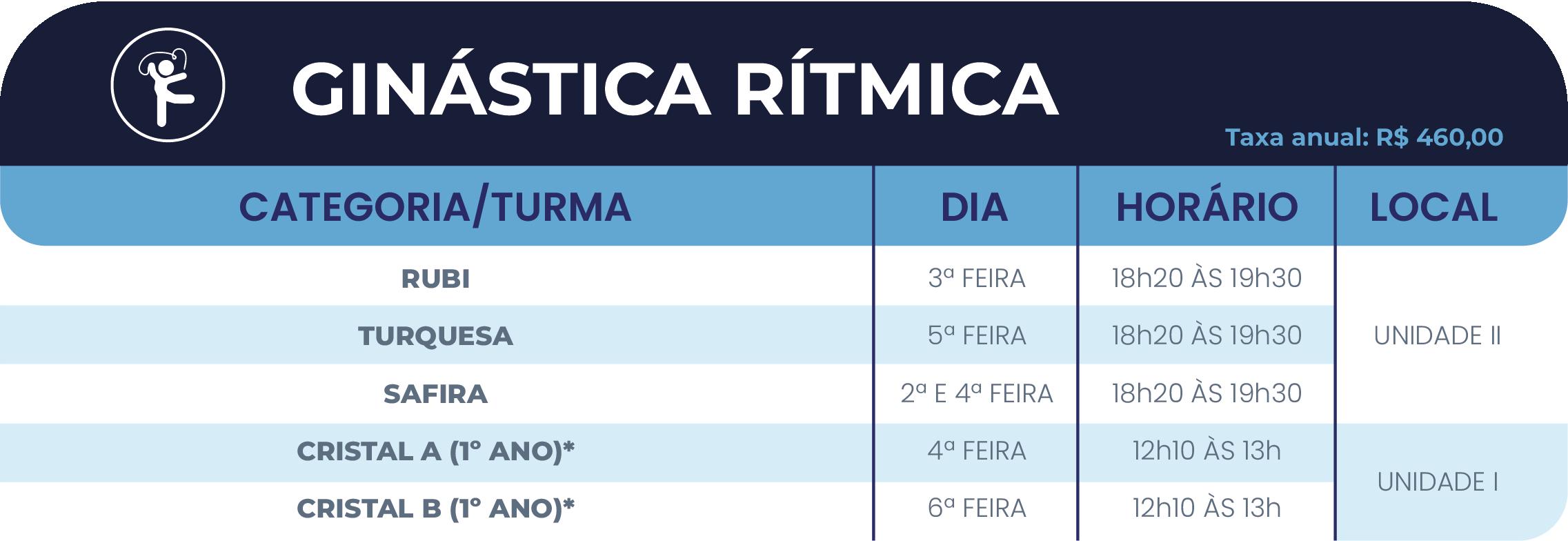 • 1º ano do Ensino Fundamental: até 01(uma) atividade esportiva.