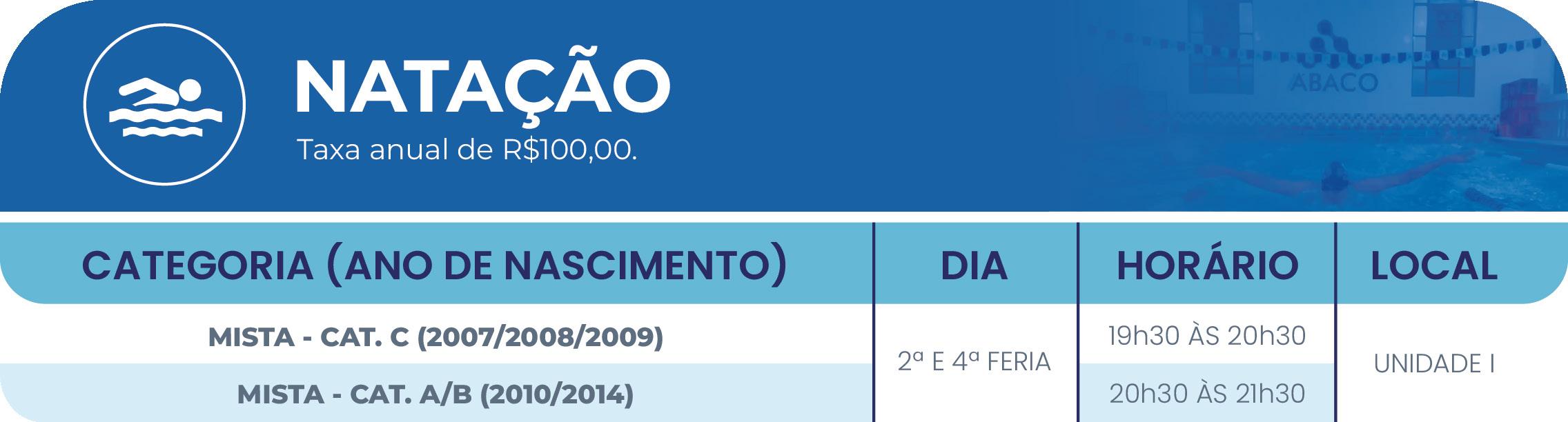 • Obs.: no caso da natação, o pagamento também será anual, podendo ser dividido em 08 parcelas.