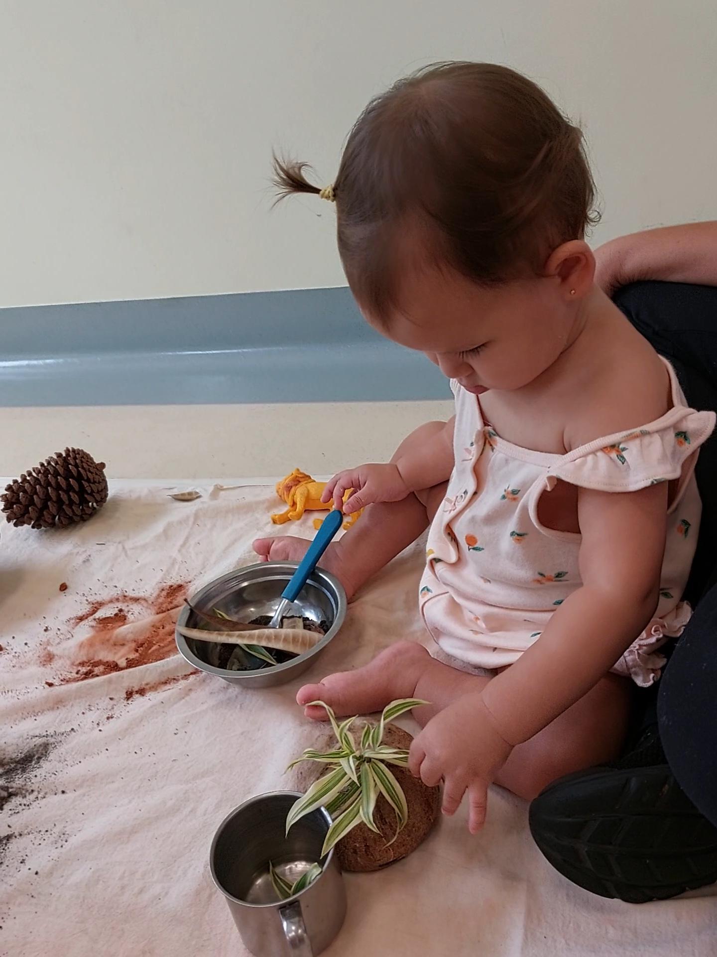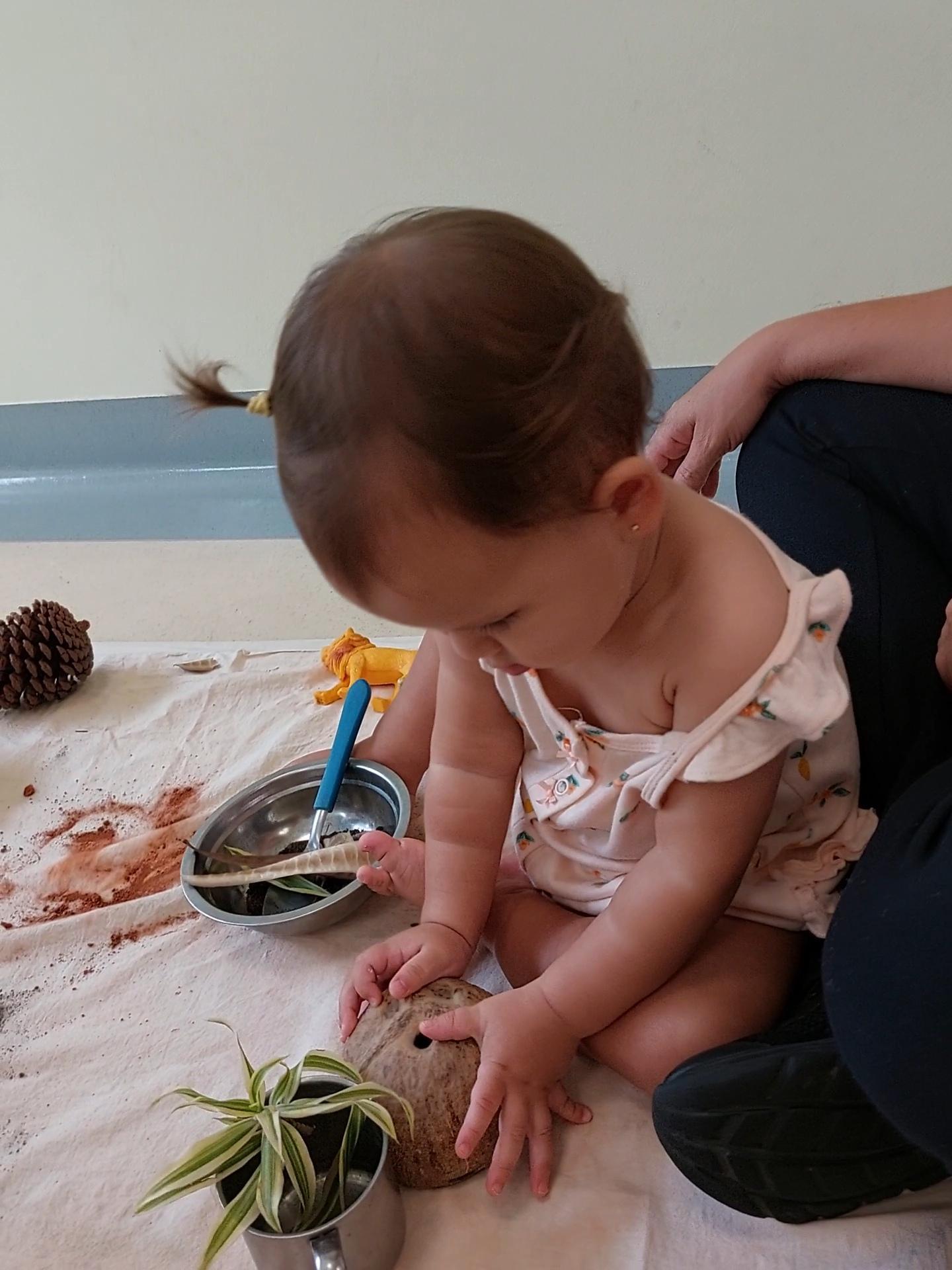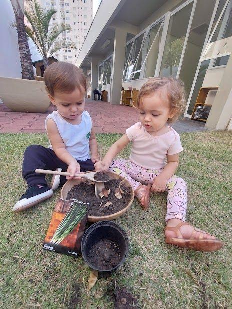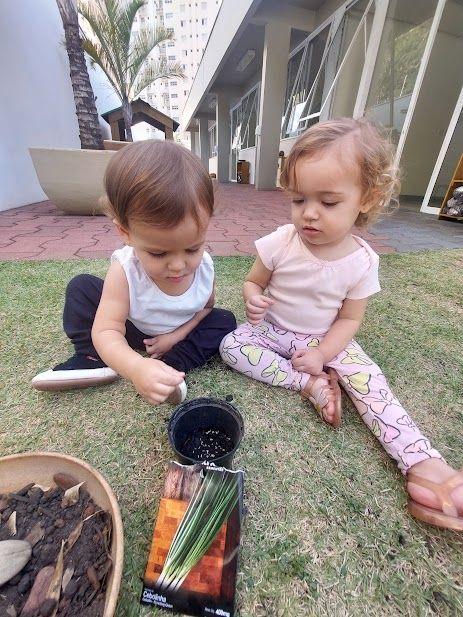 A educadora as apresentou e Ana, atenta, escolheu uma delas com cuidado, depositando-a no vasinho como quem guarda um segredo na terra.