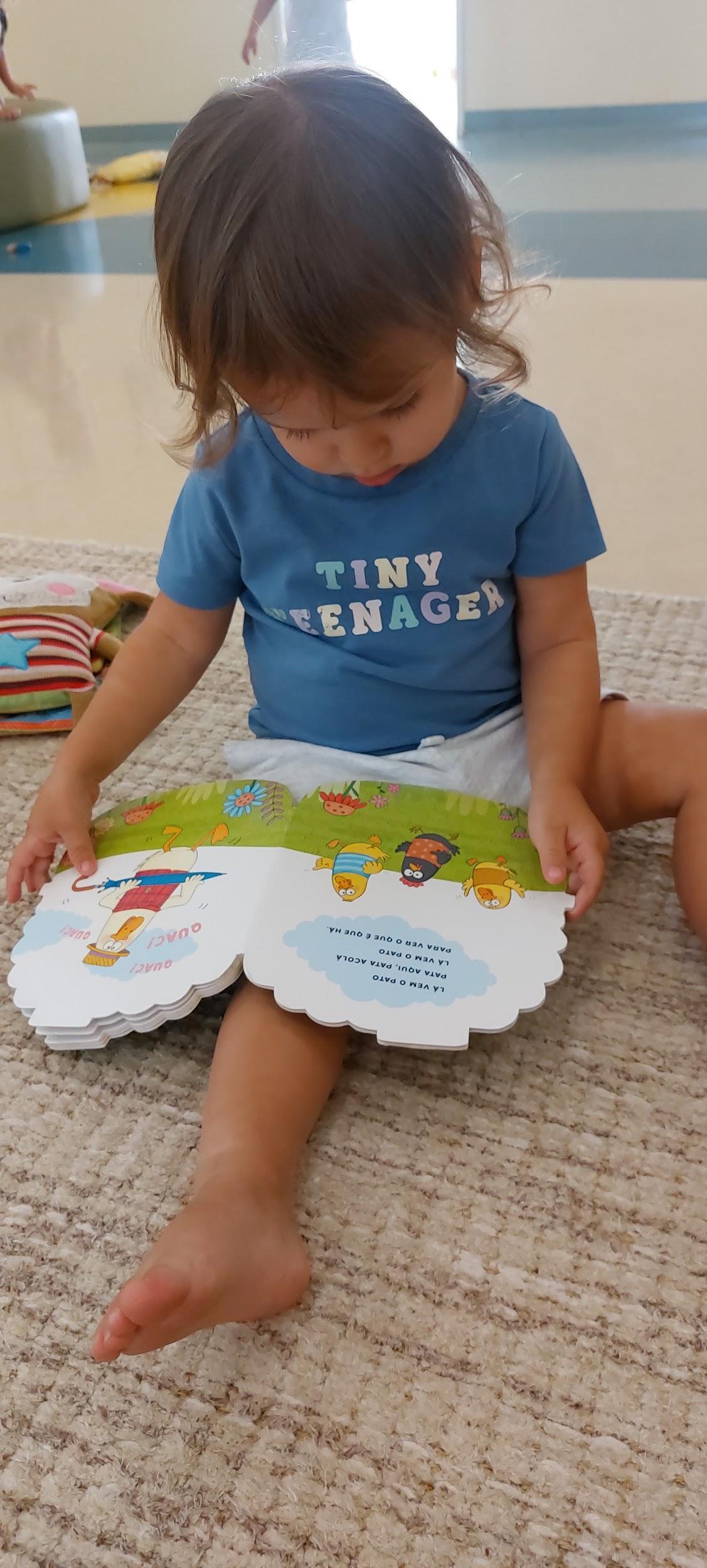 Na hora da história em roda, Ana encara cada página como um novo universo.