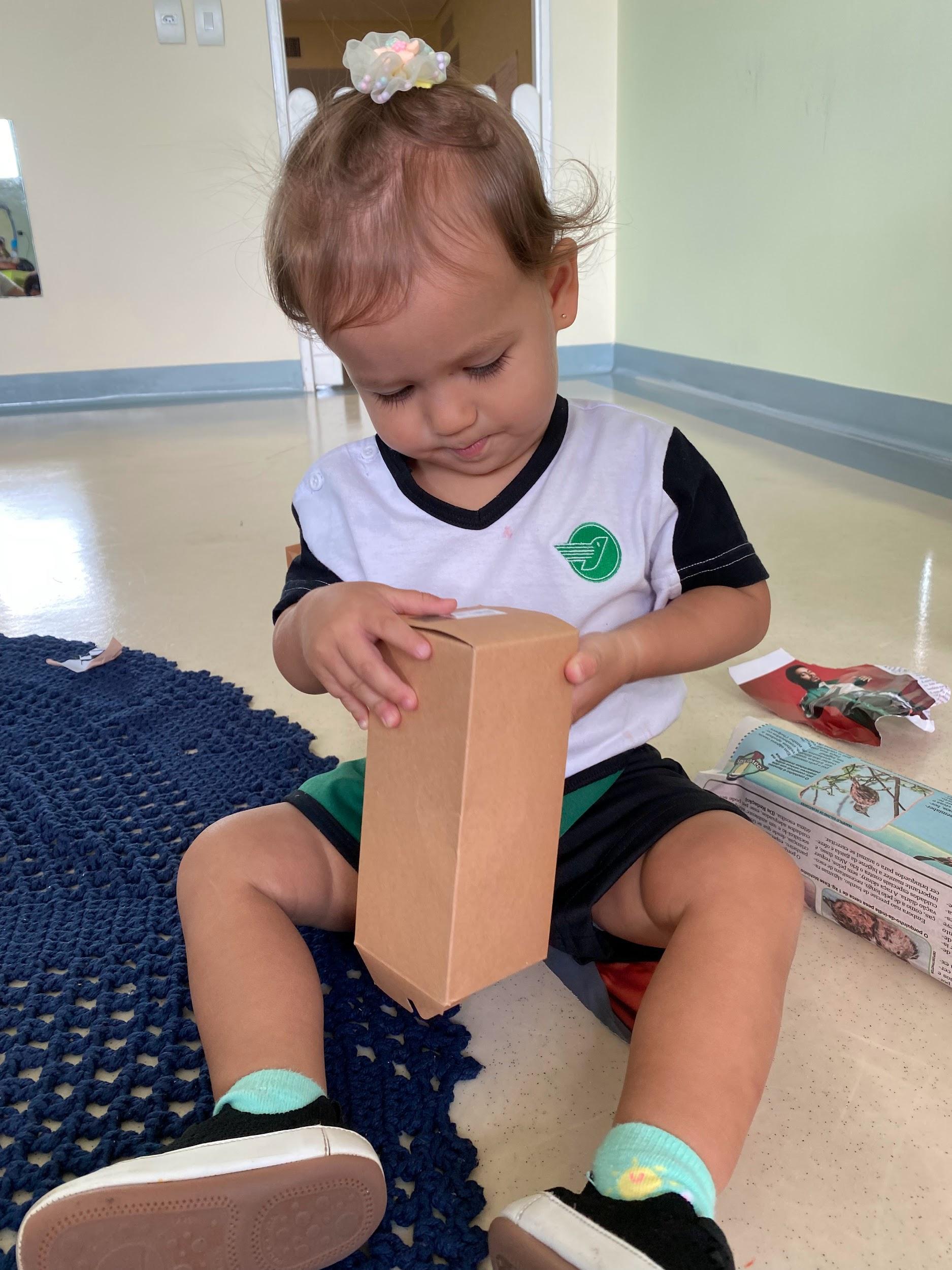 Sem soltar a caixa, avança até o final e retorna pelo mesmo caminho, experimentando cada movimento com atenção e criatividade. É uma experiência que revela sua coragem e entusiasmo, mostrando como Ana se encanta em superar desafios e explorar seus limites de maneira lúdica e envolvente.