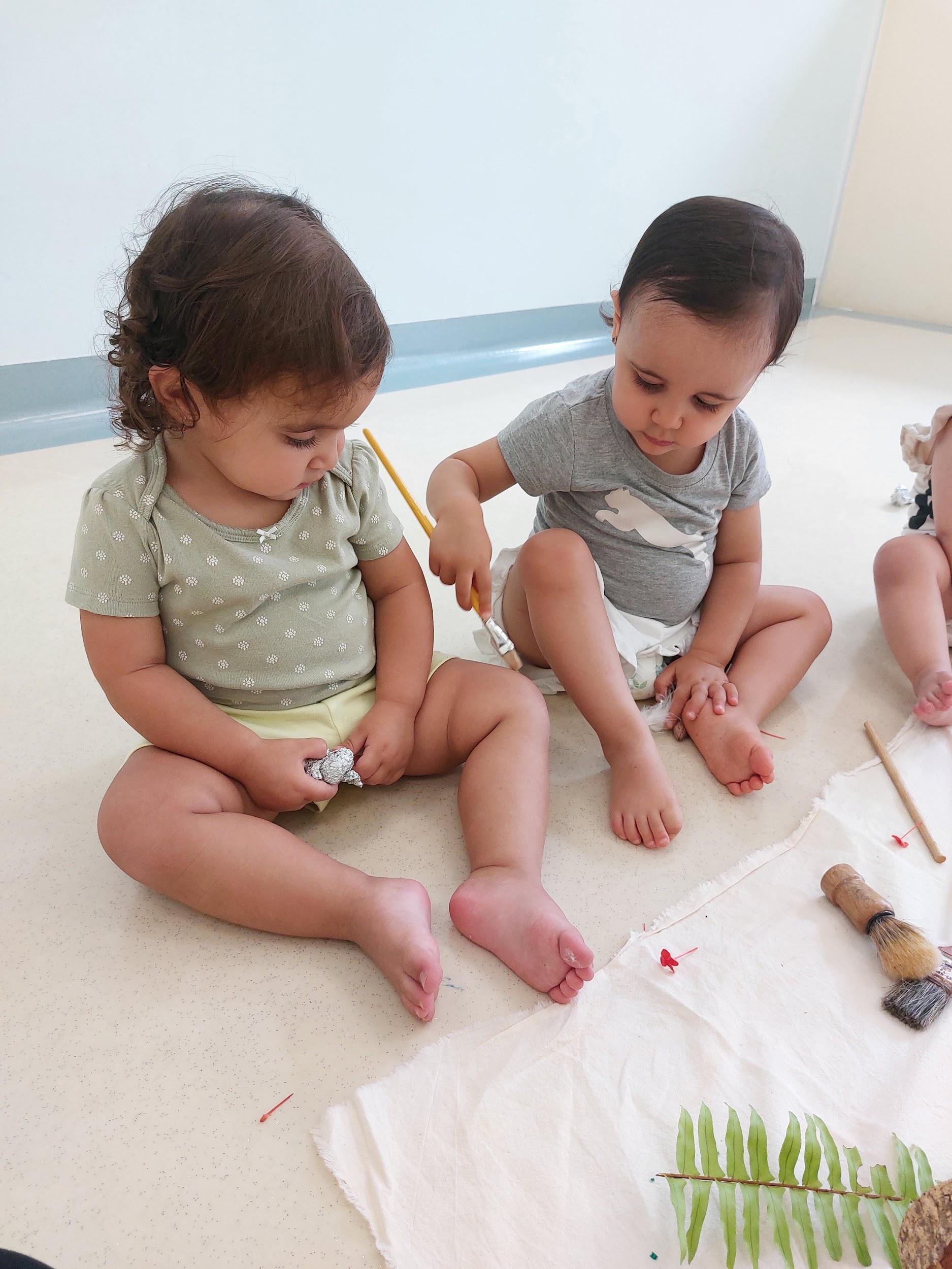 Bella e Helena mergulham juntas em pequenas descobertas, onde cada gesto se torna uma nova aventura. Helena encontra um pincel espanador e, com cuidado, desliza-o sobre o pezinho de Bella, que observa fascinada. Depois, com outro pincel, Bella estende a mão, curiosa para sentir o toque delicado da amiga. Um pincel mais comprido roça suavemente seu joelho, e Bella acompanha cada movimento com atenção. Entre risos e cuidado, nasce uma amizade que se fortalece na partilha, e cada toque, cada exploração, se transforma em aprendizado, os gestos simples revelam curiosidade, confiança e a alegria de descobrir o mundo juntas.