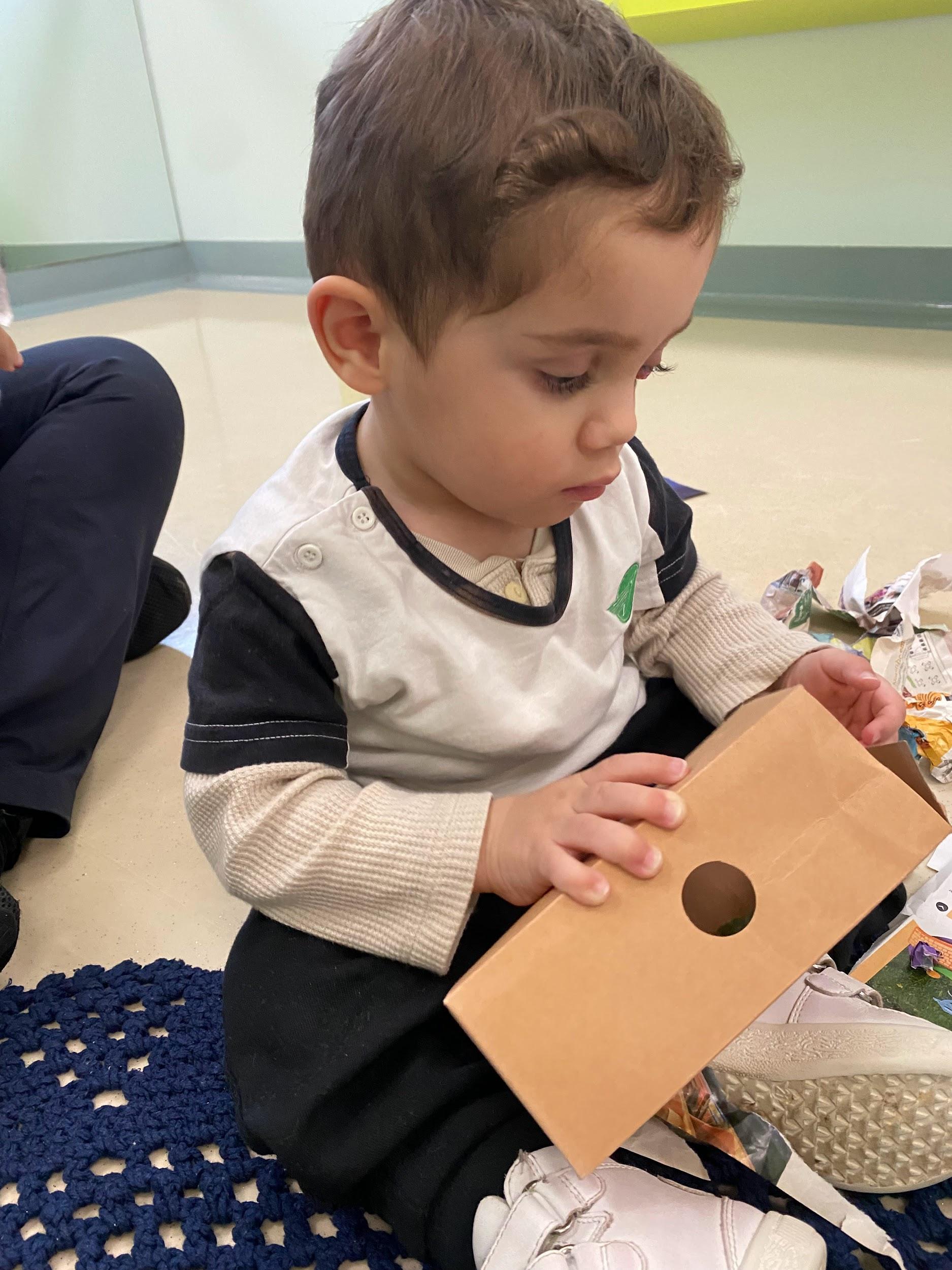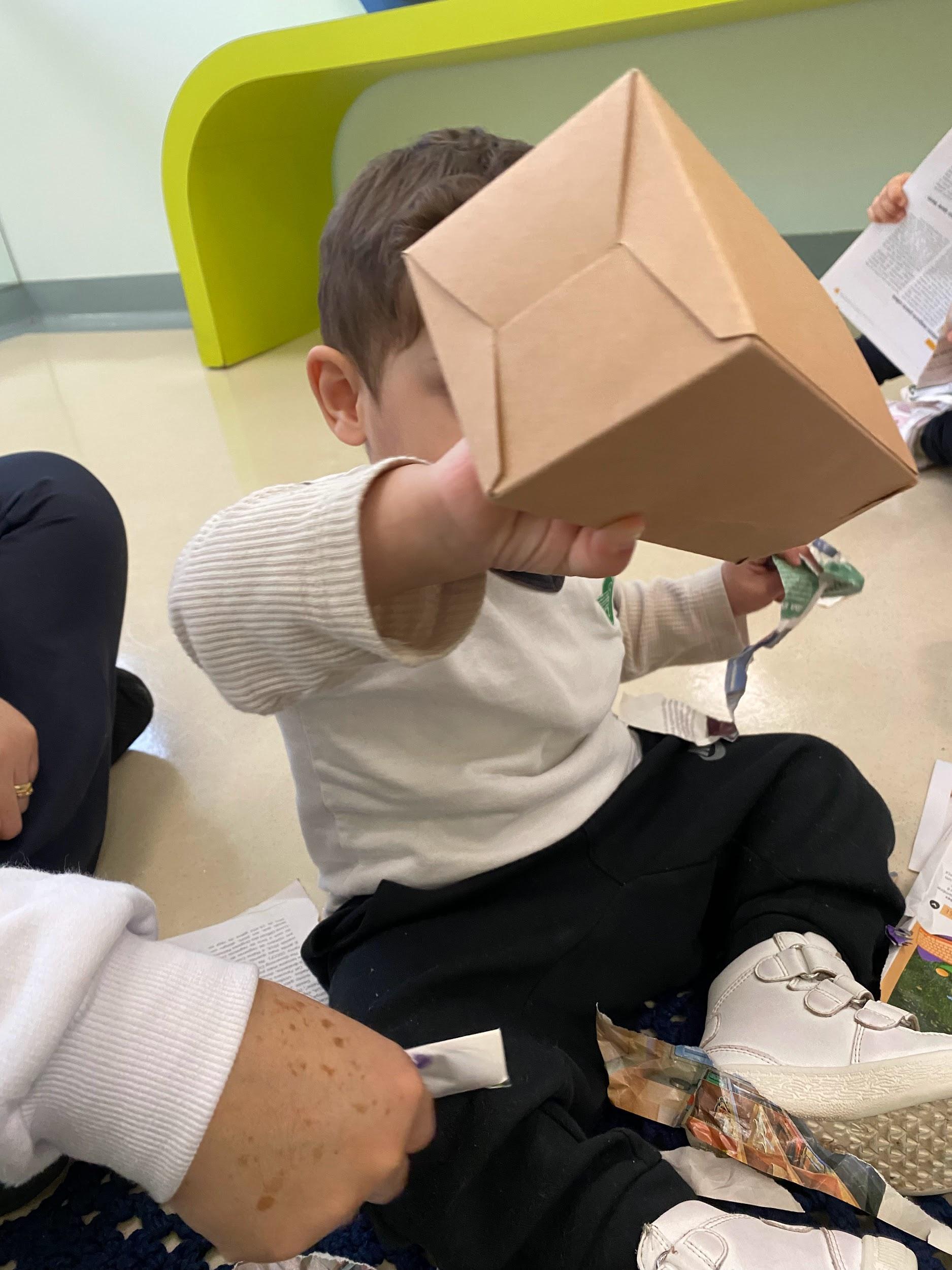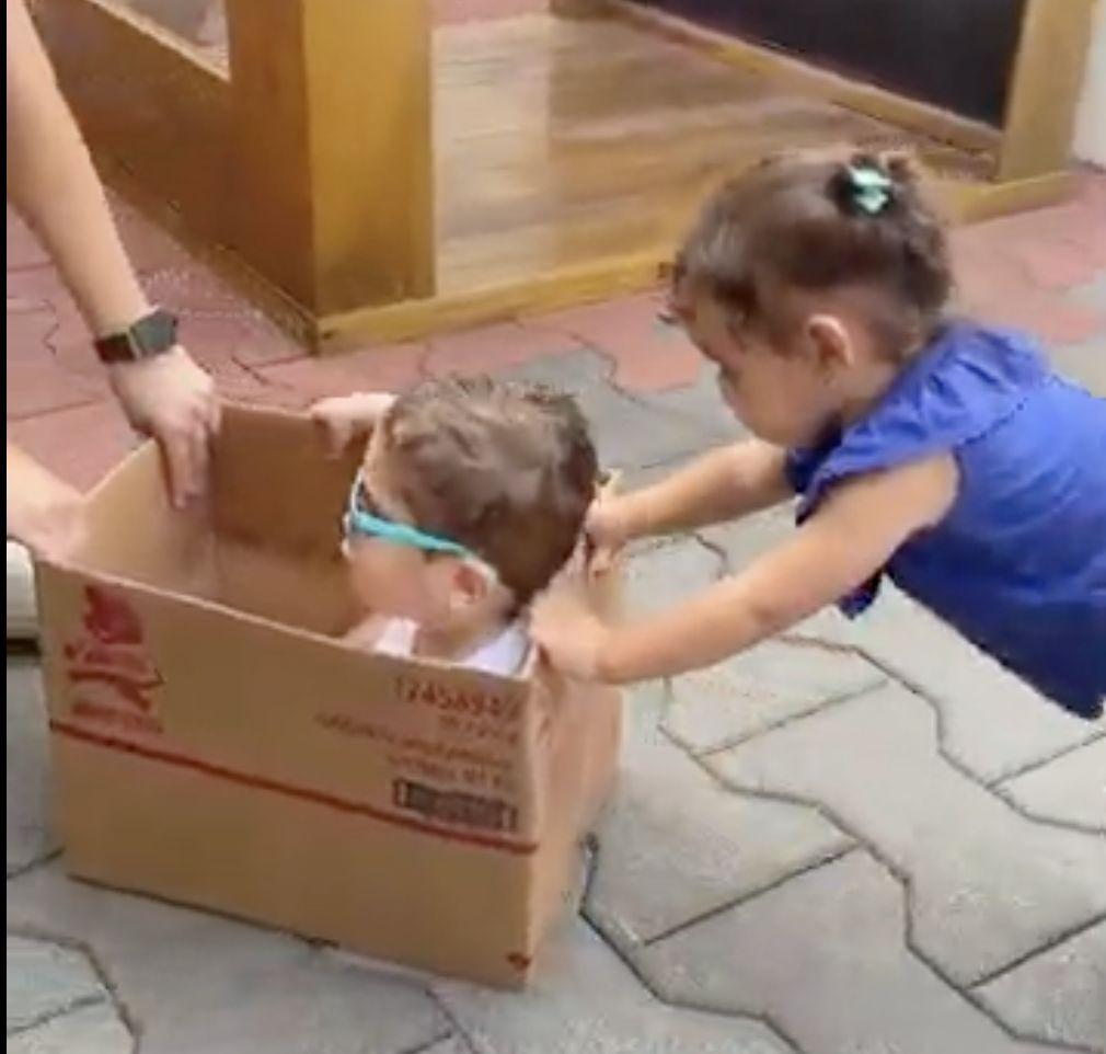 Assim, ele amplia sua experiência, explorando a caixa com curiosidade e transformando cada gesto em uma nova descoberta.