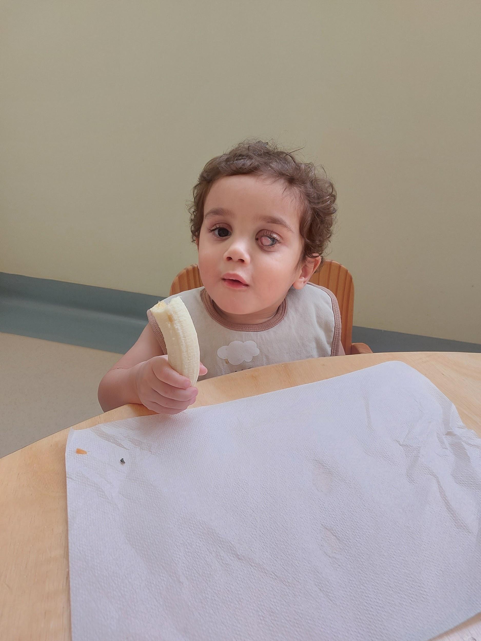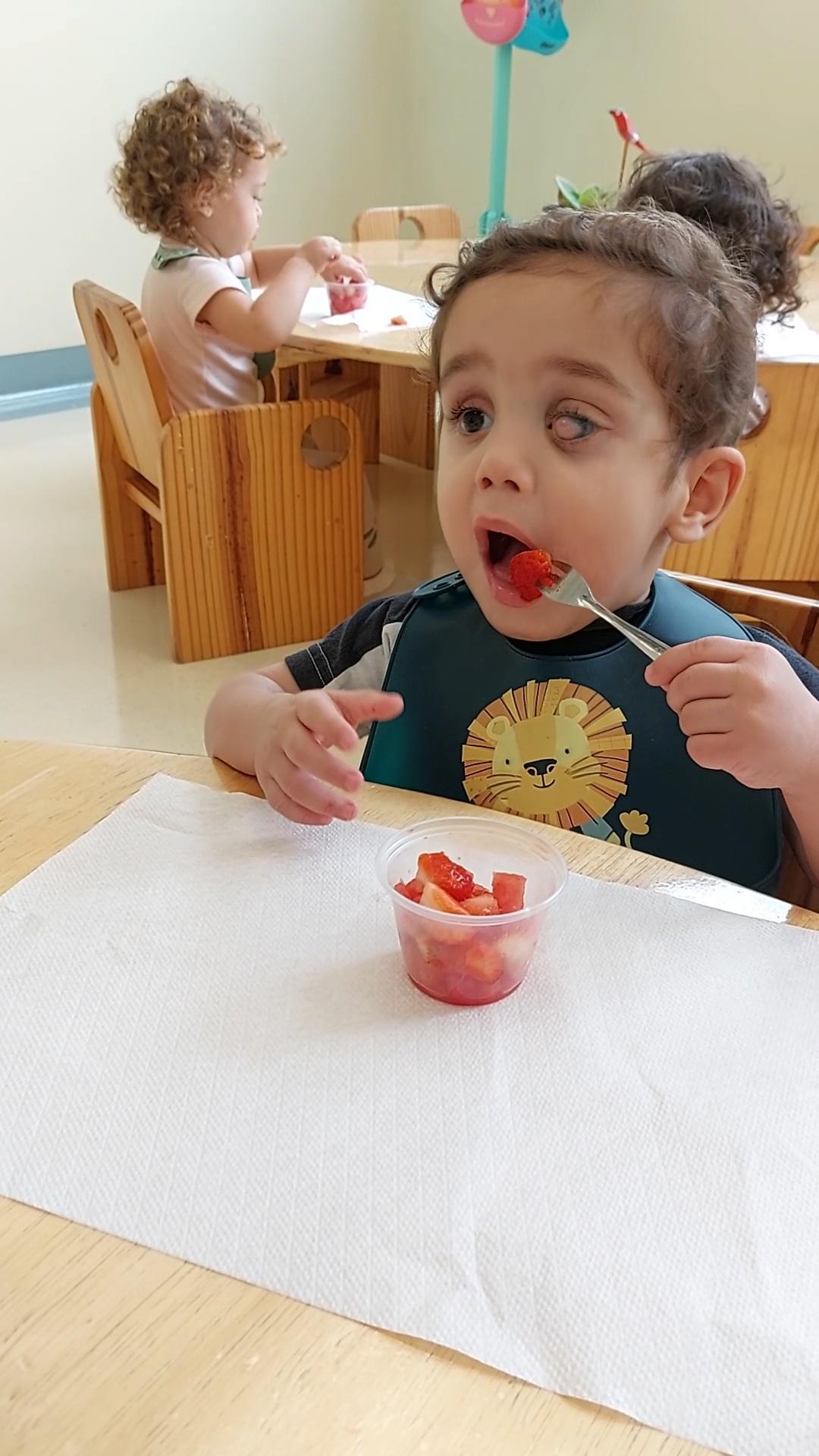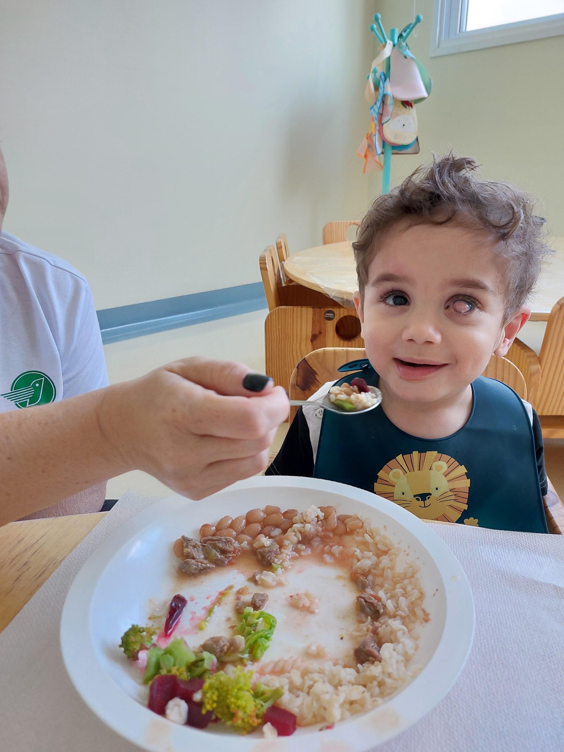 Ele adora se alimentar sozinho. Fica concentrado, seguro, sabendo exatamente o que quer e como fazer. Ao terminar, sempre demonstra um orgulho sincero, um gesto simples, mas que enche de alegria quem o acompanha.