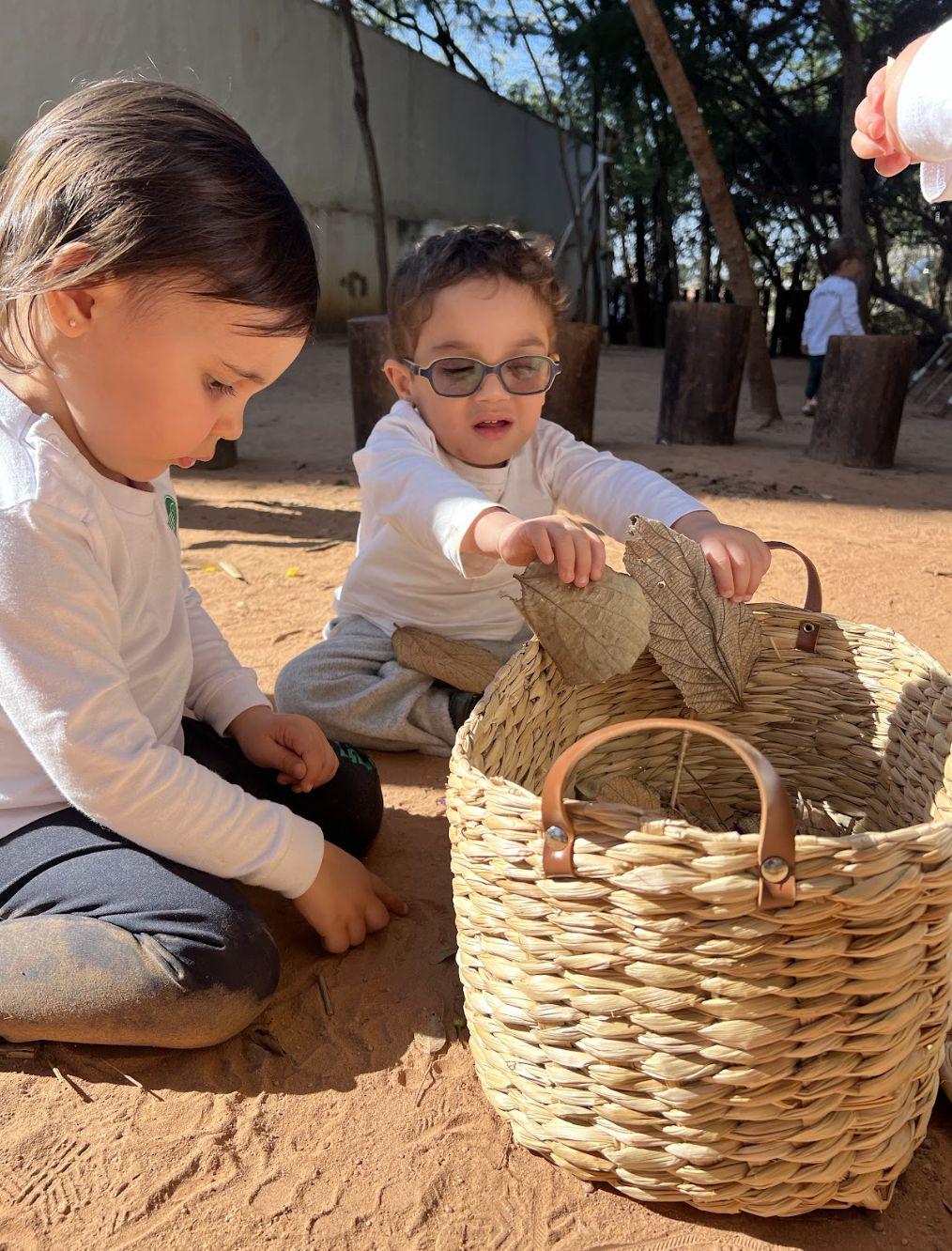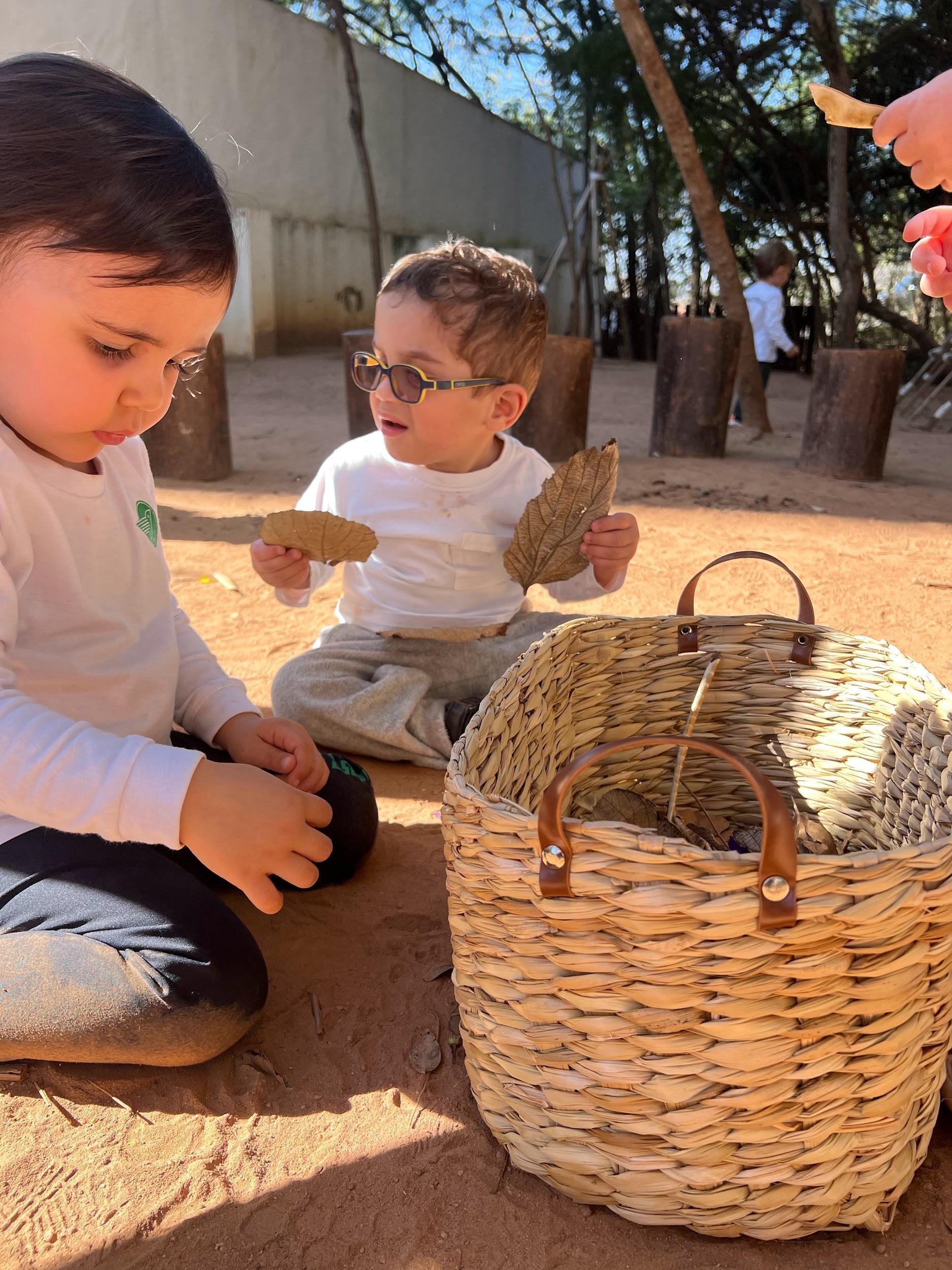 Em um dia bonito no Espaço Eco, Ethan estava cheio de animação. Com entusiasmo, recolheu folhas pelo caminho e as depositou no cesto, como quem reúne pequenos tesouros na natureza.